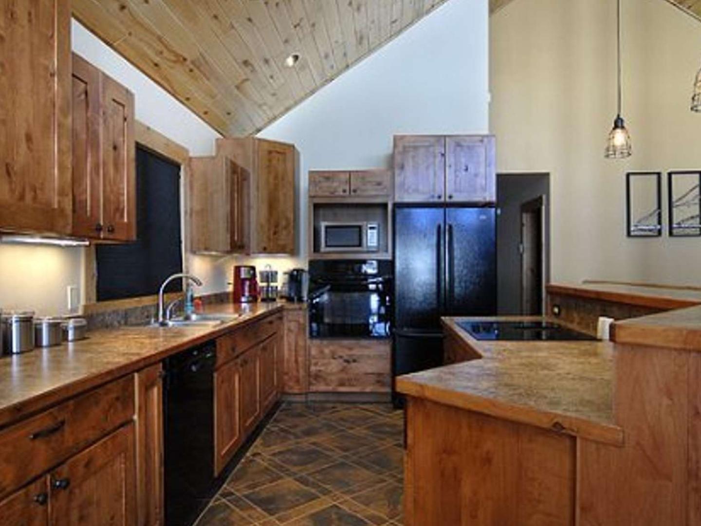 Seating for 8 guests is offered at the dining table which flows seamlessly from the cozy living area. Overlooking the living room and dining area, the fully equipped kitchen provides all of the essentials for preparing tasty meals throughout your vacation and includes breakfast bar seating for 3 guests. Access to the back deck, where amazing views can be enjoyed, is off of the main living area.