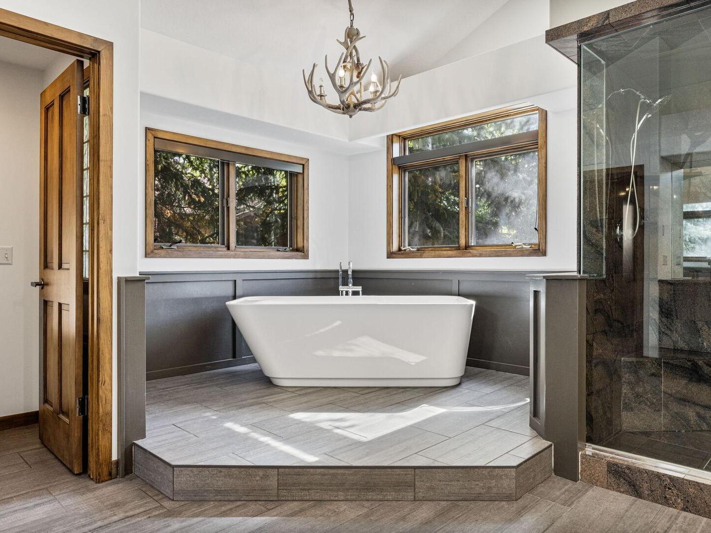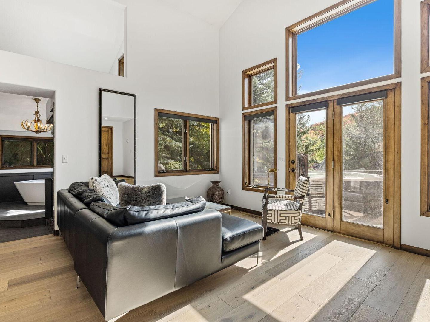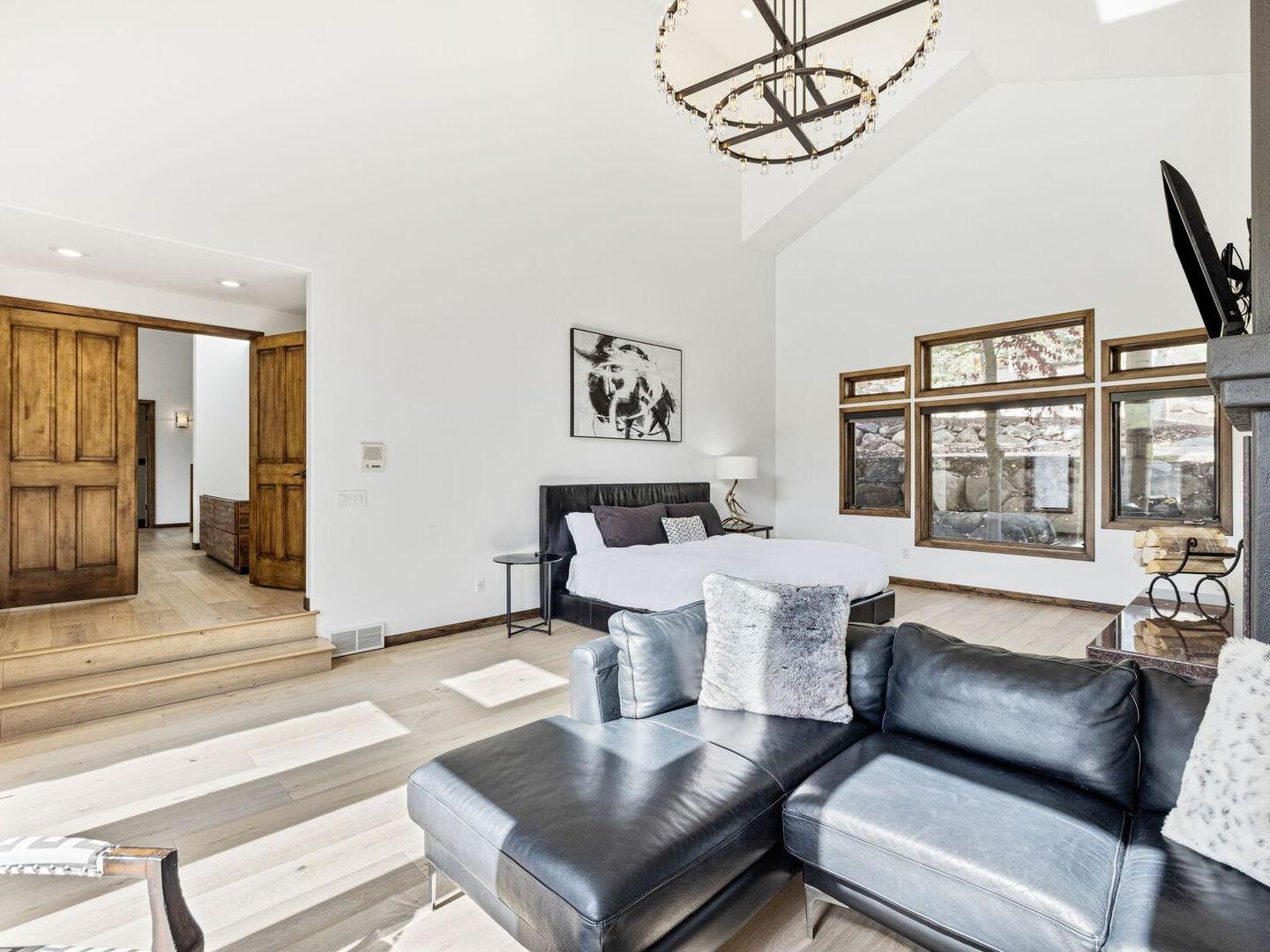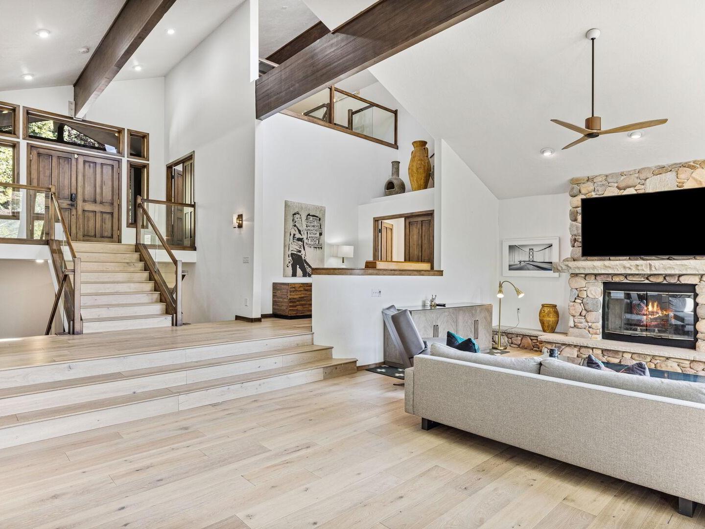 A large master suite with a King bed set in front of a gas fireplace and including a beautiful private bathroom with steam shower and jetted tub occupies the upper level of 3165 Thistle. There are two additional rooms with King beds, one also features a stone framed fireplace. Queen beds are offered in two of the guest bedrooms and the sixth bedroom is a Bunk room with a Twin over Full bunk bed plus a Twin bed.