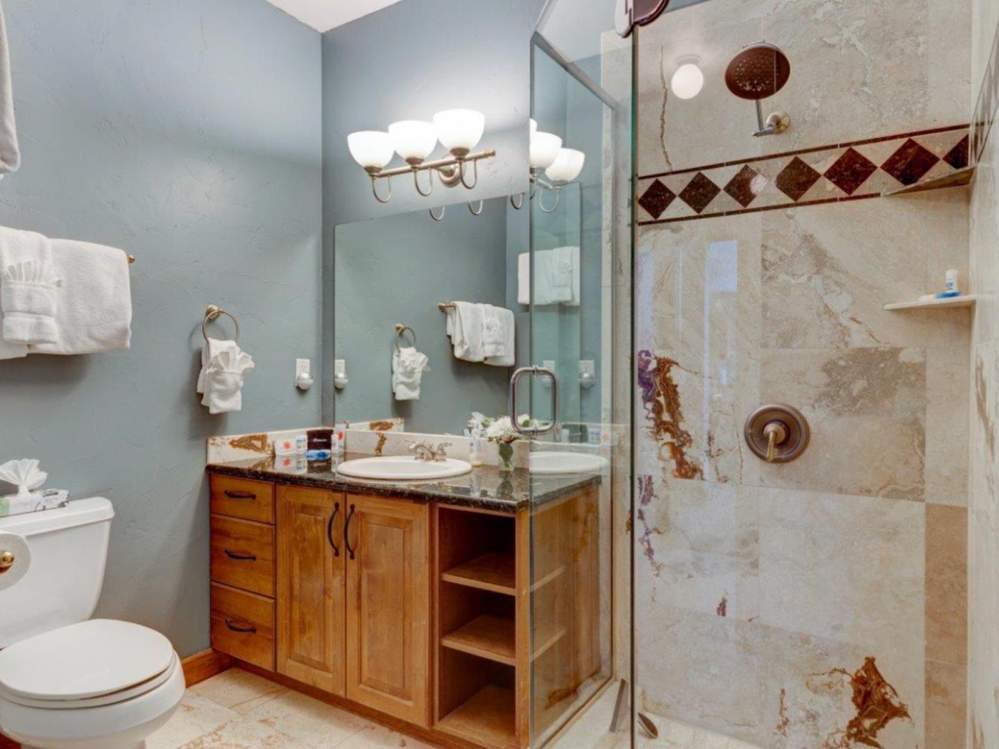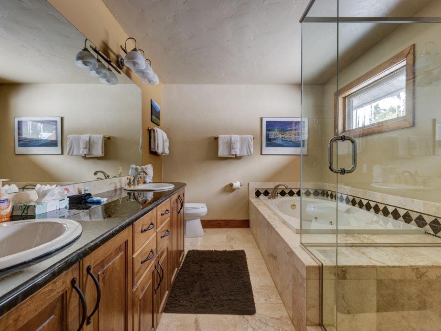 400 Whispering Pines Drive offers five beautifully furnished bedrooms, providing comfortable bedding, with elegant and stylish decor. Perched on the upper level, the master bedroom boasts a plush bed, a walk-in closet and a private luxurious bathroom with a large jetted tub. Bedroom two is also located upstairs and features a charming, private bathroom. On the main level, the third and fourth guest rooms feature bright and cheery furnishings with a shared full bathroom. Guest room five sits on the lower level, and is considered an additional master with a full, indulgent bathroom. For extra lodging, there is a sleeper sofa in the family room to accommodate two additional guests.