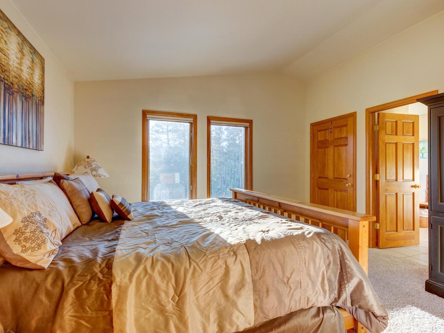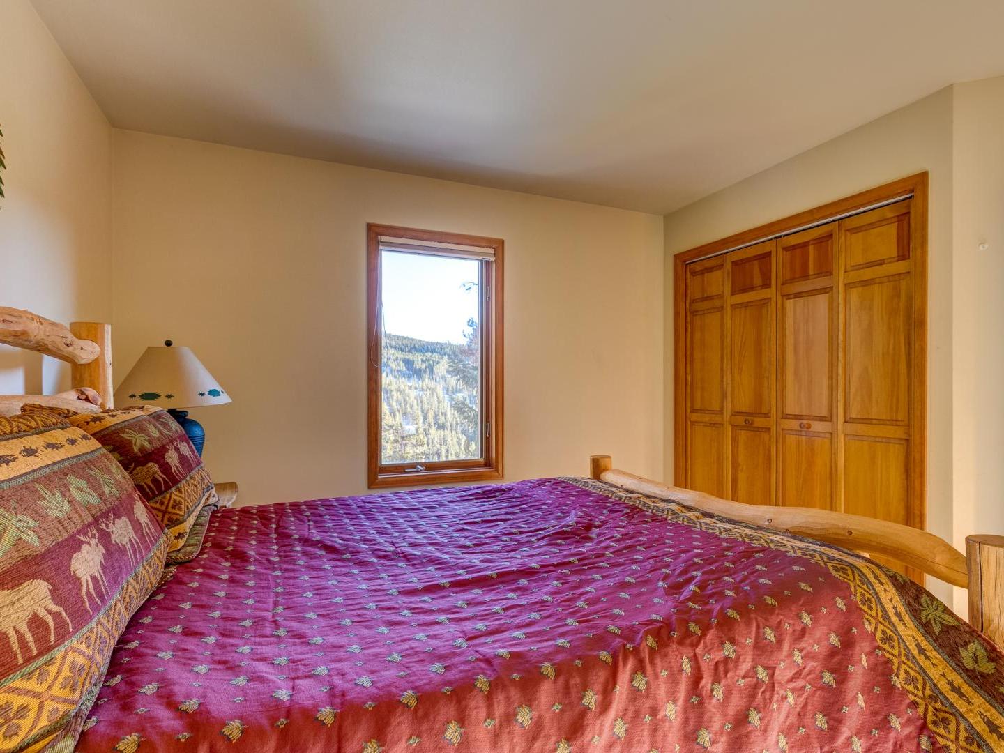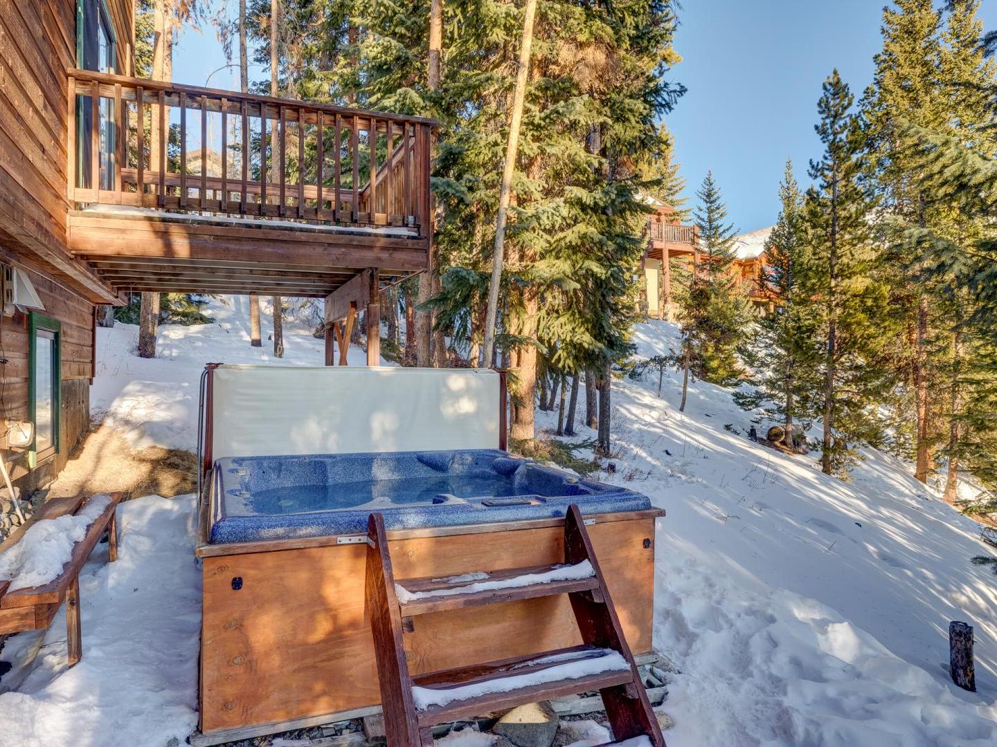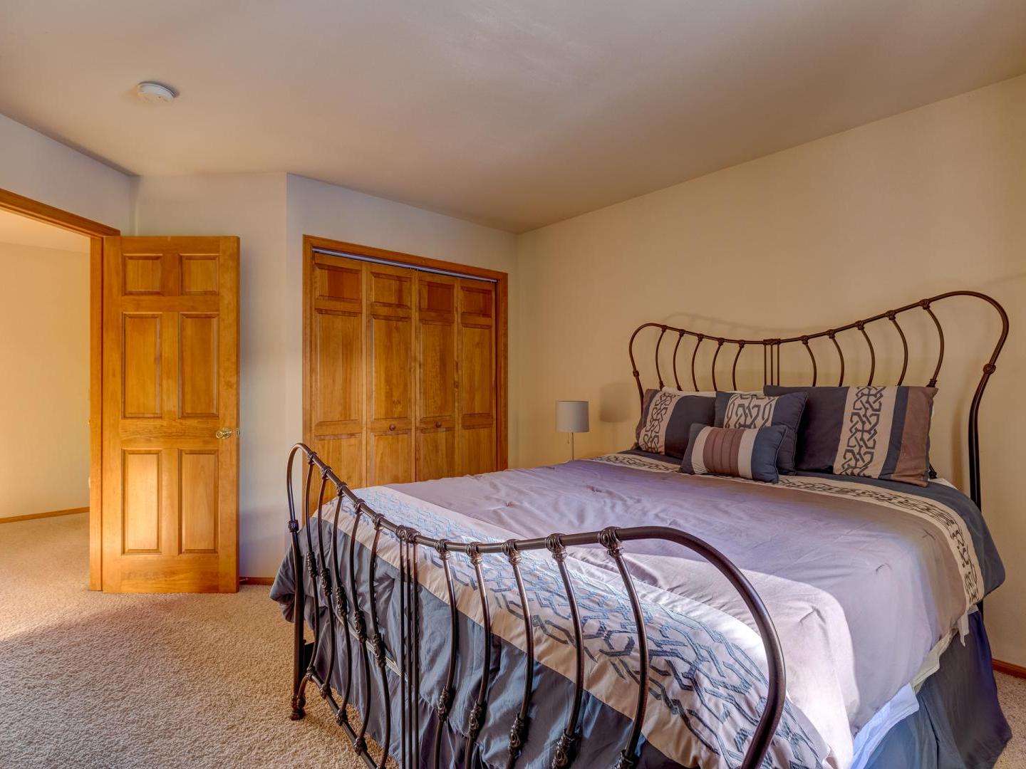 Three bedrooms plus a den offer a good night’s rest for up to nine vacationers. Perched on the top level, the master boasts a comfortable bed, ample closet space and a private luxurious bathroom featuring a jetted tub with an alpine view. Bedroom two offers a sunny view of Baldy Mountain and shares a hallway bathroom with the third guest room. For added lodging, a lower level den boasts multiple bedding options for any extra guests.