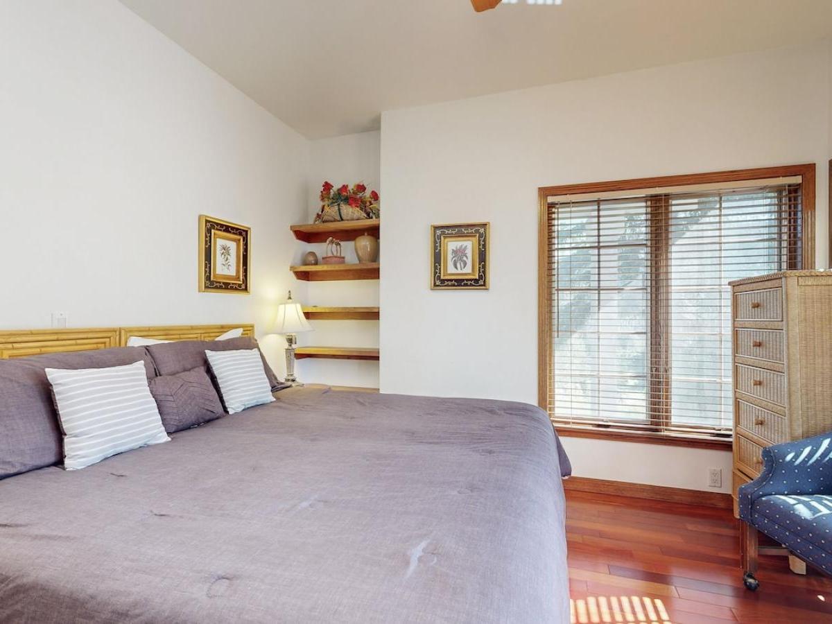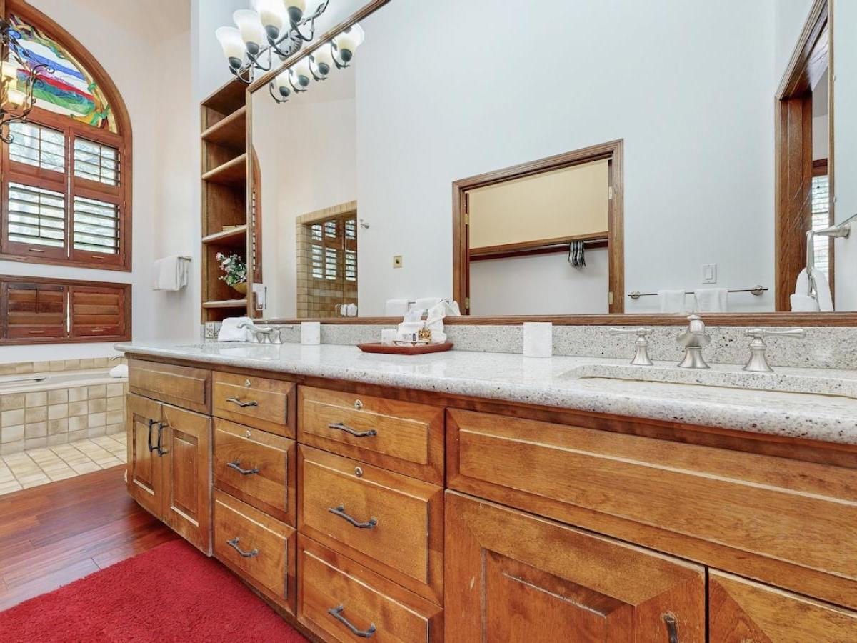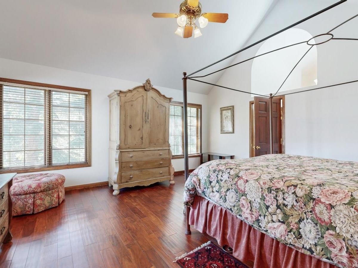 Each of the mountain home’s guest rooms boasts a private bathroom. Vaulted ceilings are present in the master suite along with a private bathroom featuring a separate jetted tub and steam shower. The remaining guest rooms are comfortably decorated and each offers a lovely scenic view. Two bedrooms offer King beds, one is furnished with a Queen bed, and the fourth bedroom is outfitted with two Twin beds.
