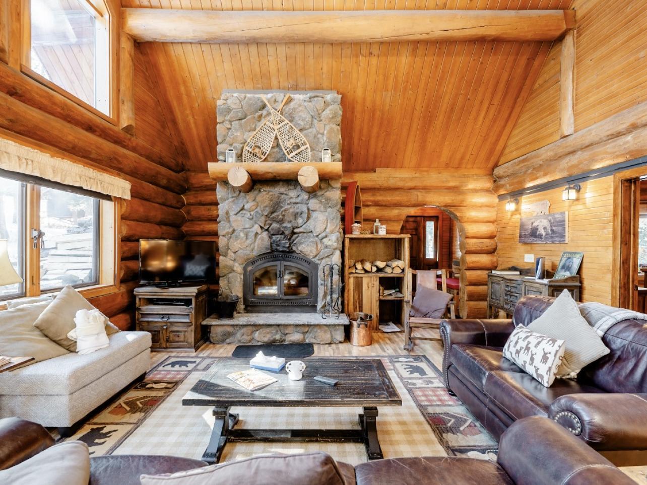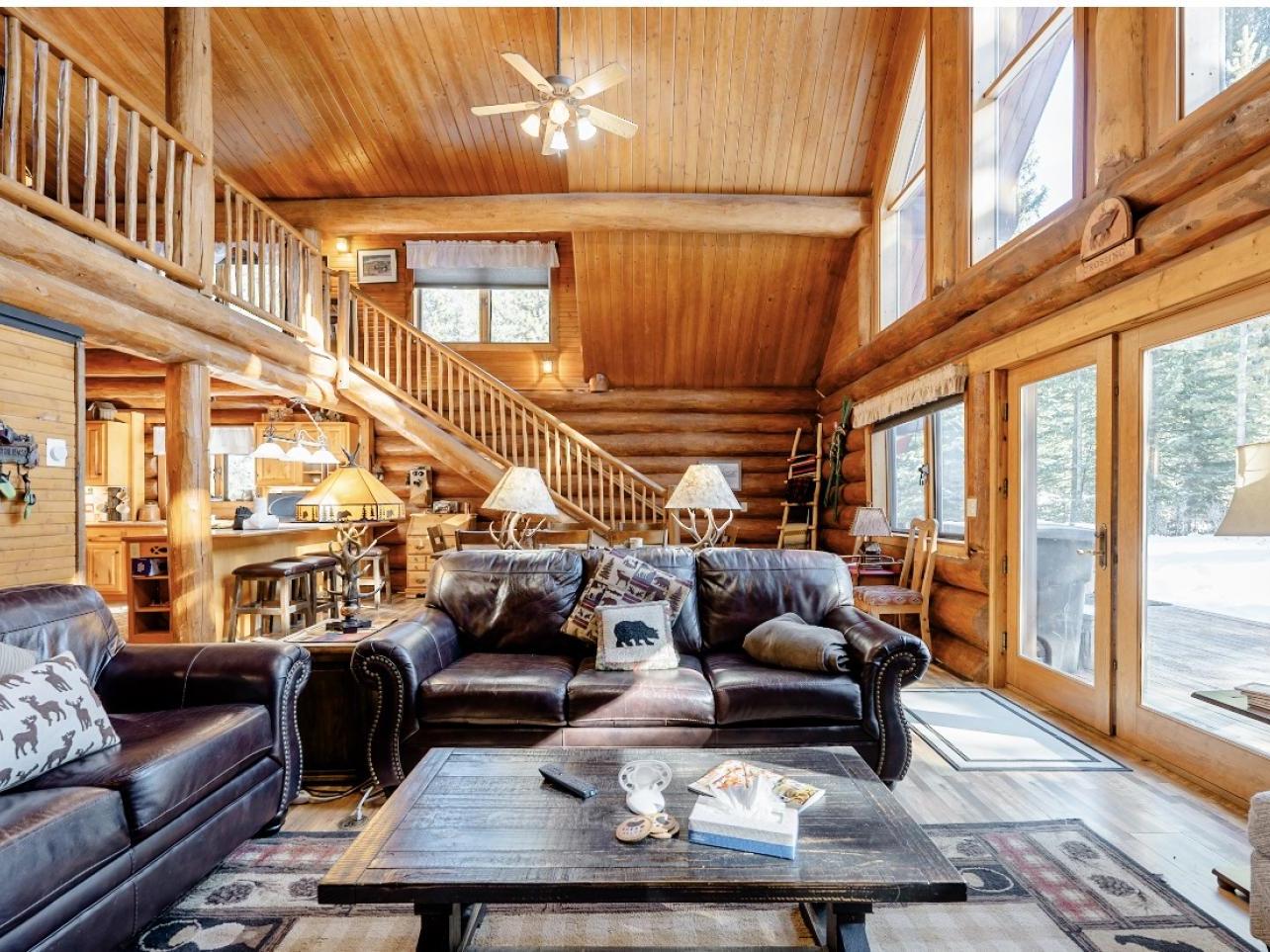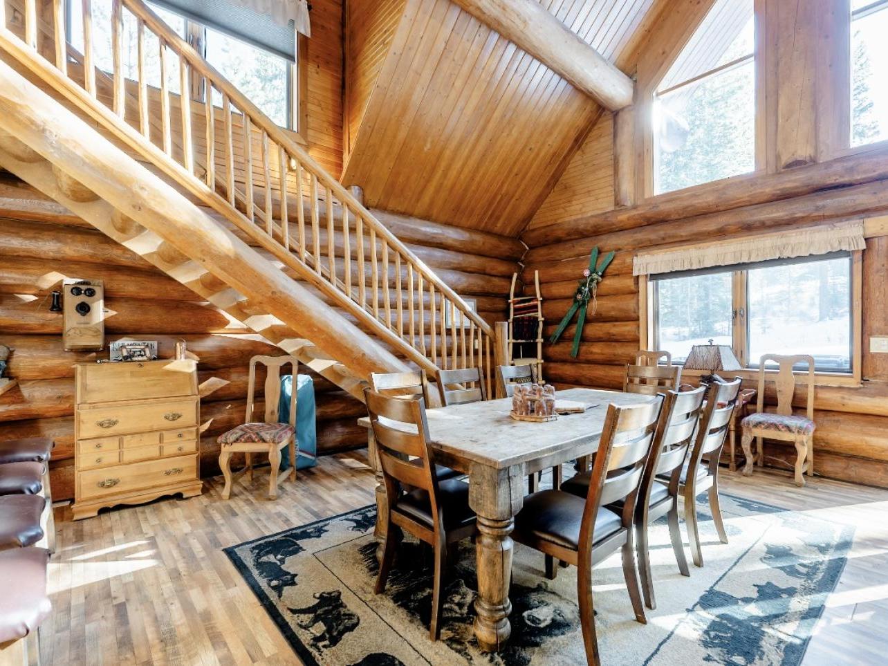 The ideal vacation home for any season with its serene location and rustic elegance, this quality Colorado log cabin offers an abundance of space for a group of up to eight guests. A vaulted living room is comfortably furnished and features a two story rock fireplace that opens to the large loft. The adjacent fully equipped kitchen has a breakfast bar next to a dining area where the entire family can enjoy entertaining after a day of fun in Breckenridge.
