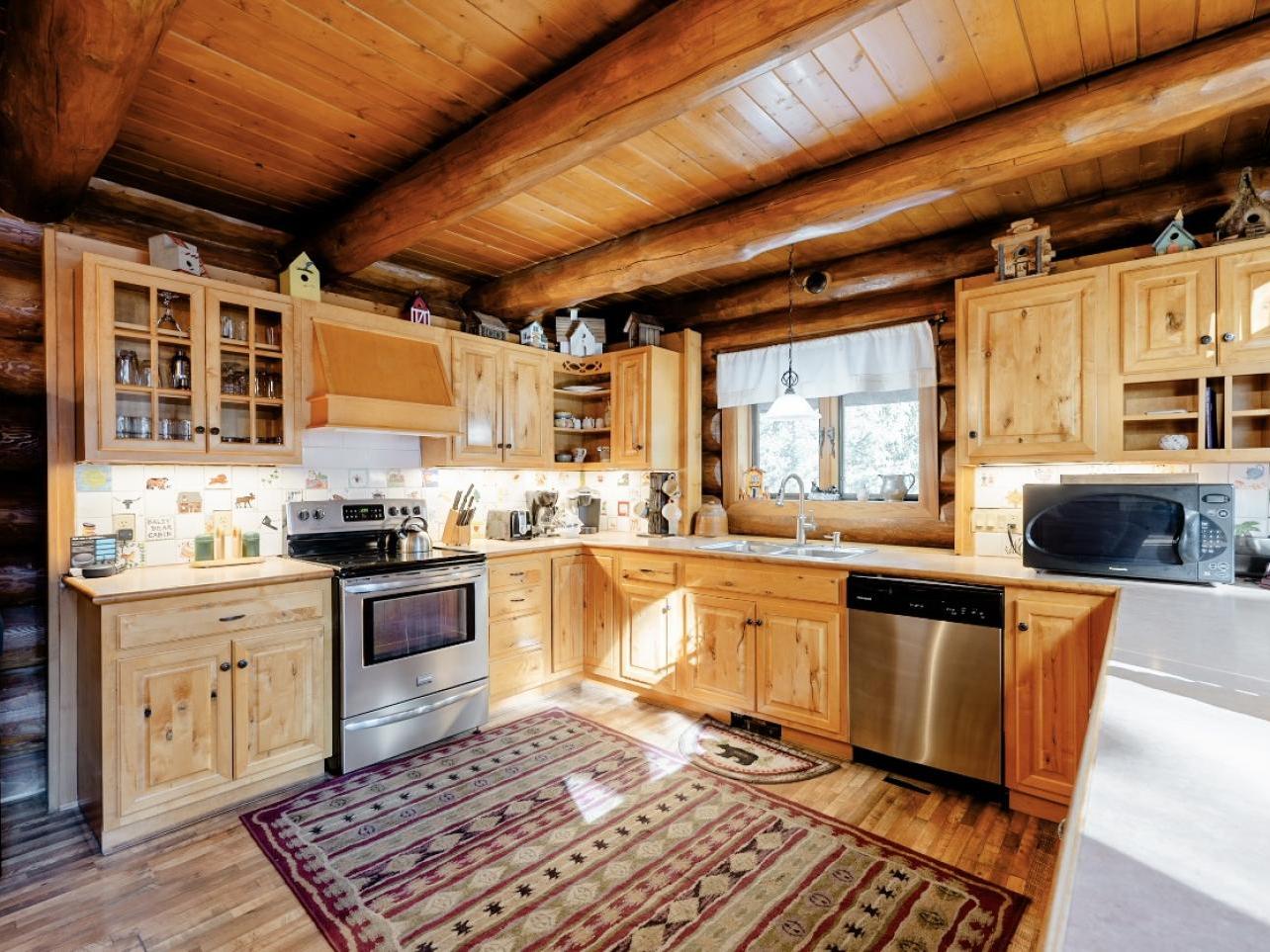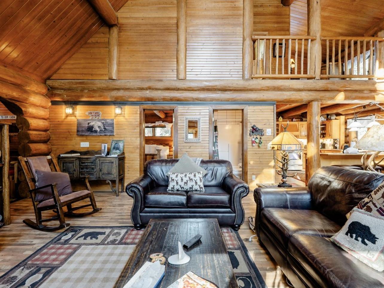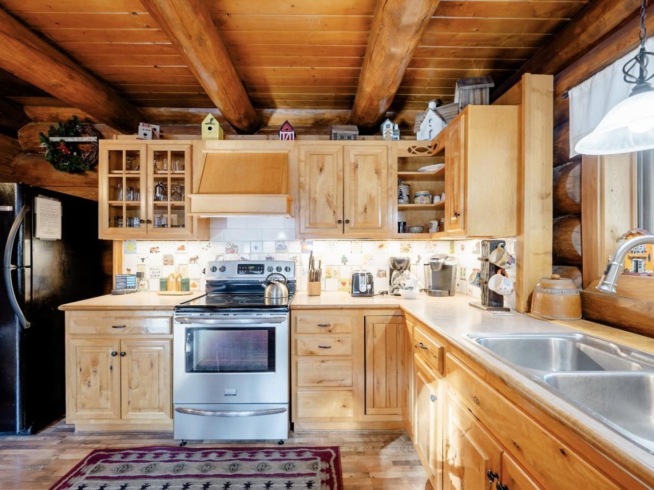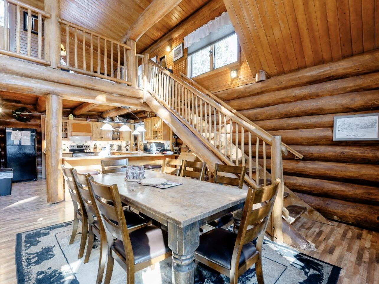 The ideal vacation home for any season with its serene location and rustic elegance, this quality Colorado log cabin offers an abundance of space for a group of up to eight guests. A vaulted living room is comfortably furnished and features a two story rock fireplace that opens to the large loft. The adjacent fully equipped kitchen has a breakfast bar next to a dining area where the entire family can enjoy entertaining after a day of fun in Breckenridge.