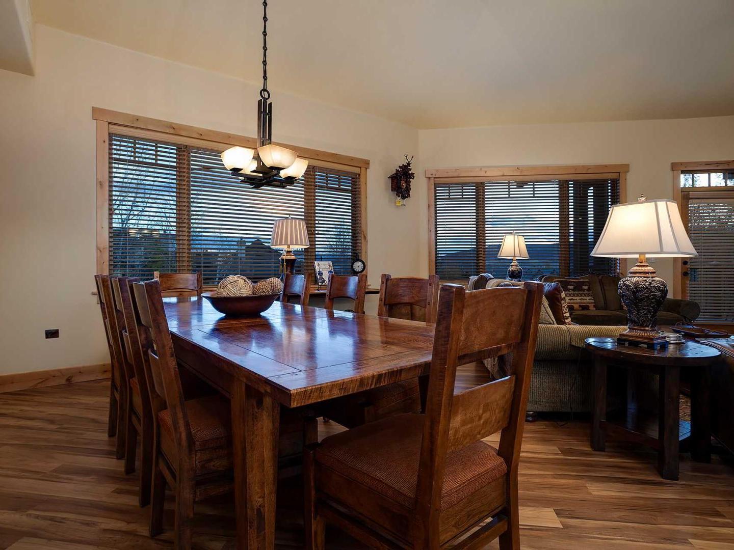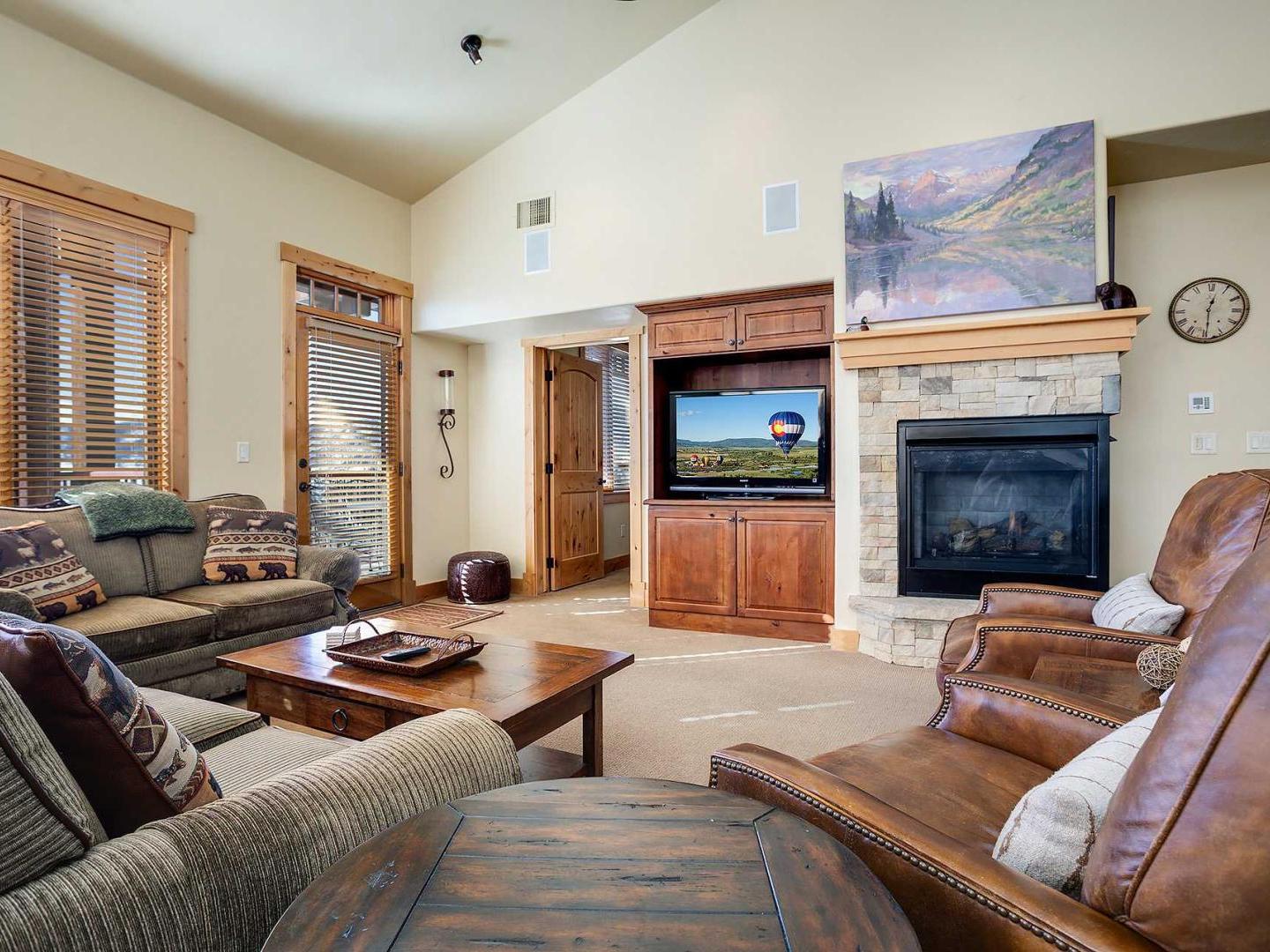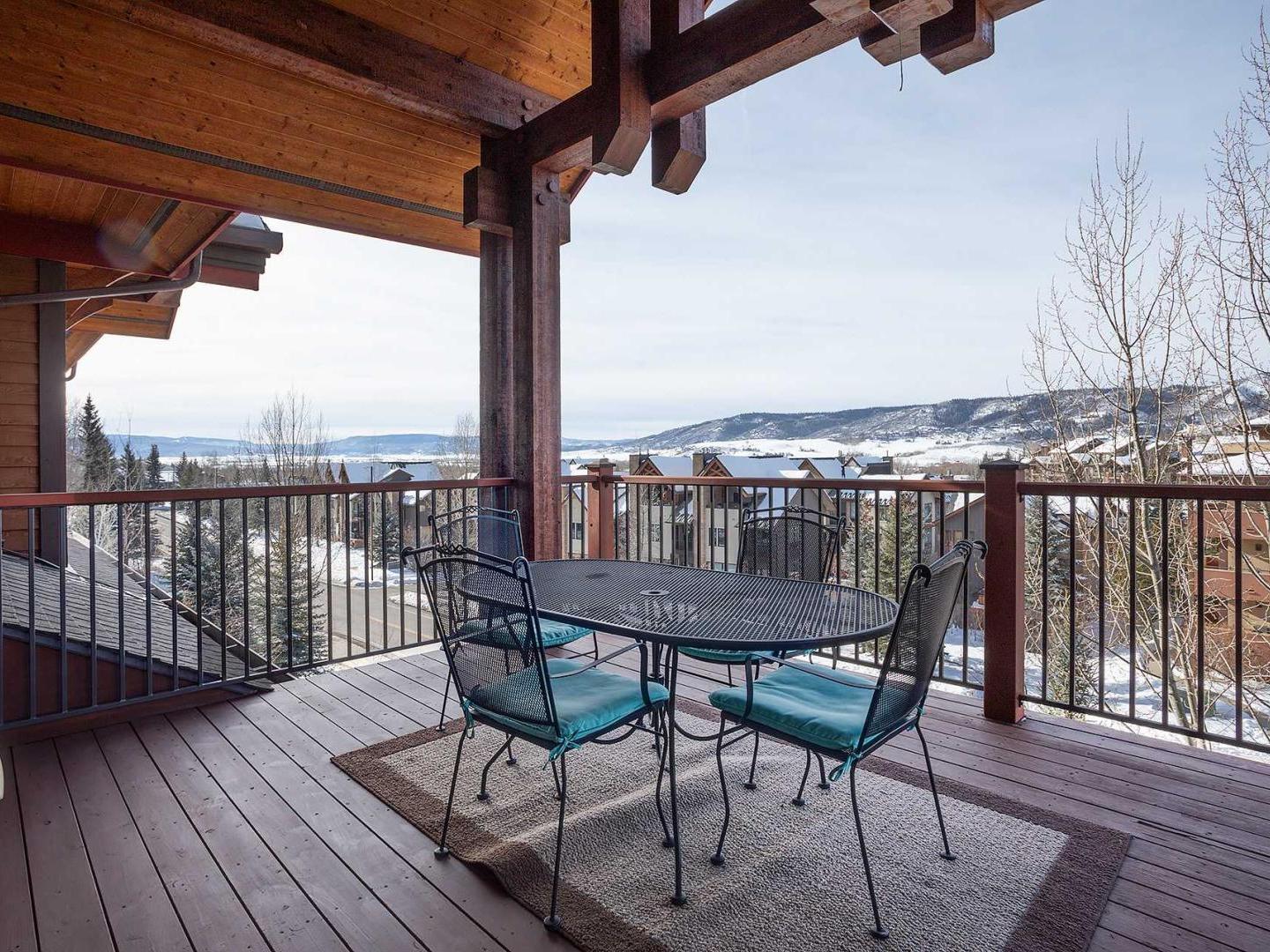 Bear Lodge is comprised of three bedroom, three bedroom plus den, four bedroom, and five bedroom luxury vacation rentals that offer spacious interiors. Designer furnishing centered on a stone fireplace and flat-screen television adorn the living rooms which are open to a large dining area and gourmet kitchen with upscale appliances and granite countertops. Magnificent views of the surrounding mountains and the Yampa valley can be enjoyed from the private balconies with some including an outdoor fireplace and private hot tub.