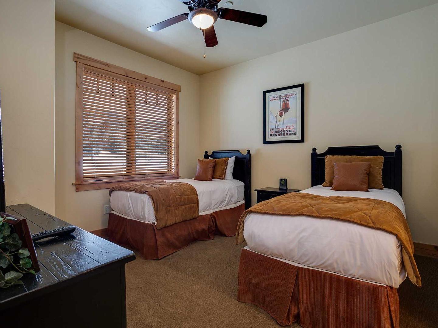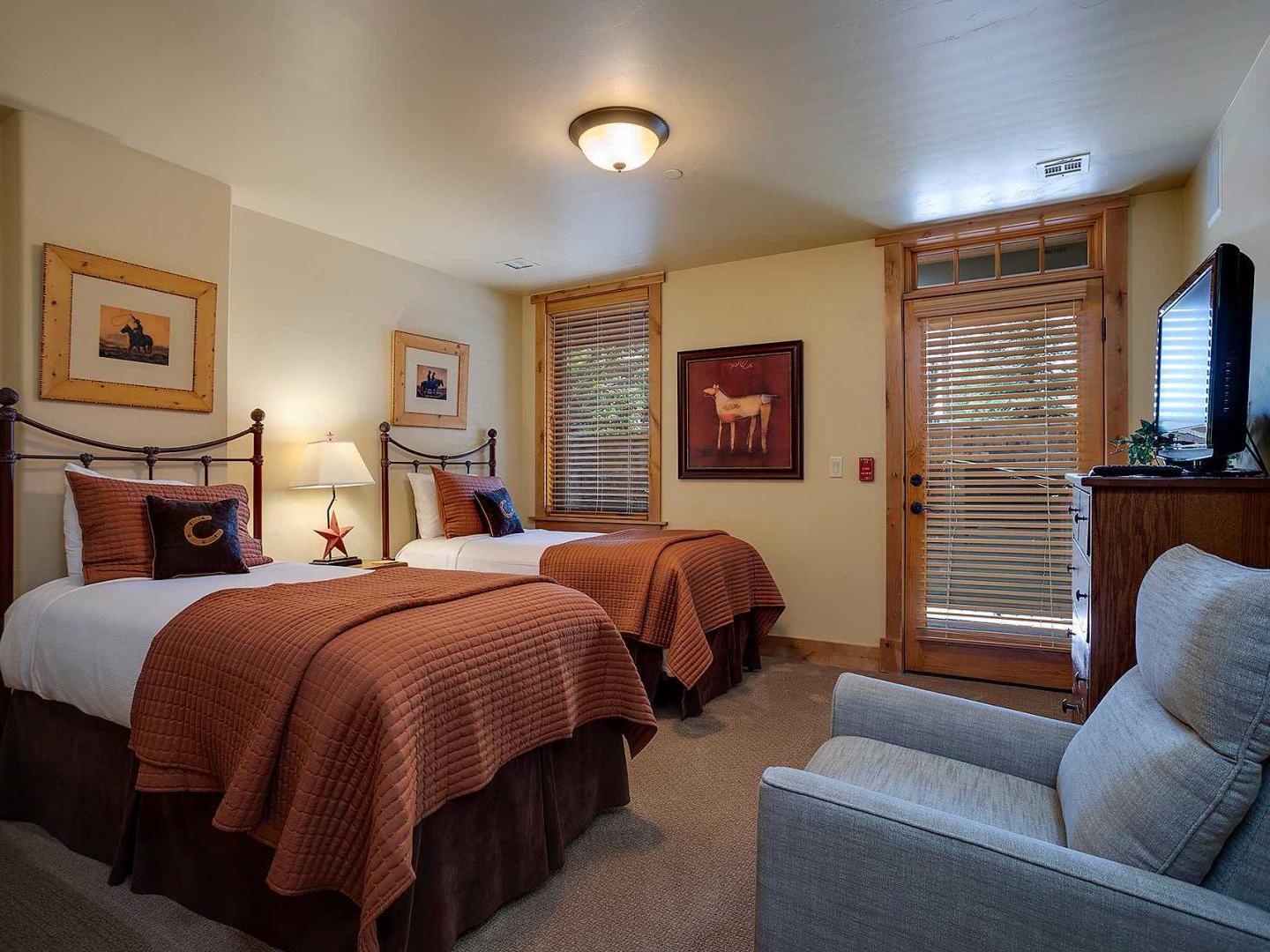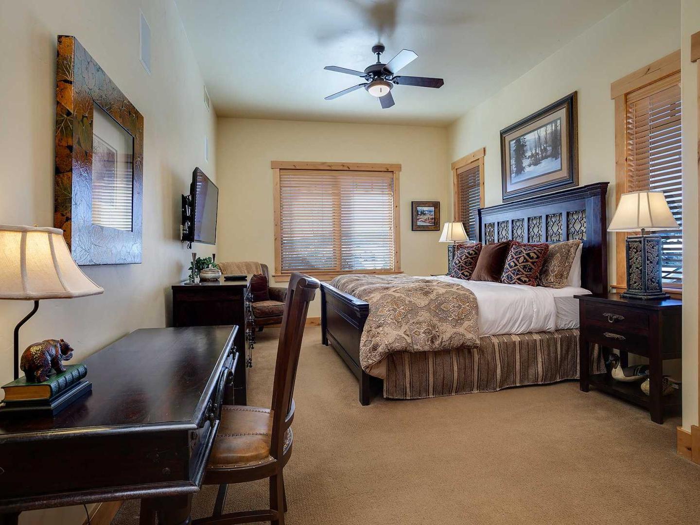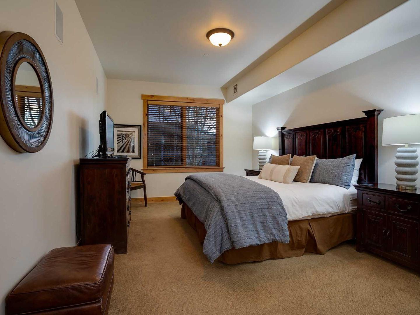 Large bedrooms in the Bear Lodge units are furnished with high quality bedding and linens. Guests staying at the Bear Lodge will appreciate the property's exclusive vacation amenities. Kids and adults alike will love relaxing in the indoor/outdoor swimming pool and multiple hot tubs at the end of a day on the Steamboat slopes. Those seeking a rounded work-out can finish off the day of activities in the fitness center with sauna and a day off the slopes can be enjoyed in the property's full service Spa. Summer guest will enjoy the tennis courts and everyone has access to the other amenities offered at the Trappeurs Crossing Resort.
