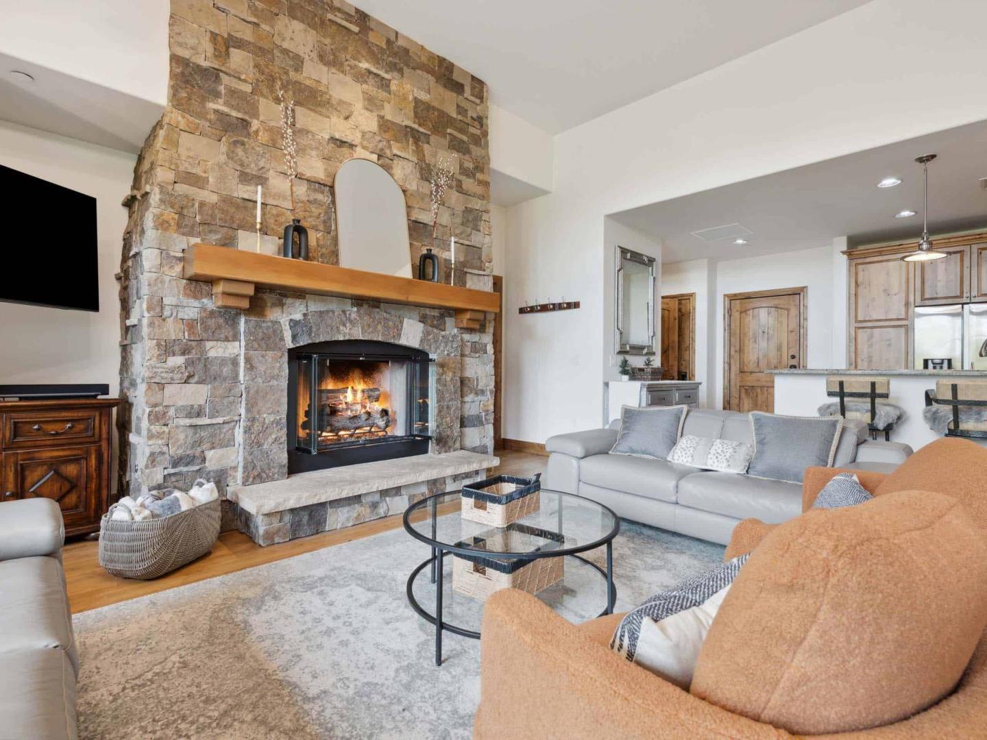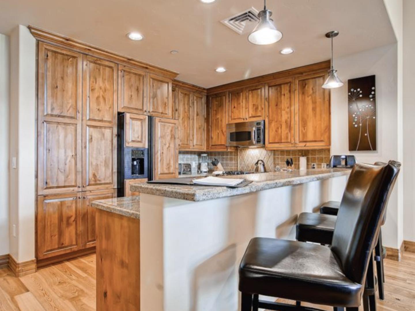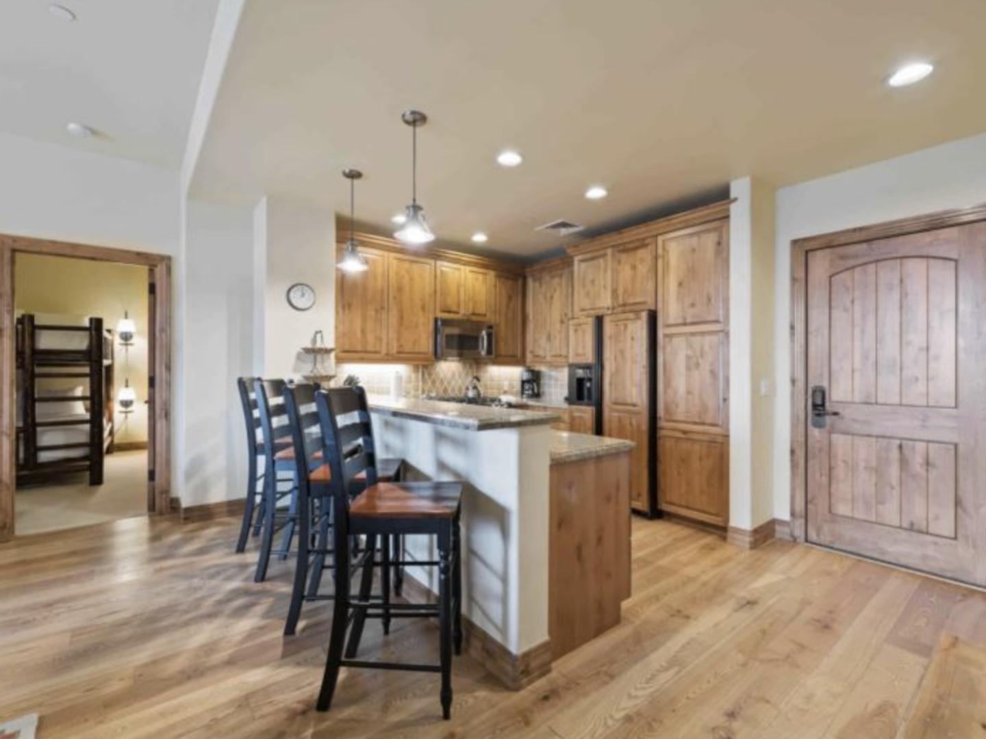 These luxury condominiums are beautifully furnished with fine finishes throughout. Granite countertops, custom tile and woodwork, and high end appliances adorn these spacious vacation rentals. Guests enjoy the superior amenities provided onsite including outdoor hot tubs, an outdoor pool, a fun fire pit, and fitness facility. An on-site front desk and lobby with fireplace are a perfect place to gather. A full ski room with boot dryers complete the ease of the ski in and ski out access.