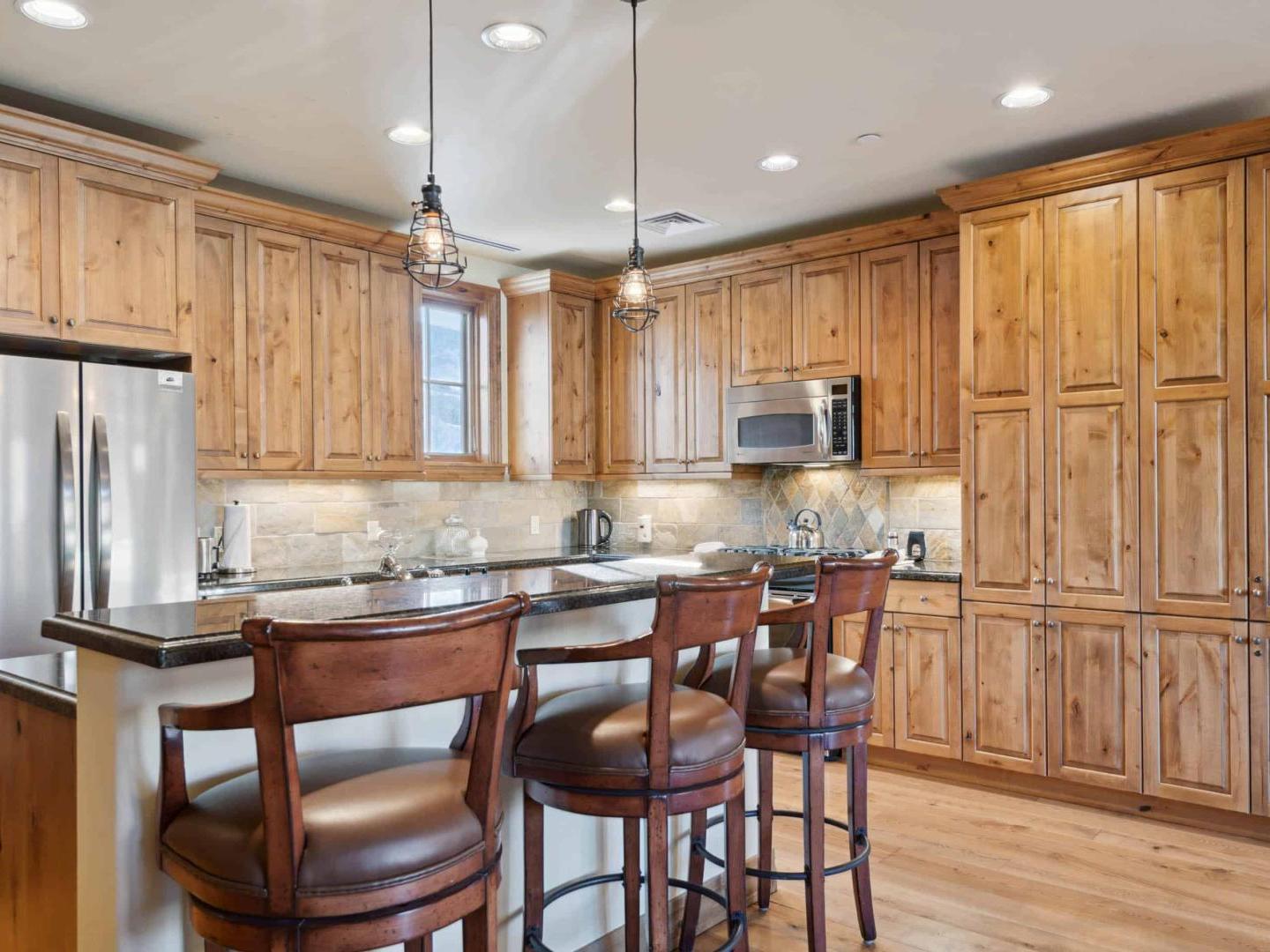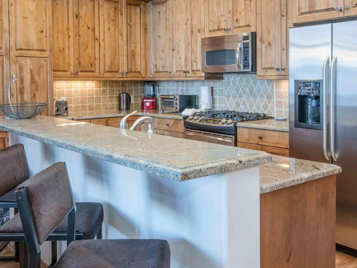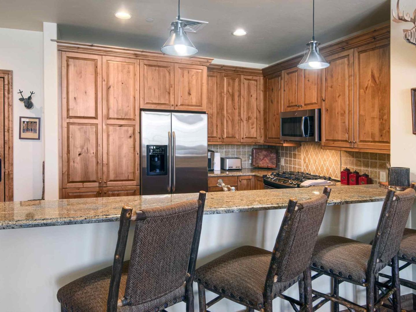 These luxury condominiums are beautifully furnished with fine finishes throughout. Granite countertops, custom tile and woodwork, and high end appliances adorn these spacious vacation rentals. Guests enjoy the superior amenities provided onsite including outdoor hot tubs, an outdoor pool, a fun fire pit, and fitness facility. An on-site front desk and lobby with fireplace are a perfect place to gather. A full ski room with boot dryers complete the ease of the ski in and ski out access.