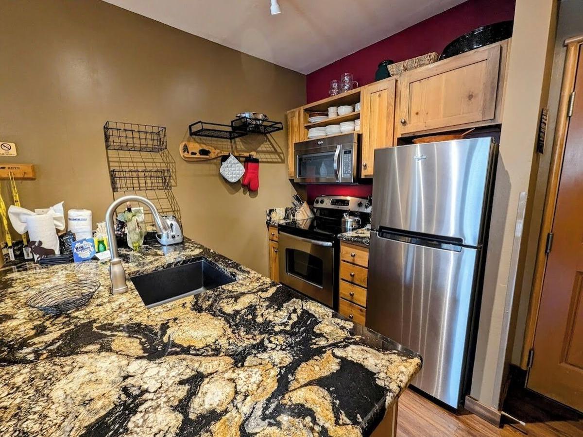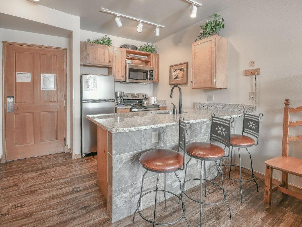 Featuring fully equipped, comfortably appointed condominium rentals, the Black Bear Lodge is a popular choice for Keystone visitors wanting to be as close to the lifts and ski slopes as possible. Equipped with all of the comforts of home, each condominium features a comfortably furnished living room with a gas fireplace and access to a private balcony. Open to the living room and adjacent dining area, the kitchens are fully equipped for guests convenience.