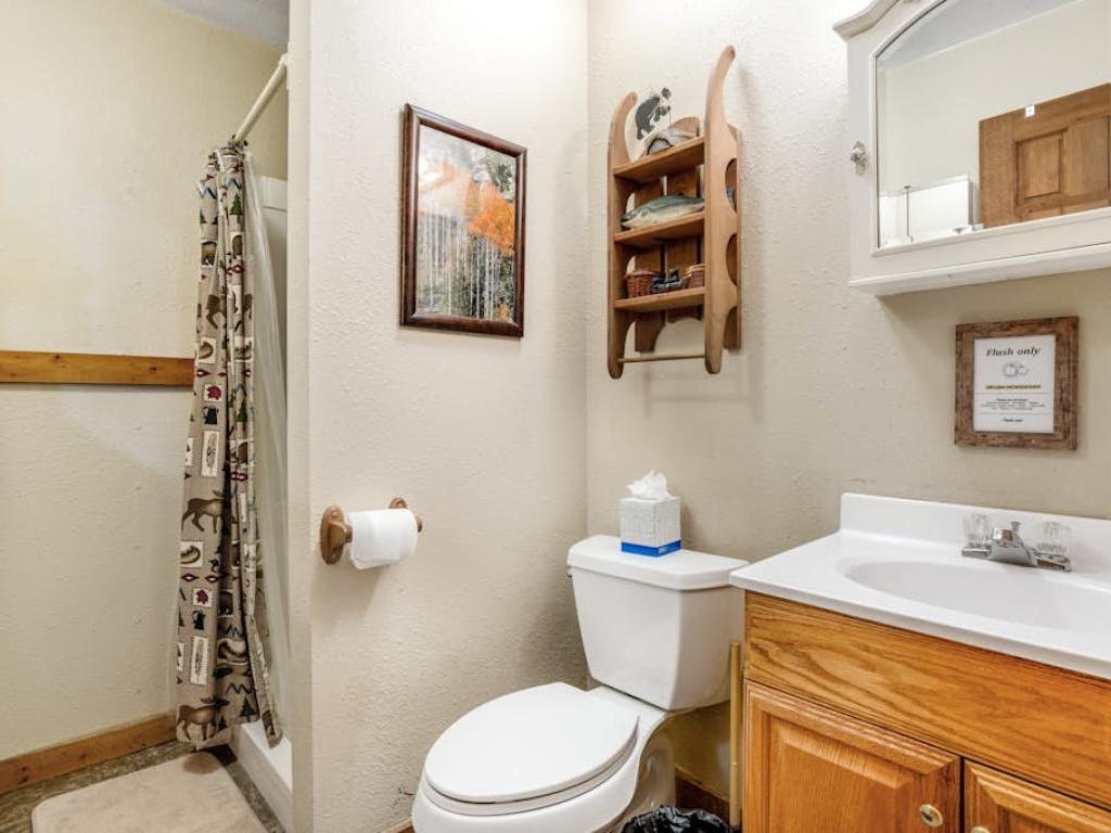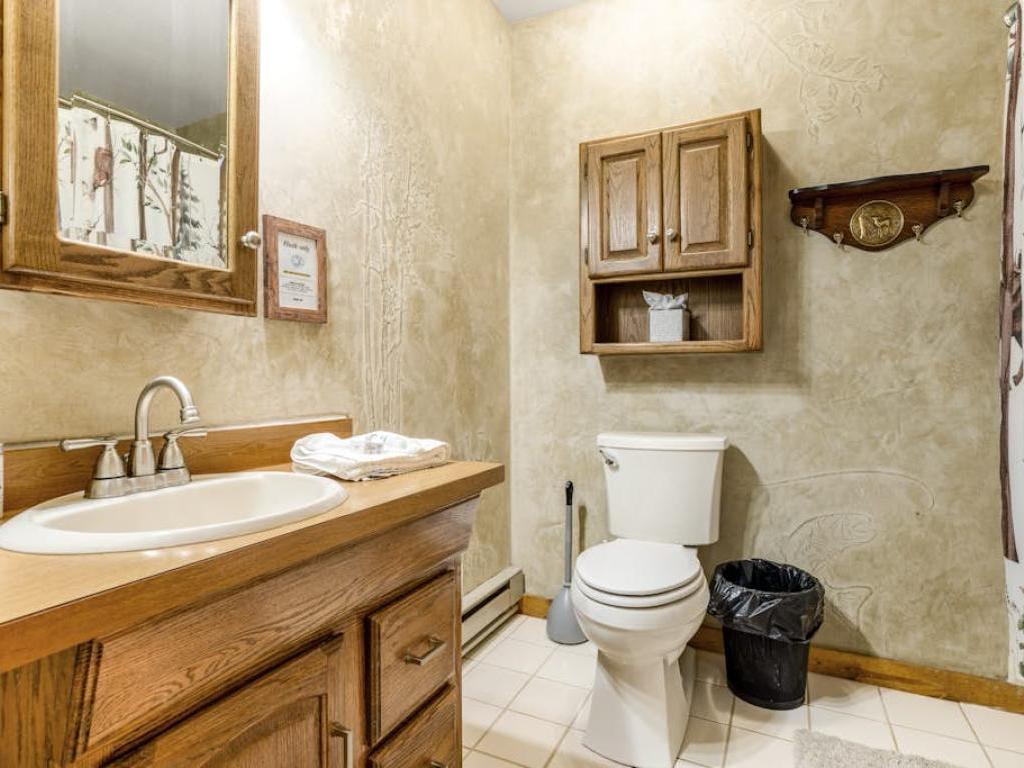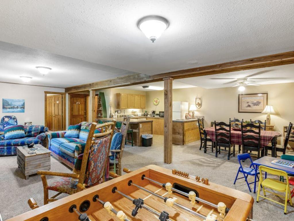 Just off the Kitchen and Great Room is the Dining Room with large dining table and seating for 10 to 12. Additional seating is available at the kitchen island and breakfast nook – perfect for the kiddos! The Main Level is also host to one bedroom, a full bathroom and the Mudroom. The Mudroom offers storage for all your cold weather gear plus the washer and dryer and large sink. Finally, a private office is situated in the front corner of the home, beside the front door, and offers a bright and quiet place to tend to any work while on vacation.