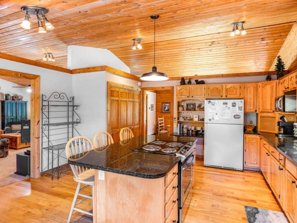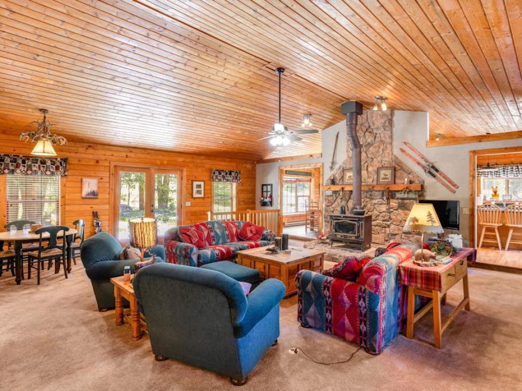 Head down to the lower level for entertainment options galore! Billiards, Ping Pong and Air Hockey will surely stir up some friendly competition. A wet bar with microwave, bar fridge and sink means you won’t have to go back upstairs for snacks and beverages. After having some fun around the game tables, retire to the adjacent Family Room with comfy sectional sofa, loveseat, and 75-inch flatscreen TV. The two bunk rooms reside on the lower level and share a hall bathroom.