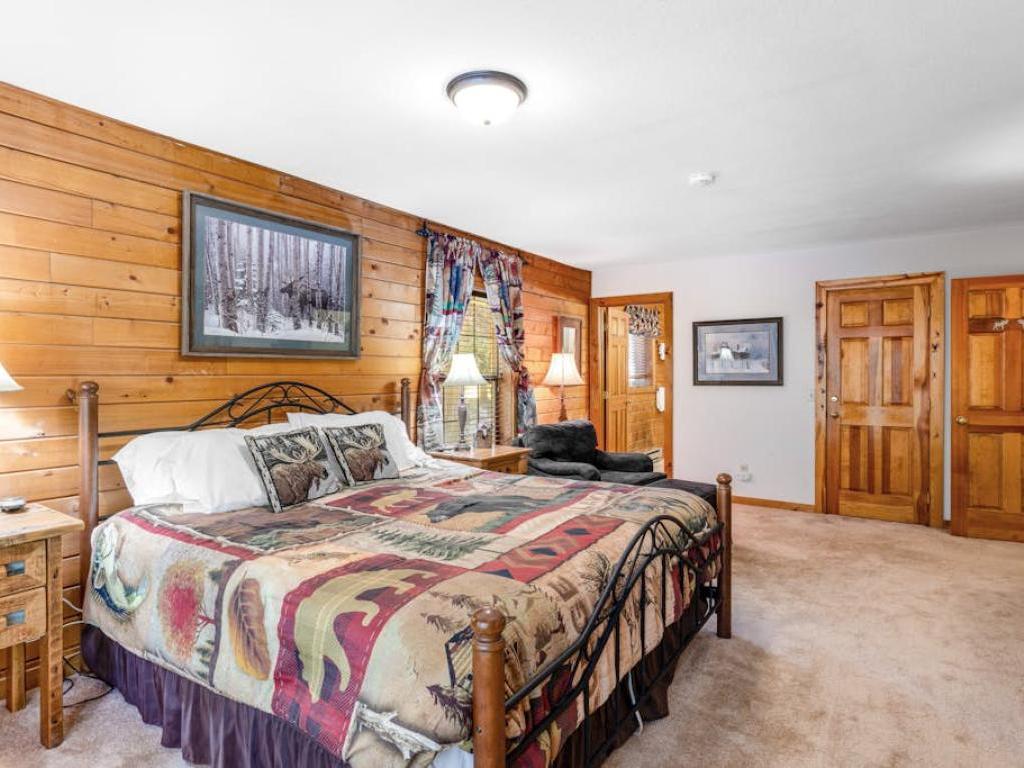 - Aspen King Bedroom: King bed, shared Jack-and-Jill bath with tub/shower combo