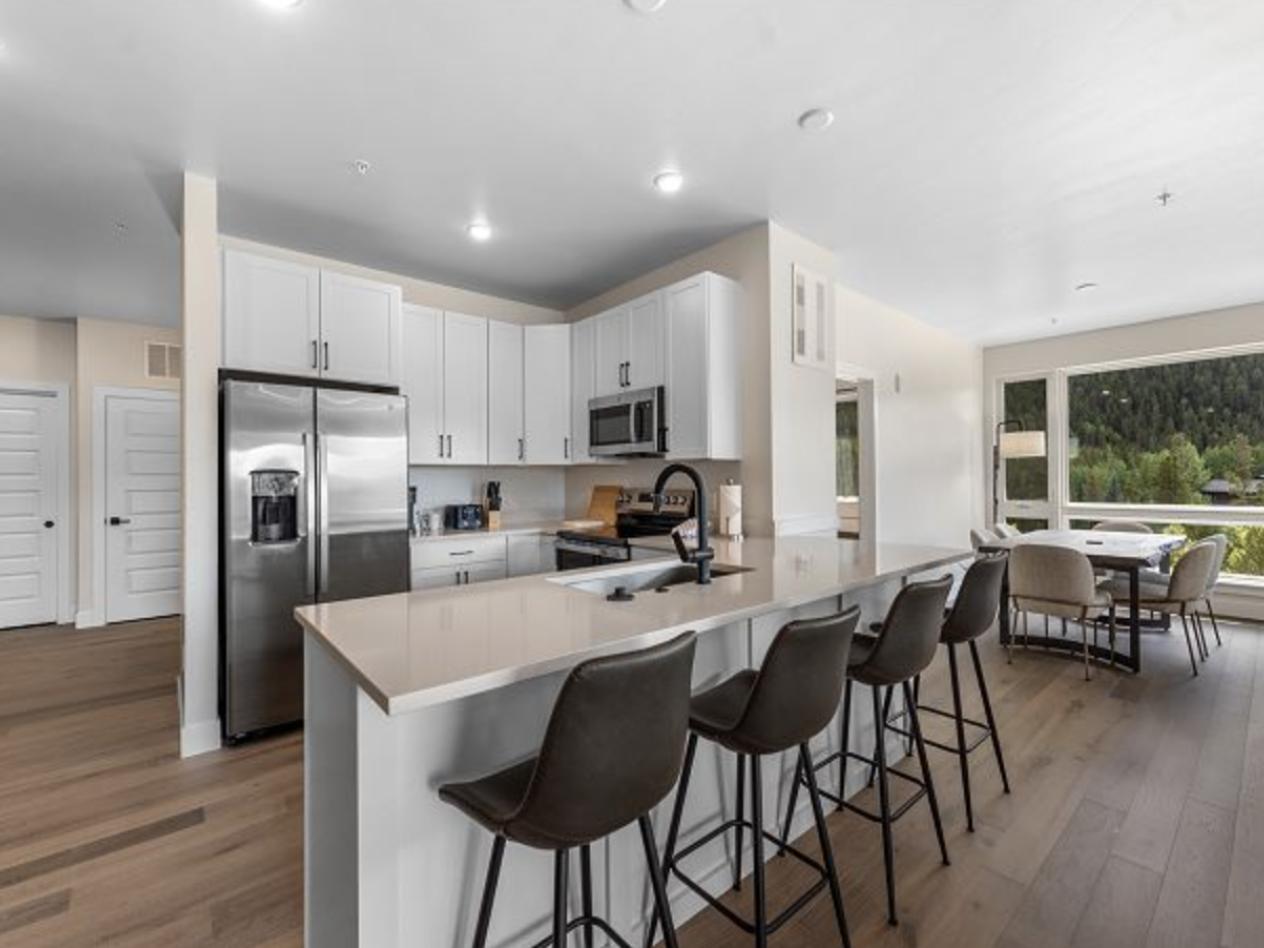 Open living areas, framed by windows exposing inspiring mountain views, create an inviting space for entertaining in these 1 - 3 bedroom luxuriously appointed residences located on the outskirts of Lakeside Village and just a 5 minute free shuttle ride to the Keystone ski slopes. Warmly decorated and furnished, the living rooms focus on a gas fireplace and wall-mounted television with windows and a glass door leading to the deck allowing light to pour inside. Dining areas and fully equipped, contemporary kitchens with breakfast bars are set off of the living room.