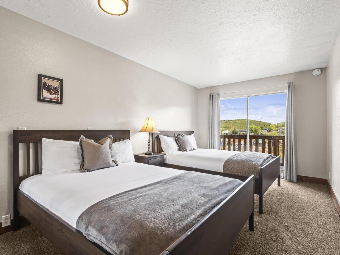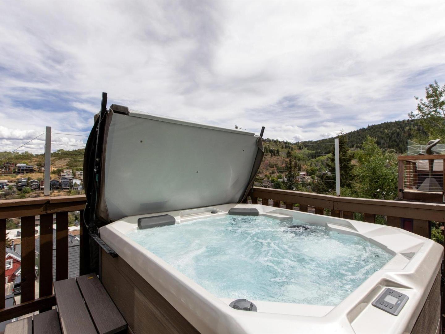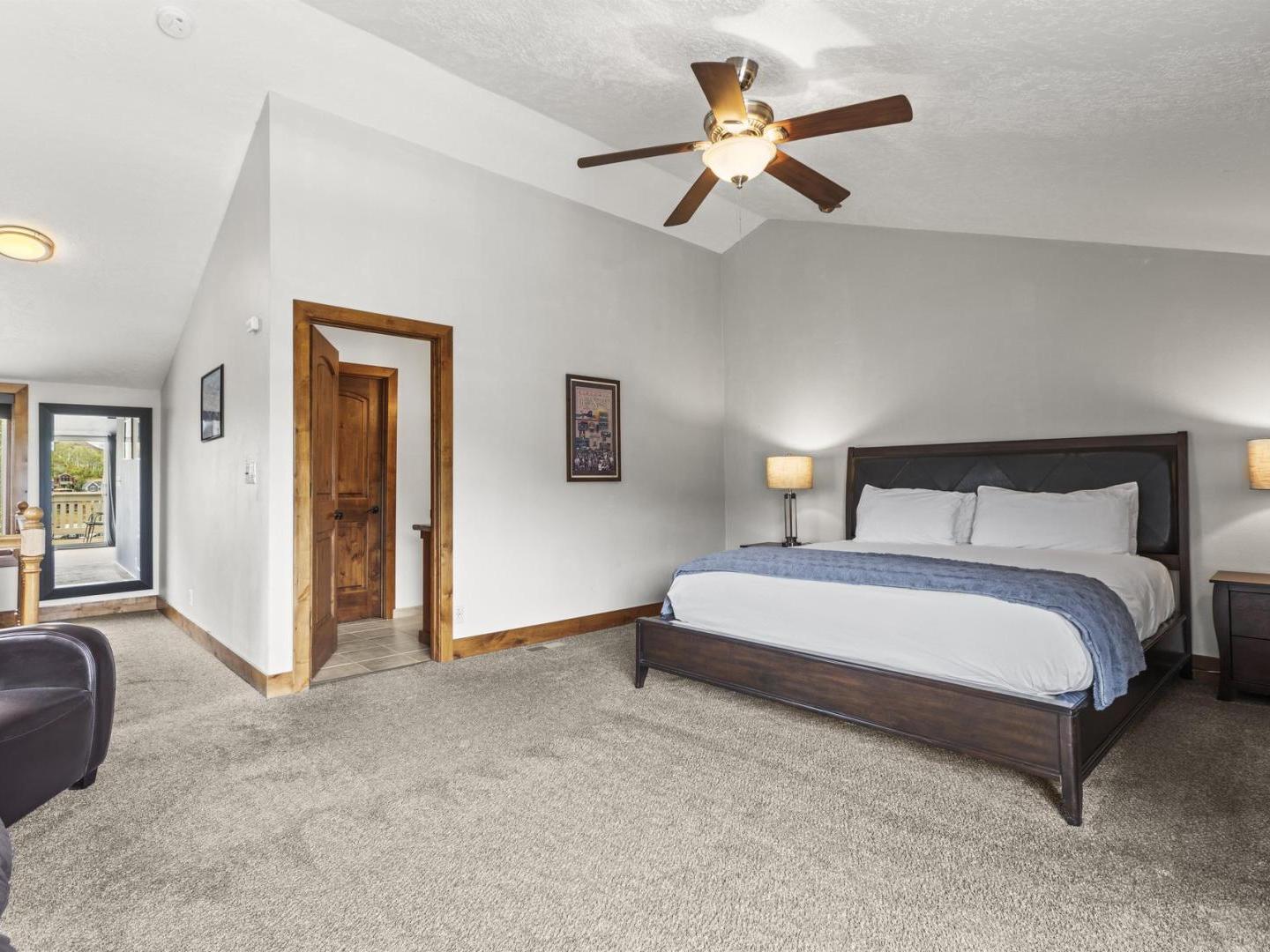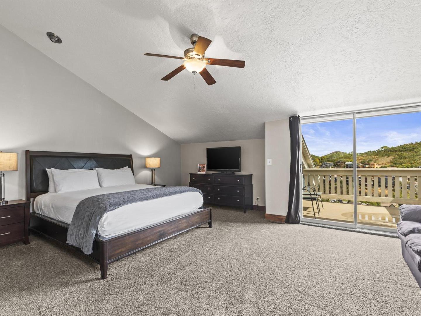 Occupying the main floor of this 4-bedroom, 3.5-bath mountain retreat is a cozy living room, complete with plush seating, a wood-burning fireplace, and an adjacent television—perfect for après-ski relaxation. The fully equipped kitchen features modern appliances, granite countertops, and a breakfast bar with seating for four. An adjacent dining area comfortably seats eight more, making it easy to enjoy meals together. Step outside onto the deck and soak in the private hot tub while taking in stunning views of Old Town and Upper Deer Valley.