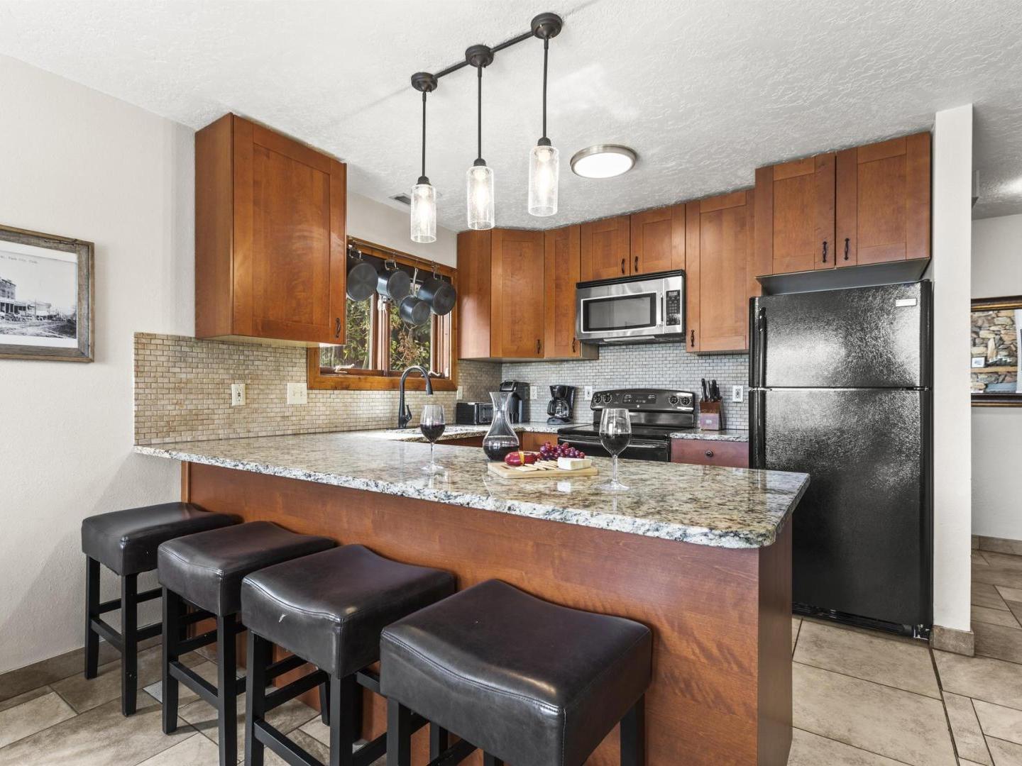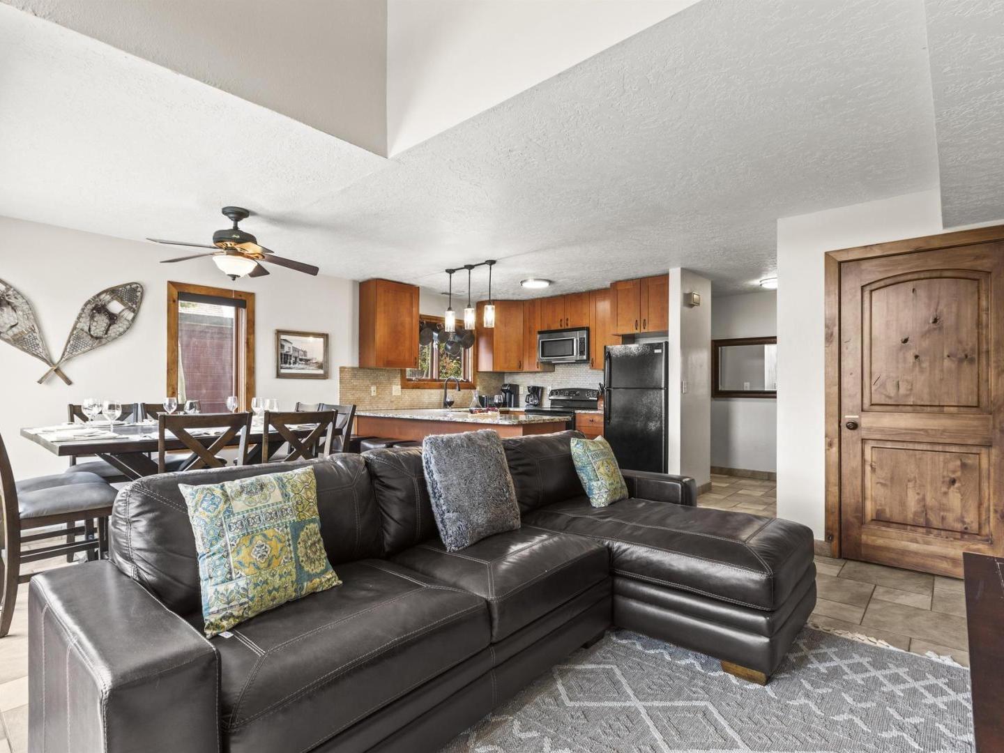 Head to the lower level shared game room, for some competition on the pool table, foosball, or to relax in the sauna - perfect for après ski or a break from shopping on Historic Main Street. Additional amenities include a BBQ gas grill on the deck, plus a one-car garage and street parking for one car.