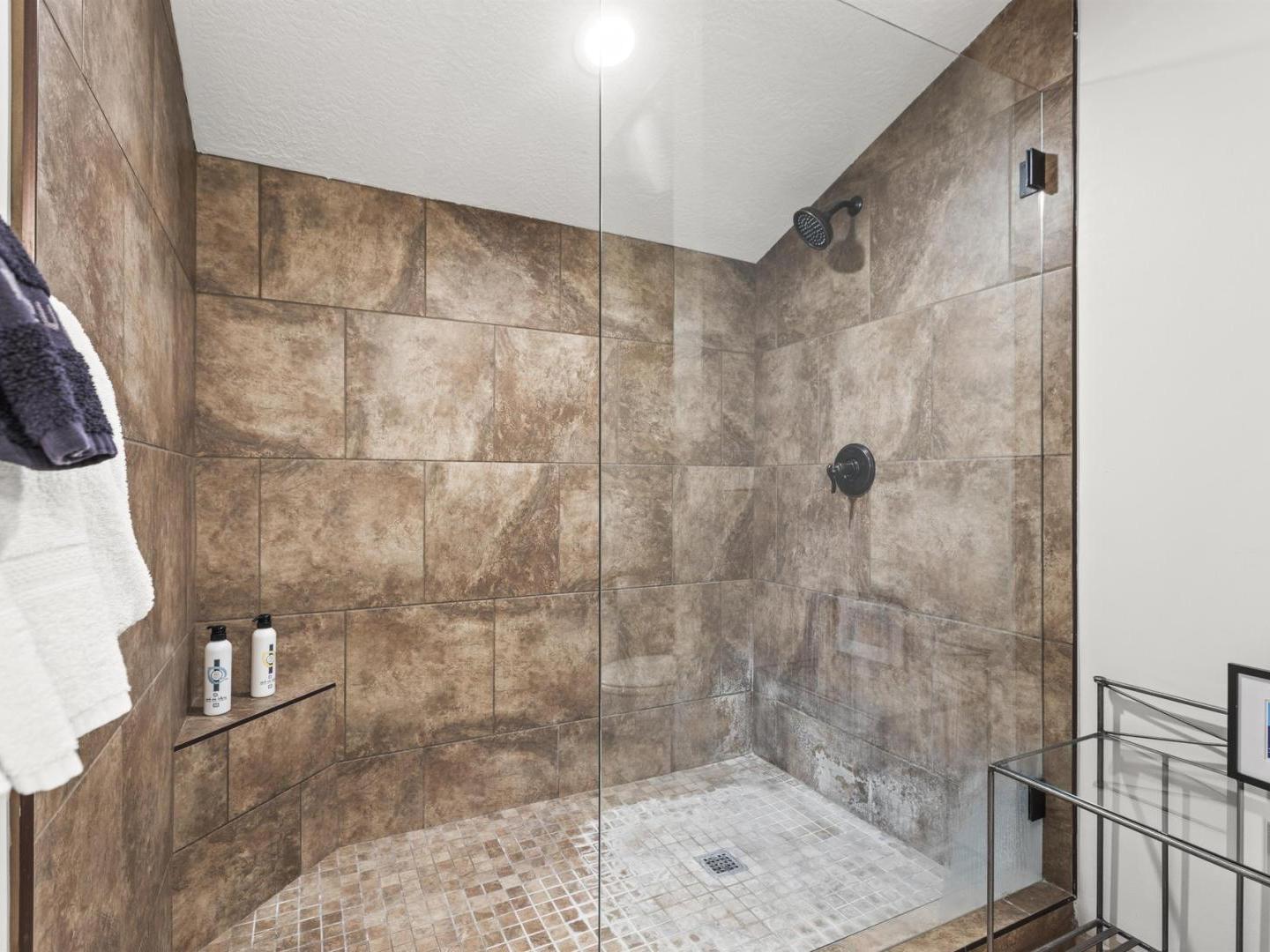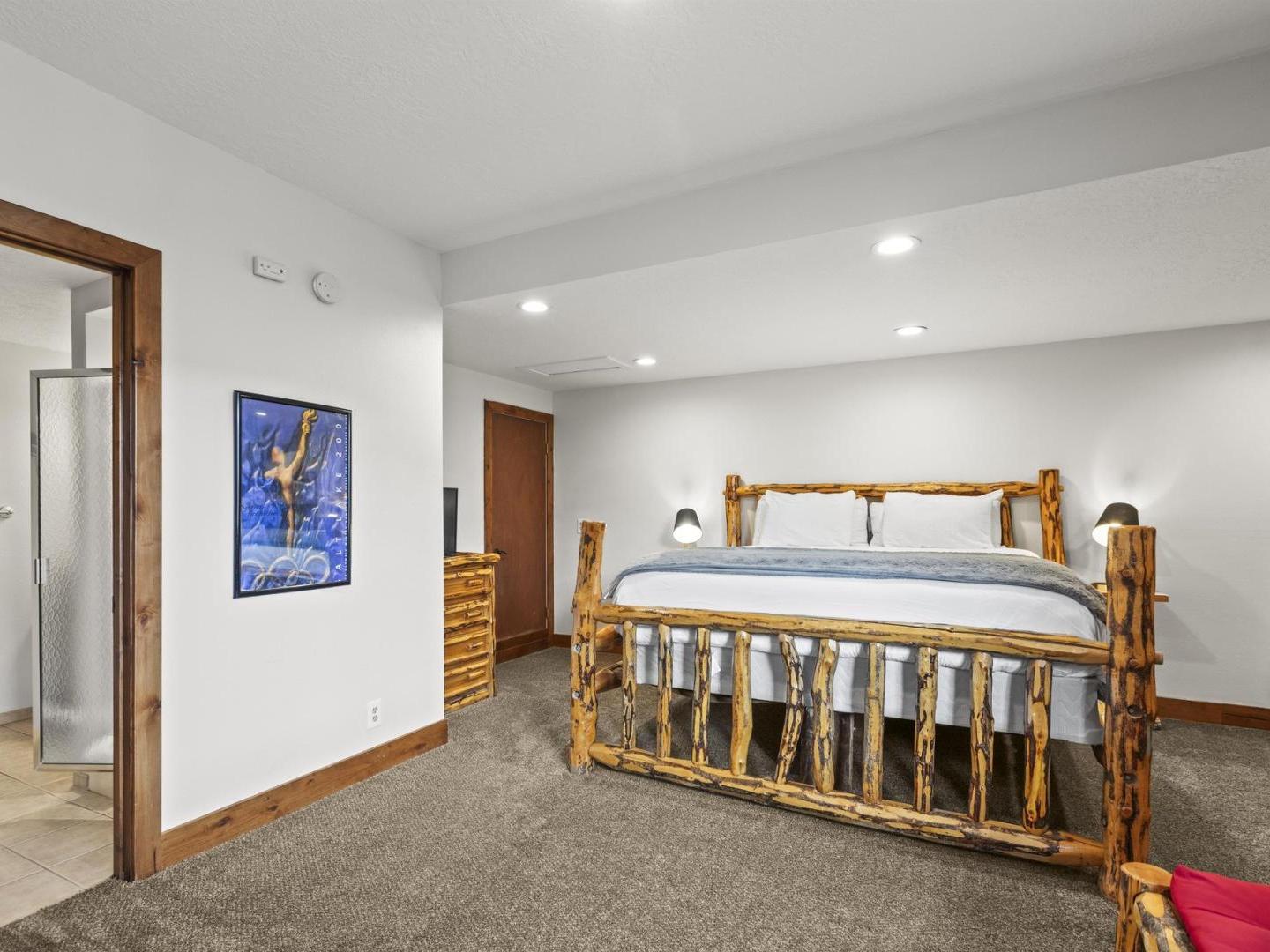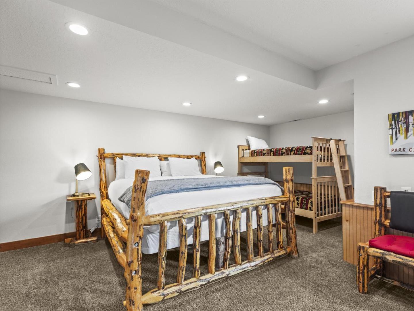 Each of the four bedrooms provides a comfortable retreat. The main suite features a King-size bed, while downstairs you’ll find a bedroom with a California King. The third bedroom includes two Queen beds and the fourth has a Queen bed plus a lofted Twin, perfect for a child. Each bedroom has access to its own deck, offering a private space to enjoy the fresh mountain air.