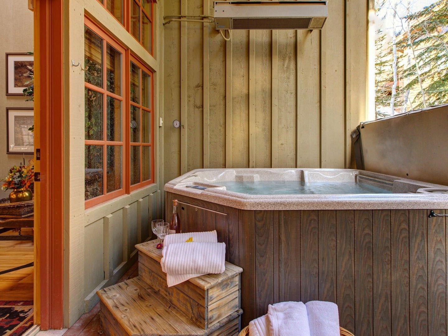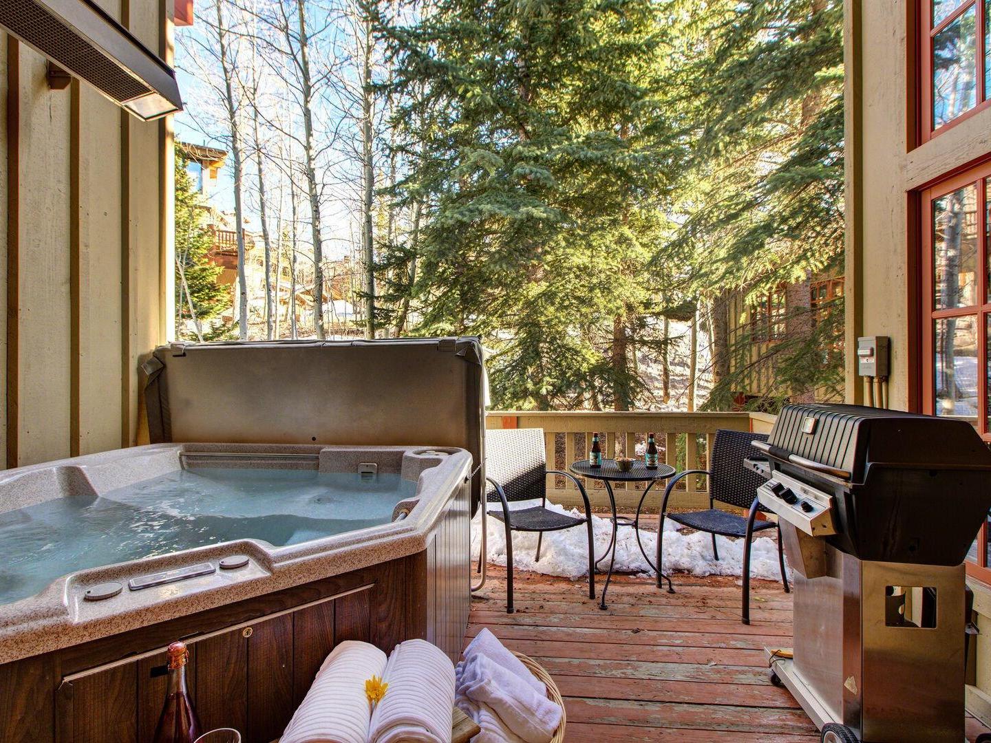 Just off the living area, a cozy sunroom offers a quiet retreat for reading or intimate conversation, and a dedicated private office provides a convenient workspace for those balancing work and play. After a day on the slopes, unwind in the private hot tub or fire up the barbecue while soaking in the peaceful mountain surroundings.