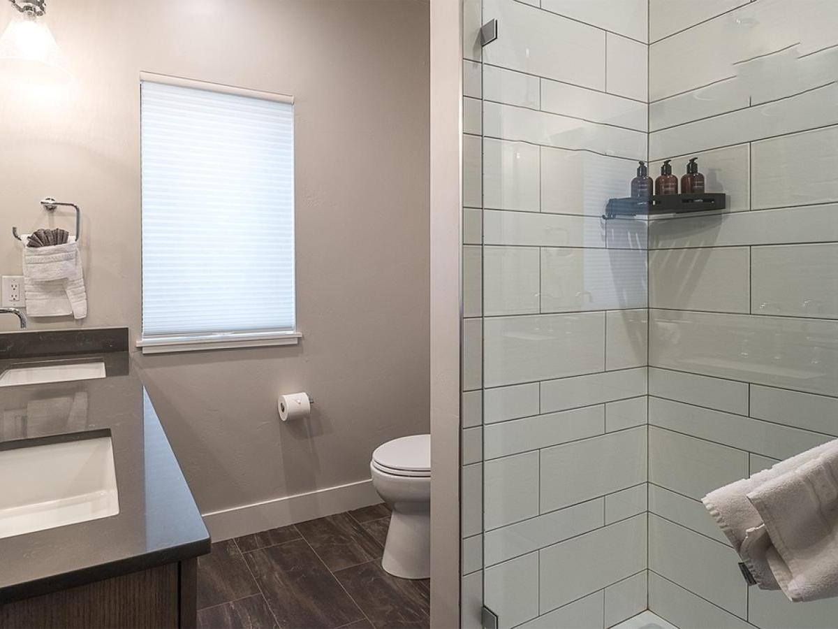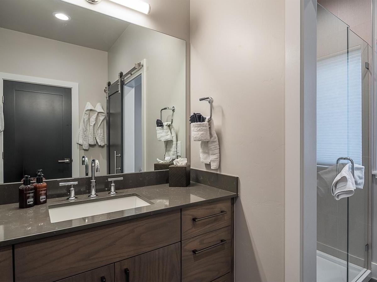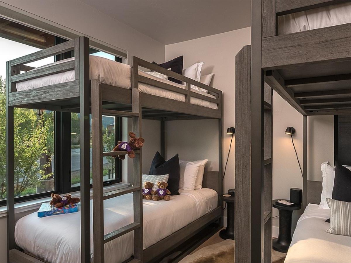 Located on the third level, the primary bedroom is appointed with a King bed and includes a private bathroom with a dual-sink vanity and walk-in shower. Two cozy guest bedrooms share a bathroom on the third level, both offer Queen beds. Occupying the lower level is a guest bedroom outfitted with two sets of Twin over Twin bunk beds and a private bathroom.