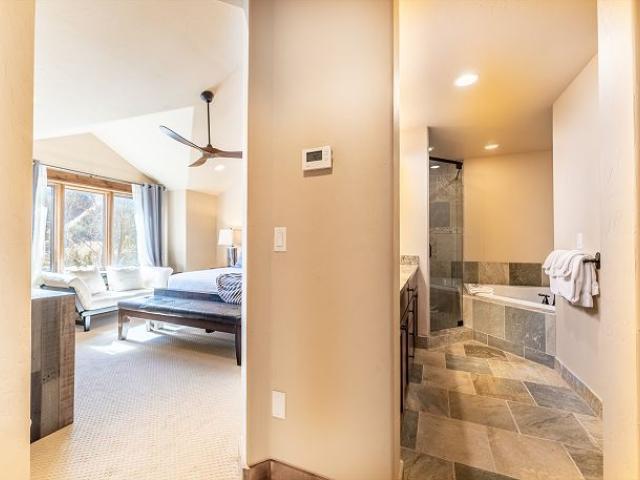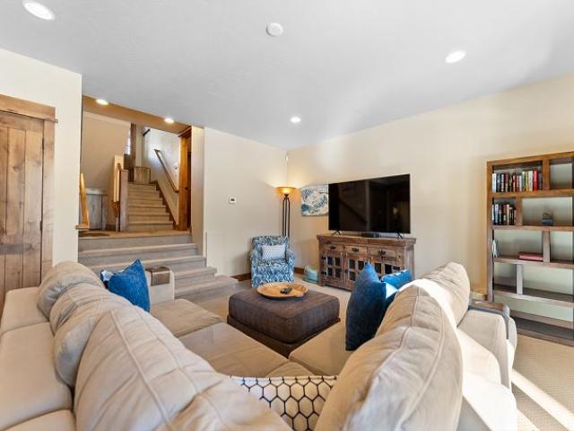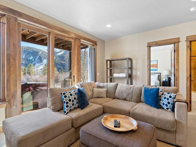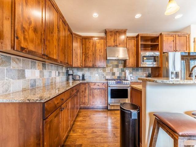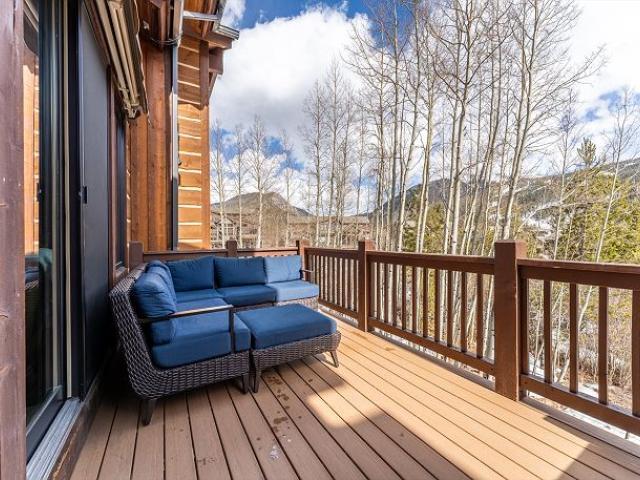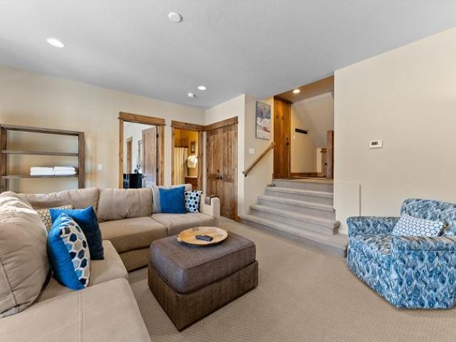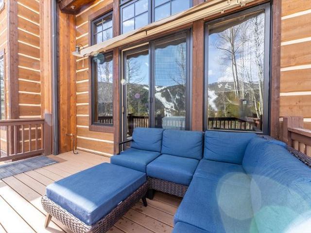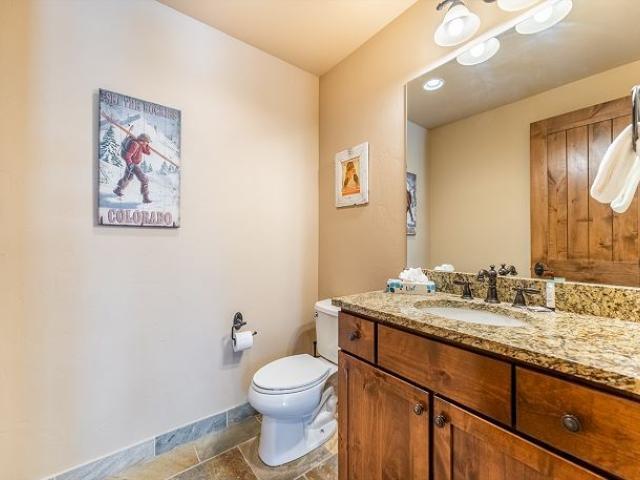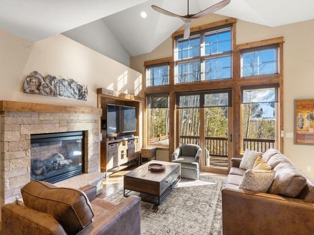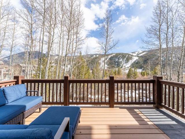 Gather inspiration from the ski slopes views that frame the living area of this 3 bedroom plus loft, 3.5 bathroom townhome featuring vaulted ceilings with floor-to-ceiling windows, hardwood radiant heat flooring, a gas fireplace with a beautiful stone surround, flat screen television, and access to the private balcony. Set off of the living room, the dining area comfortably seats eight with additional seating for five at the breakfast bar. Granite countertops and stainless steel appliances adorn the fully equipped kitchen that overlooks the living room and dining area.