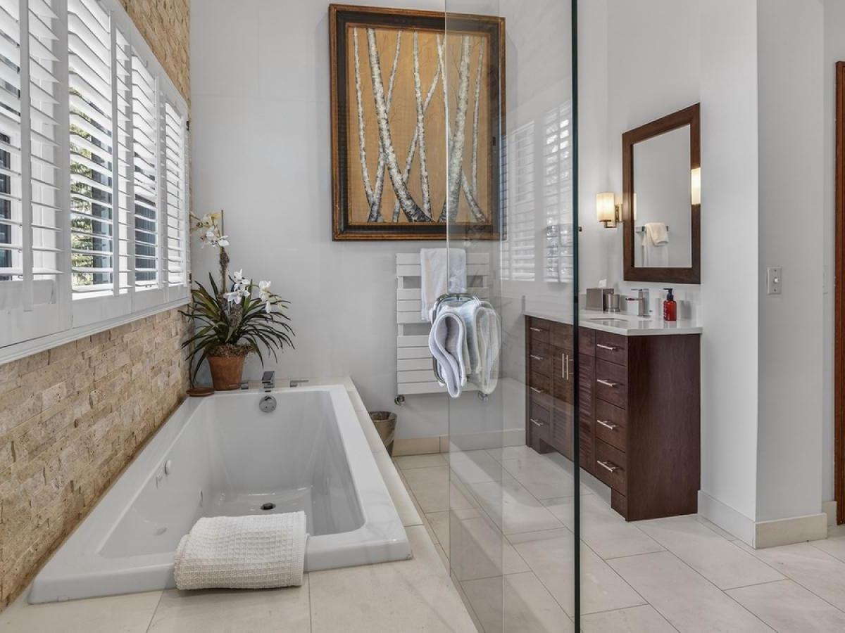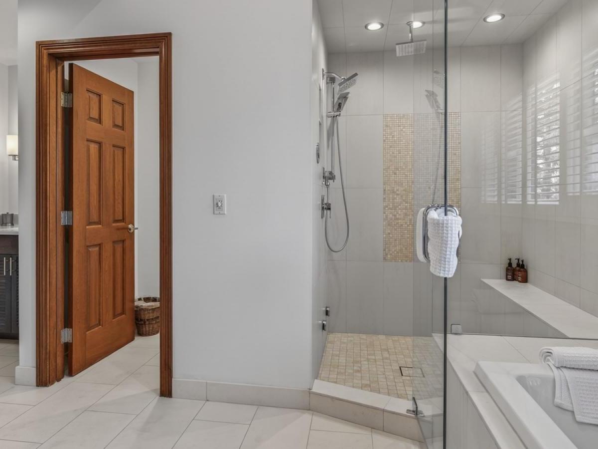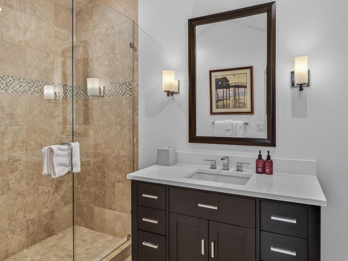 Three bedrooms, all boasting private bathrooms, are located on the third level. Furnished with a King bed, the primary suite features a luxurious bathroom with dual vanities, a jetted tub, and a steam shower. The two guest bedrooms on this level are appointed with a King bed in one and a Queen bed in the other. Located on the uppermost level of the residence is a large bedroom in a private loft area, furnished with two Twin beds and including a private bathroom.