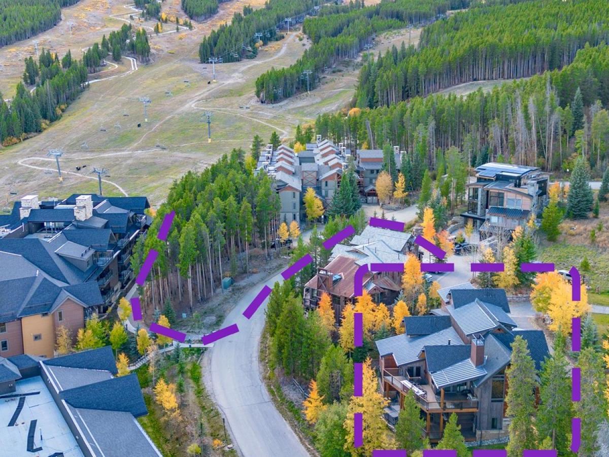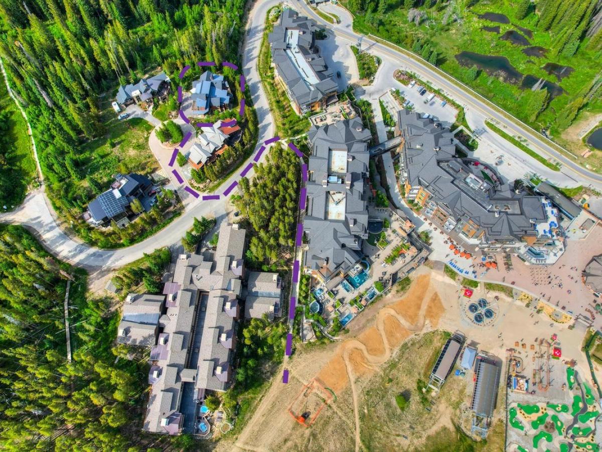 You’ll access the trail down to the Peak 8 base area with a short walk down the drive and onto a private path to the ski run.