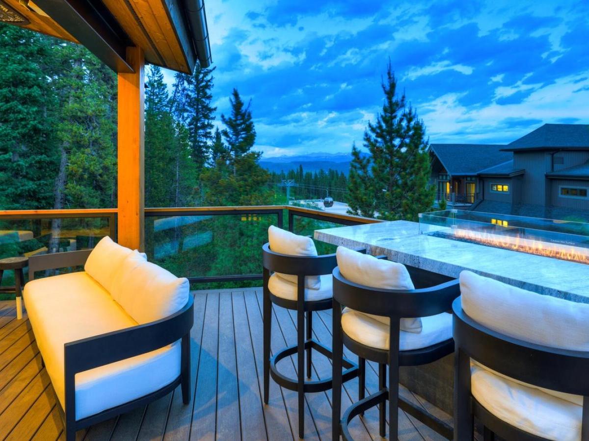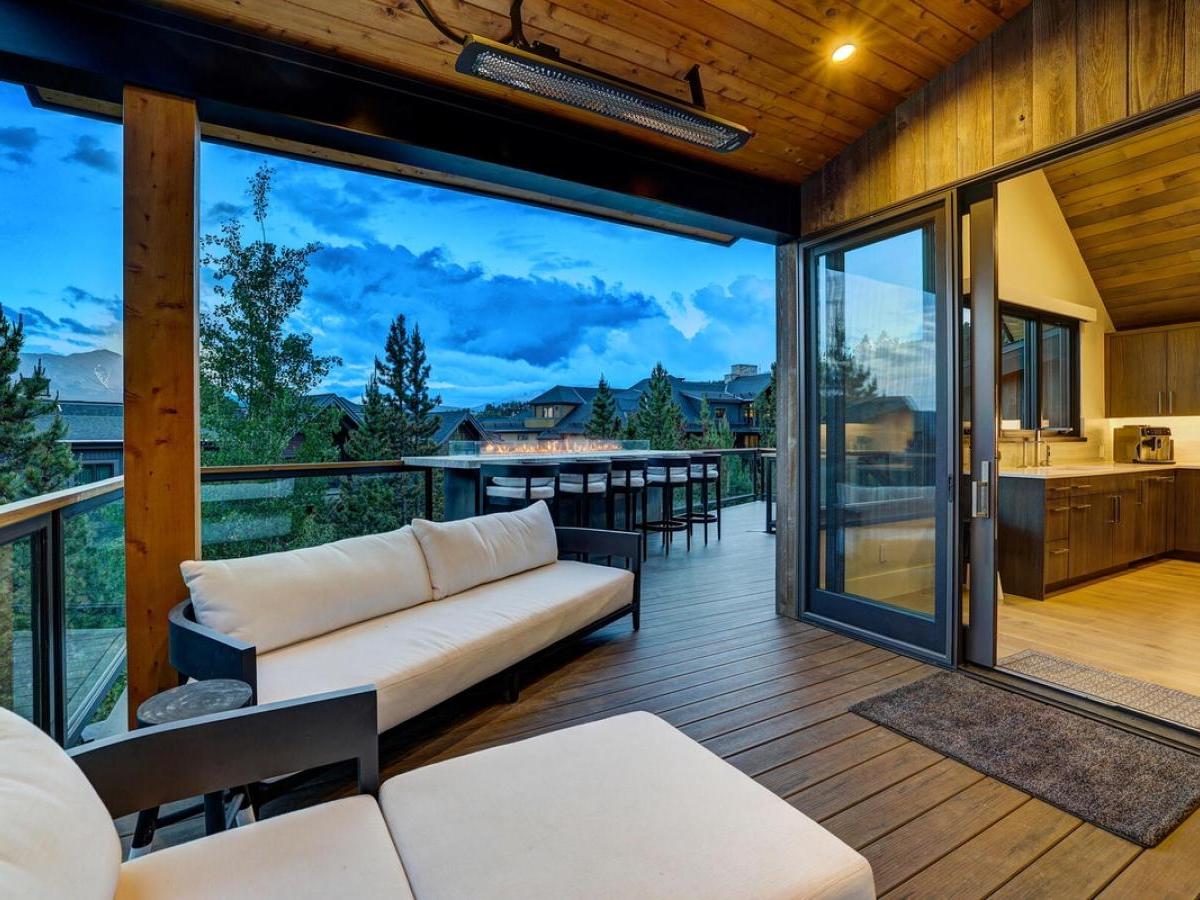Slide open the glass doors off the kitchen and step onto the deck that provides an unforgettable perch for après-ski gatherings or warm summer evenings. You can warm up under the heaters or by the large fire table with bar seating for five or sink into cushioned chairs and enjoy the spectacular views. There are also an outdoor TV and a gas grill on the deck with easy access to the kitchen.