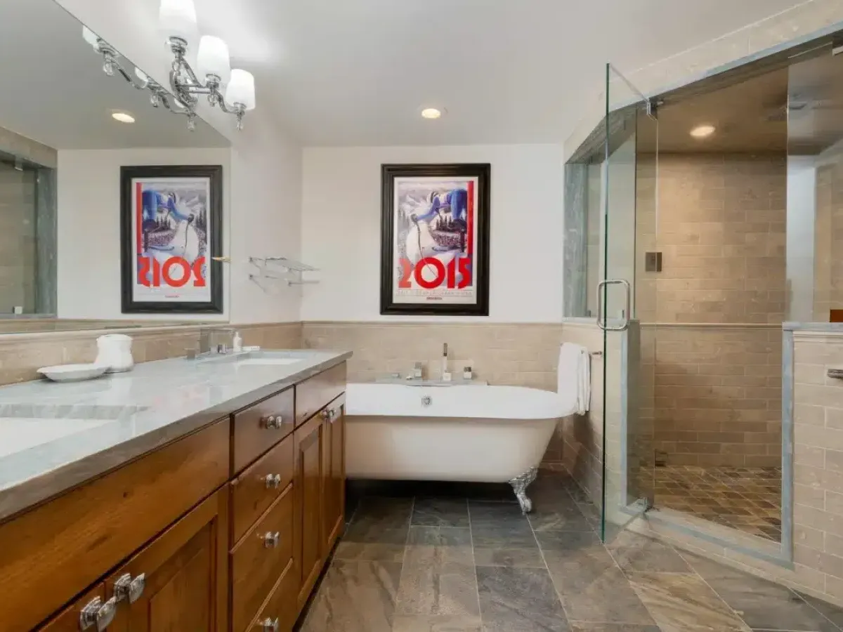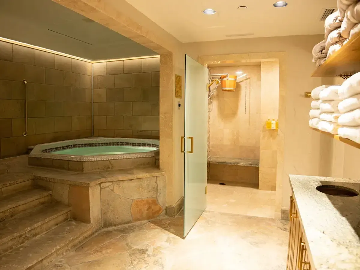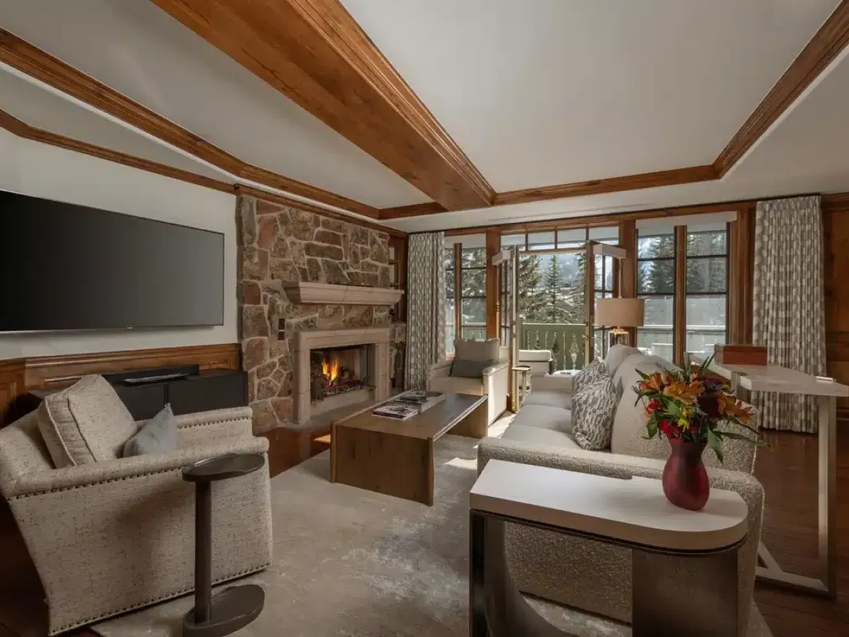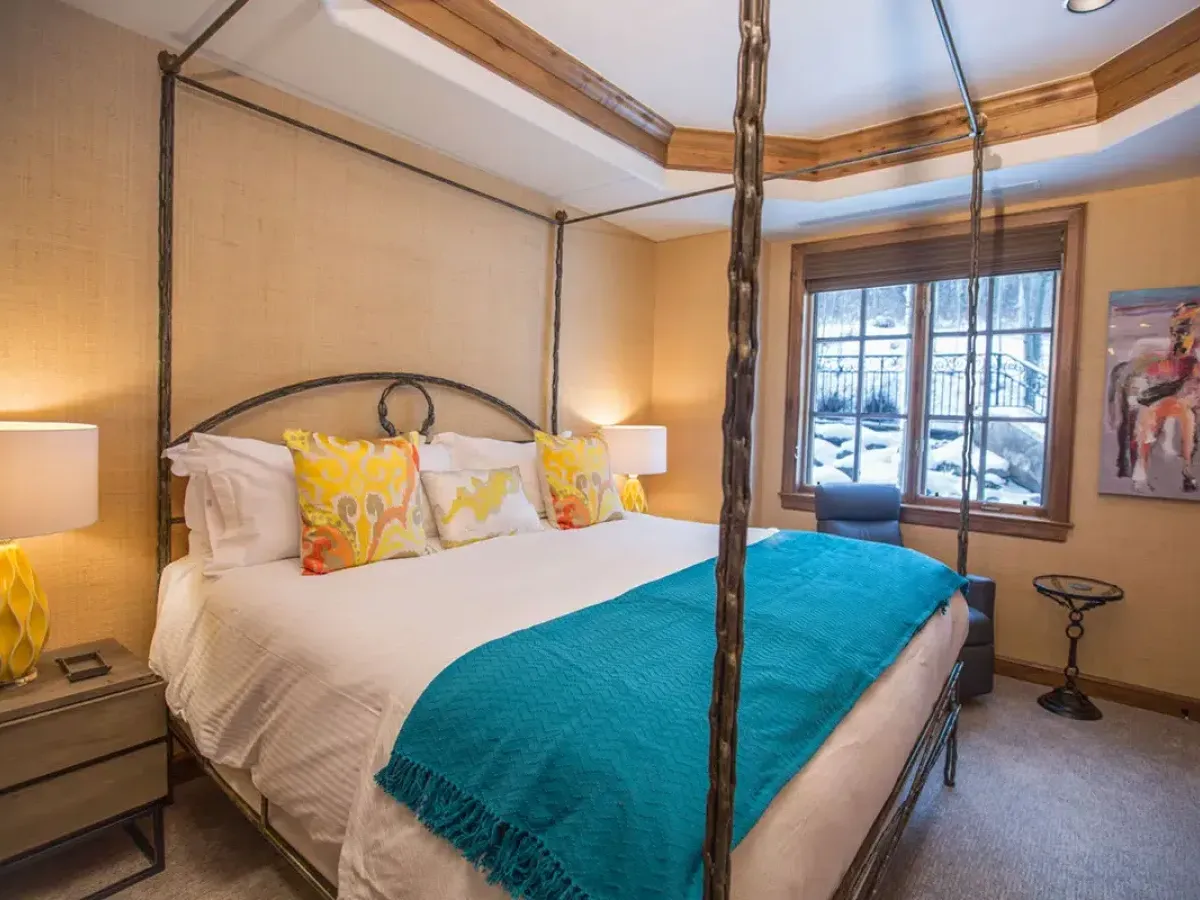 Some of the pampering features of the Chateau Beaver Creek include a daily complimentary breakfast spread provided in the ski-in/ski-out locker-room facility during ski season, which switches over to apres heavy snacks in the afternoon. The on-site spa provides a host of services and includes individual locker rooms for men and women with their own steam room, sauna, and hot tub that are open to all guests even if you are not enjoying a treatment. The state-of-the-art gym offers high-end equipment as well as a fitness and movement studio where guests can take complimentary yoga, Pilates and other popular fitness classes. Ski lockers include boot heaters in the well-equipped “skiers’ lounge,” there’s an indoor/outdoor pool that runs under an exterior wall, and a couple of outdoor hot tubs throughout the property.
