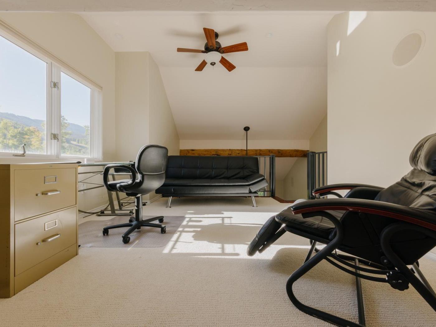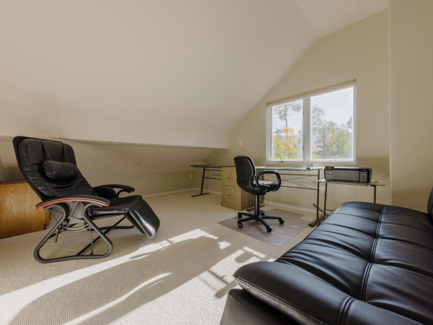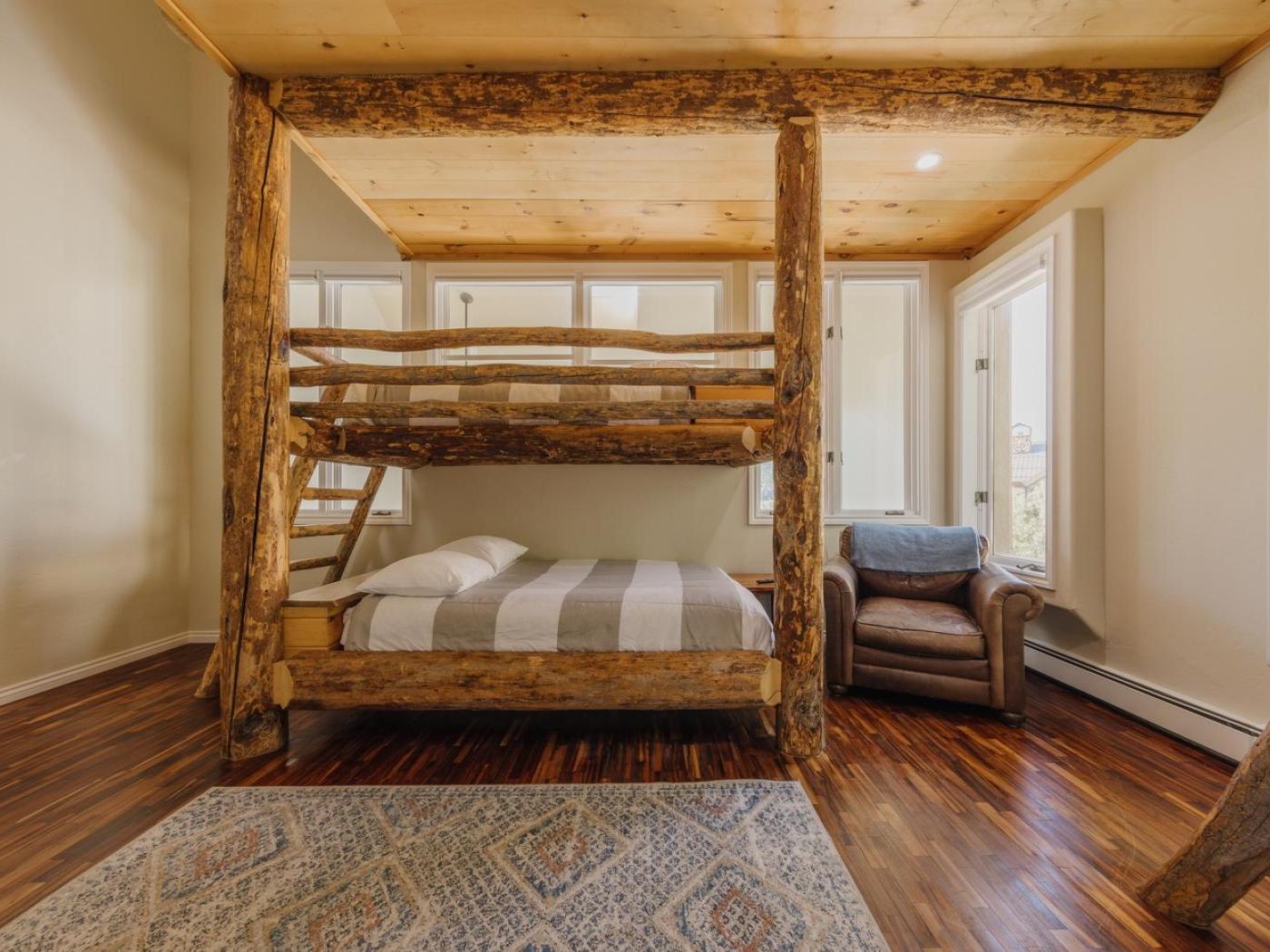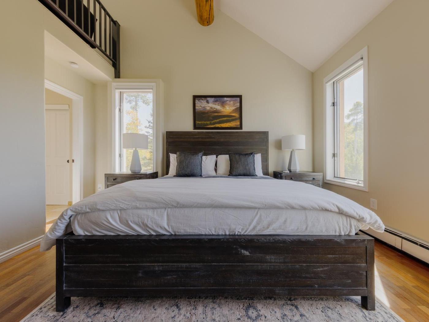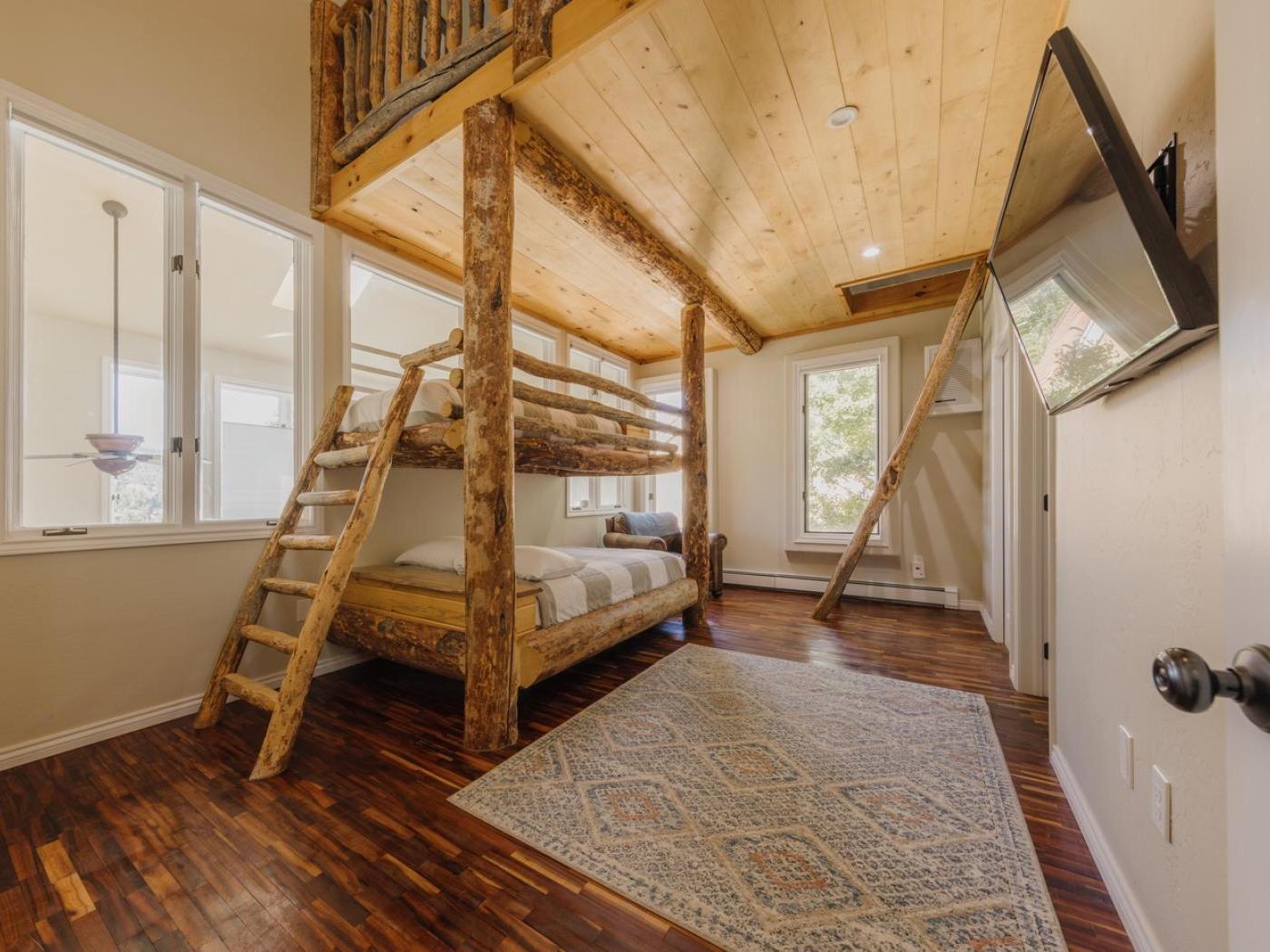 Located on the upper level, the primary suite is outfitted with a King bed, a unique loft with a sofa, desk and lounging chair, and a private bathroom featuring a soaking tub and steam shower. Two bedrooms enjoy private bathrooms, one offers a King bed while the other is equipped with a Twin over Full bunk plus a loft area with two blow-up mattresses and a television.