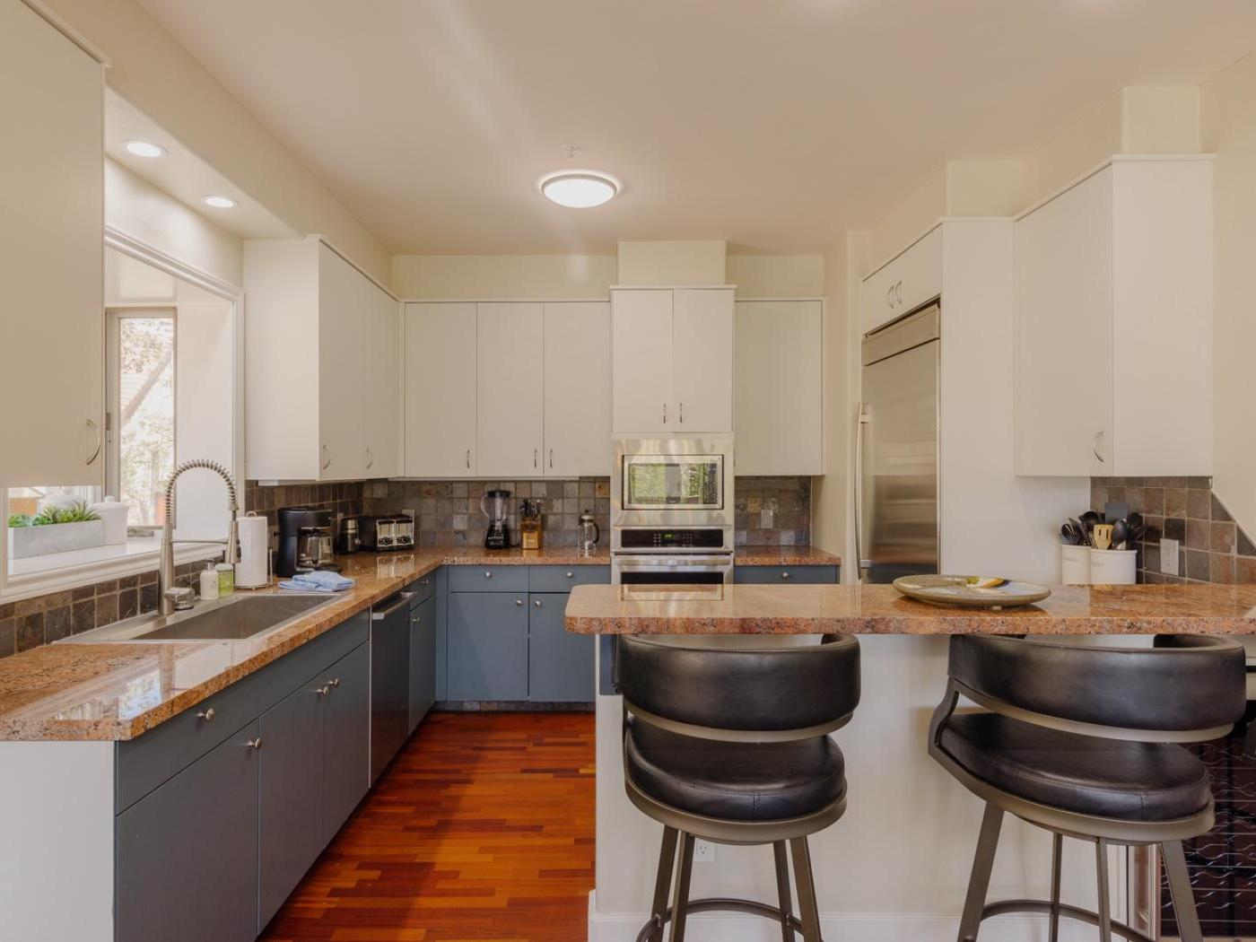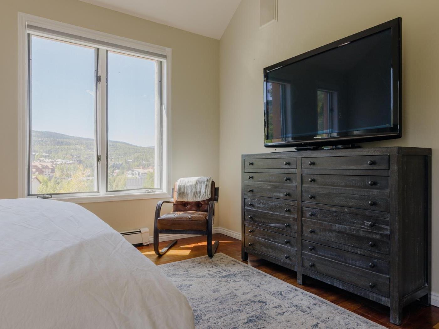 Featuring an open layout framed by walls of windows that allow the breathtaking mountain views to pour into the living space, the main level of this 3 bedroom vacation rental with 3 bathrooms provides the most inviting space for the entire group to relax and entertain. Set under vaulted ceilings, the living room offers comfortable furnishings centered on a wall-mounted television and fireplace. Overlooking the living room is a fully equipped kitchen with upscale appliances, a breakfast bar seating 3 guests, and granite countertops plus an adjacent dining area offering seating for 6 guests. Step out onto the deck to get a closer look at the views while grilling up a tasty meal or relaxing in the private hot tub.