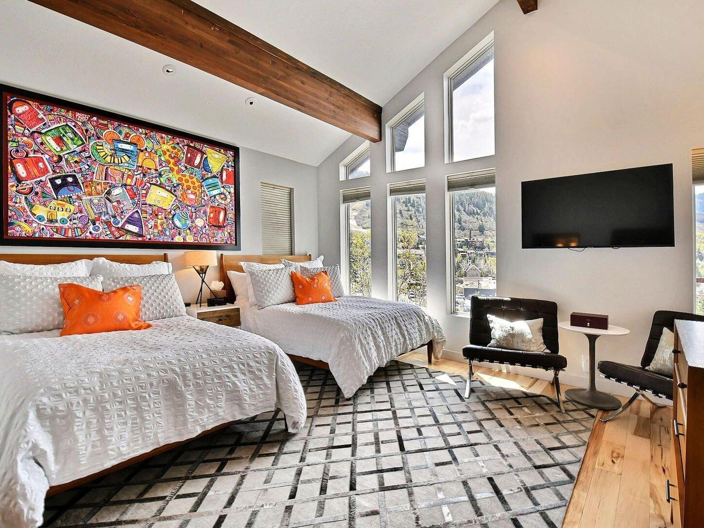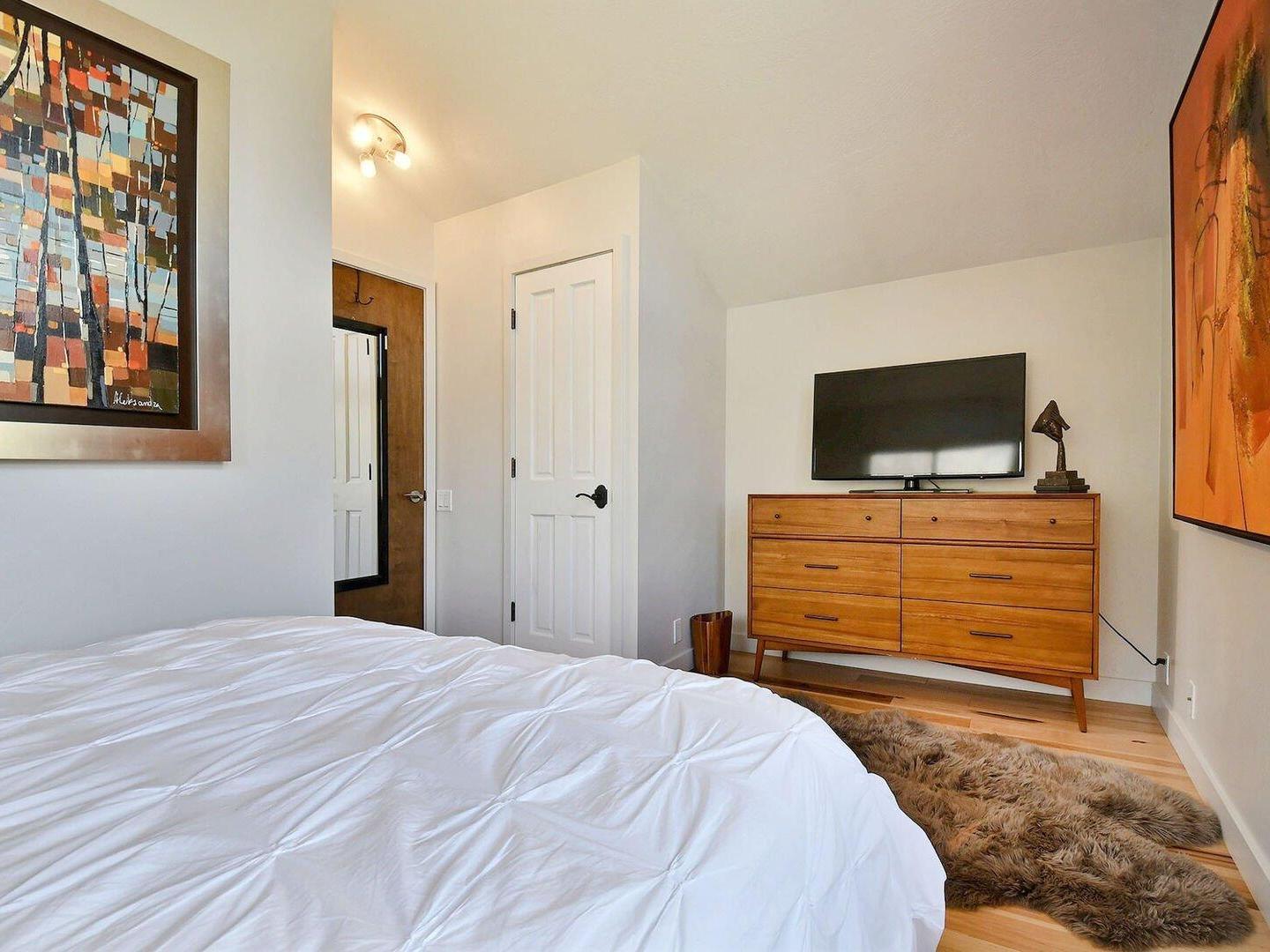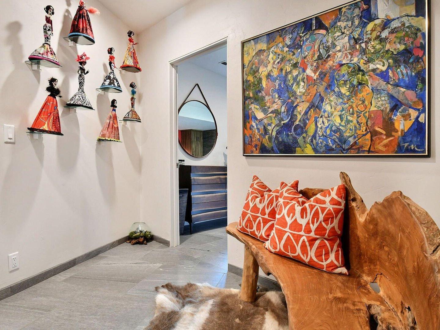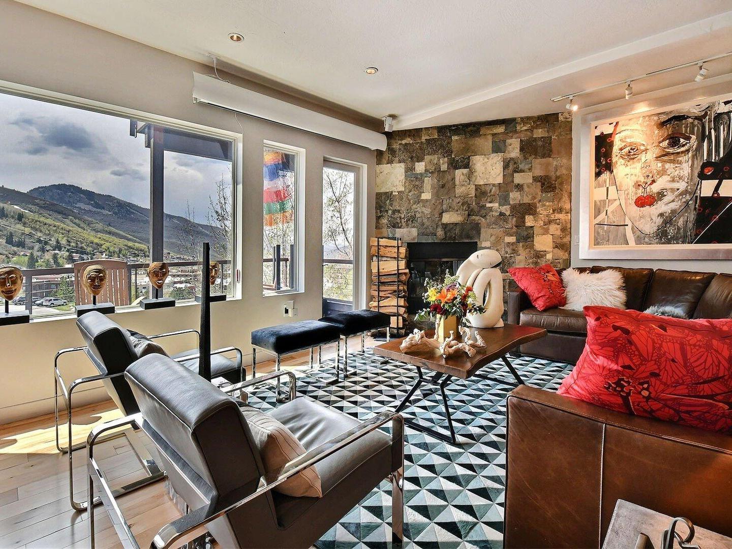 Throughout the home, unique art pieces add a touch of sophistication and character, giving the residence a distinct and stylish atmosphere. Designed with wellness in mind, the property includes a dedicated yoga room on the lower level and an impressive fitness room tucked into an alcove off the living area, complete with a dry sauna. Just outside, a private hot tub set against the mountainside offers the perfect spot to relax after a day of alpine adventure.