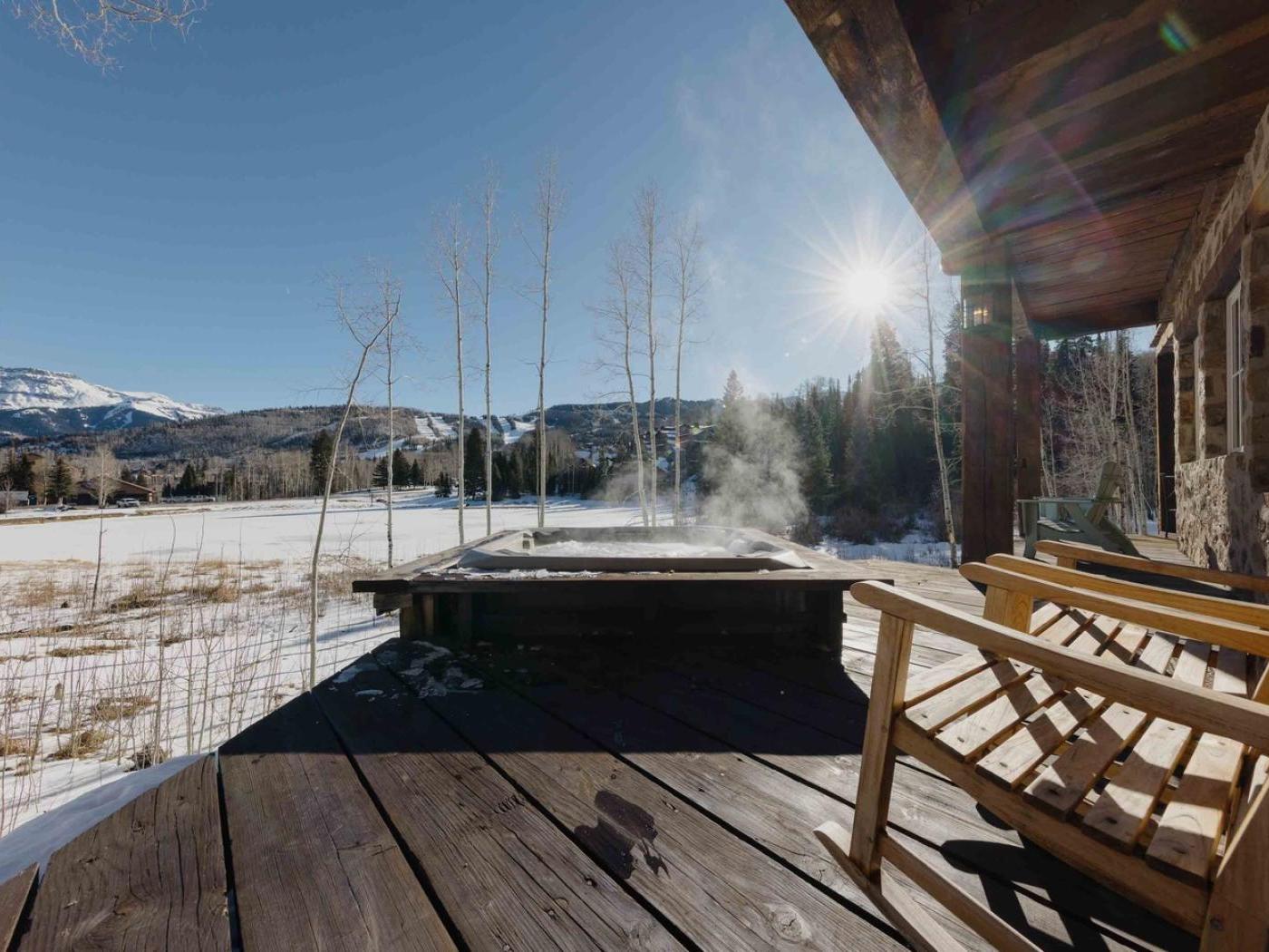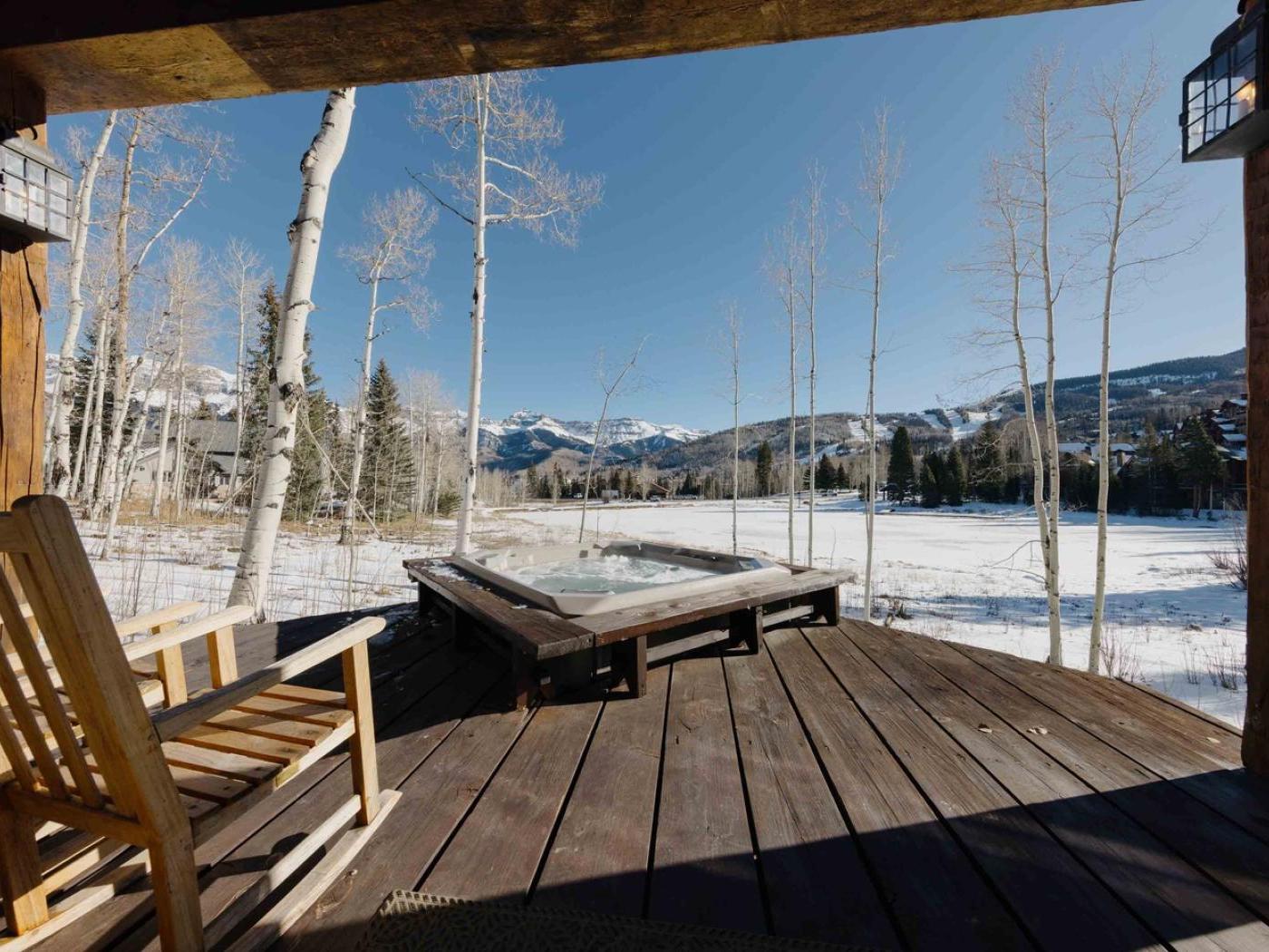 Additional highlights include a dedicated office/workspace, ski storage, and an on-call complimentary “Dial-a-Ride” service to take you around Mountain Village — including to lifts, restaurants, and shops.