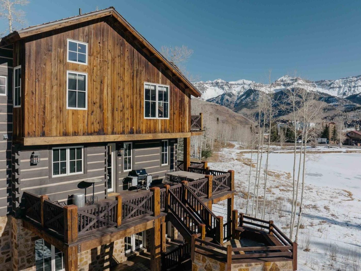 Discover the charm of Elk Lake Lodge, a rare standalone ski cabin in Mountain Village with direct ski access just steps away and the Market Gondola within walking distance. With 5 bedrooms, 5.5 bathrooms, and over 5,000 square feet of living space, this lodge comfortably accommodates up to 12 guests — perfect for multi-family getaways or groups seeking both luxury and rustic mountain character.