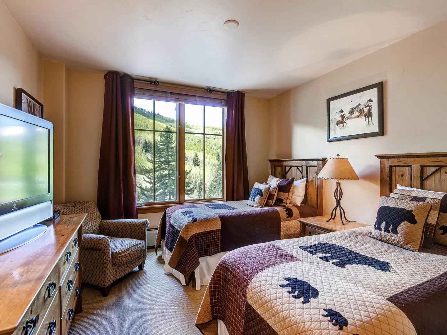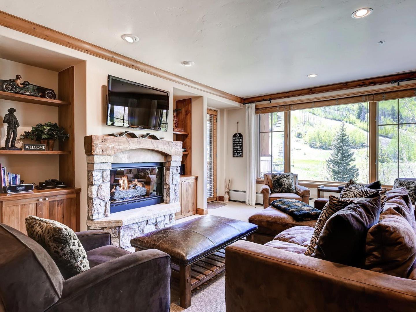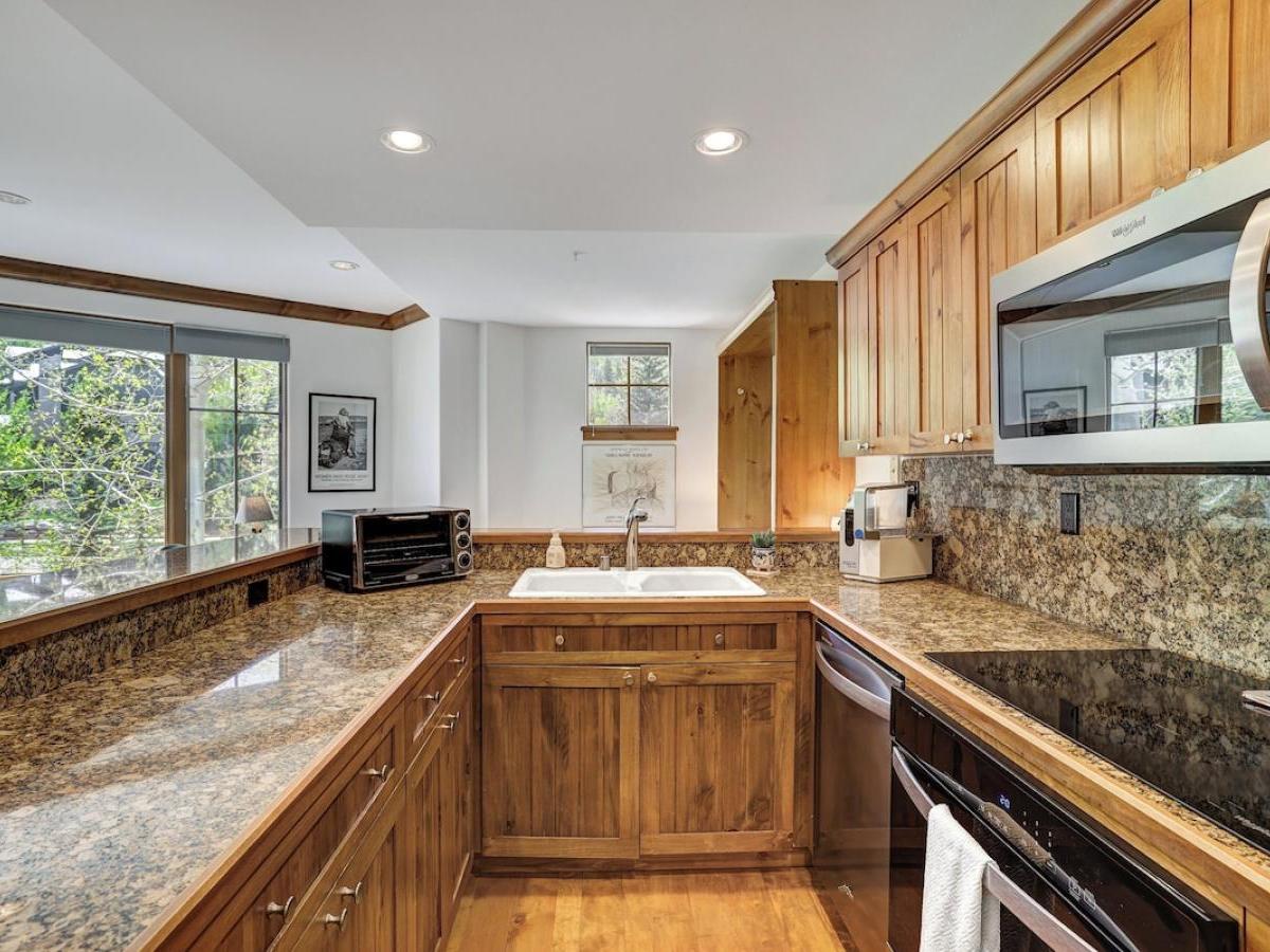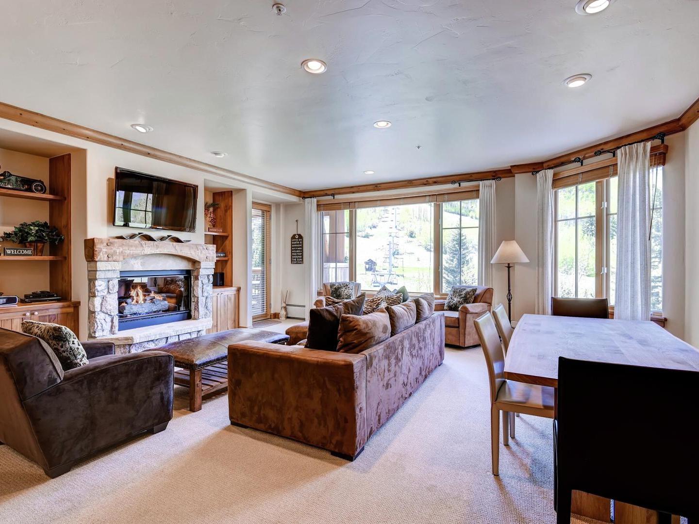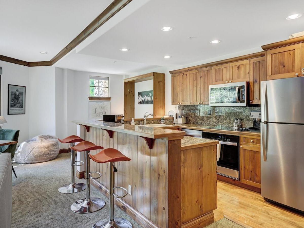 Rustic, yet refined decor in the lobby creates a wonderful space to congregate, with a cozy wood-burning fireplace and ample lush seating. Once inside your condo, you will find designer touches with high-end interiors-the perfect blend for a truly restful vacation. Each one is individually furnished in true alpine luxury, with a gas fireplace in the living room, and oversized kitchens boasting upscale appliances and gorgeous countertops. Bedrooms feature plush bedding, large closets and lovely views, while indulgent bathrooms boast large jetted tubs and lux fixtures. Step out onto the large balcony for some fresh mountain air and spectacular views of the surrounding alpine scenery.