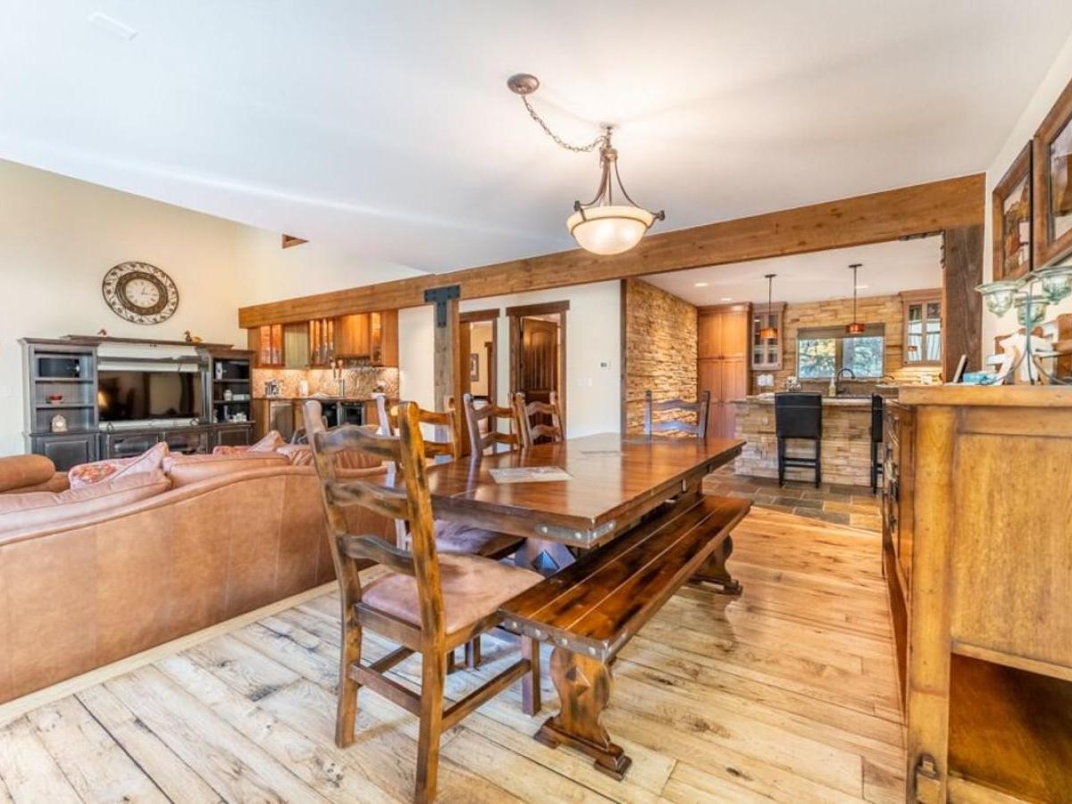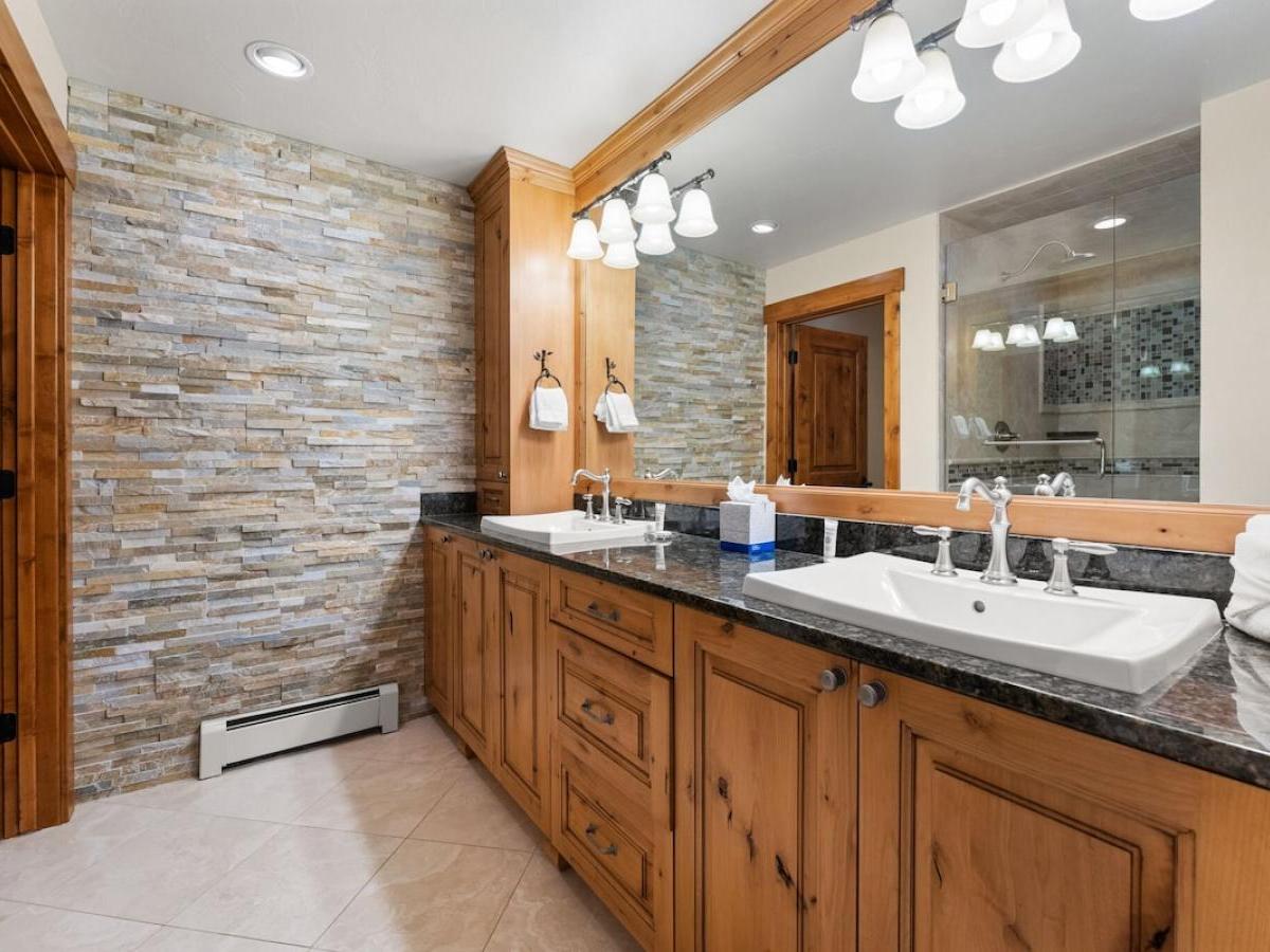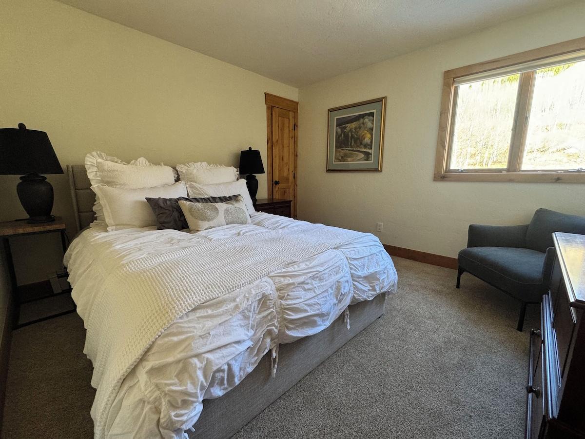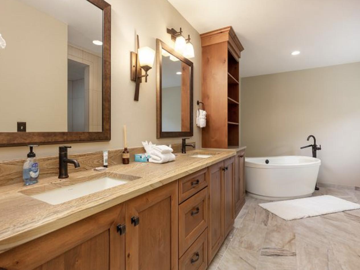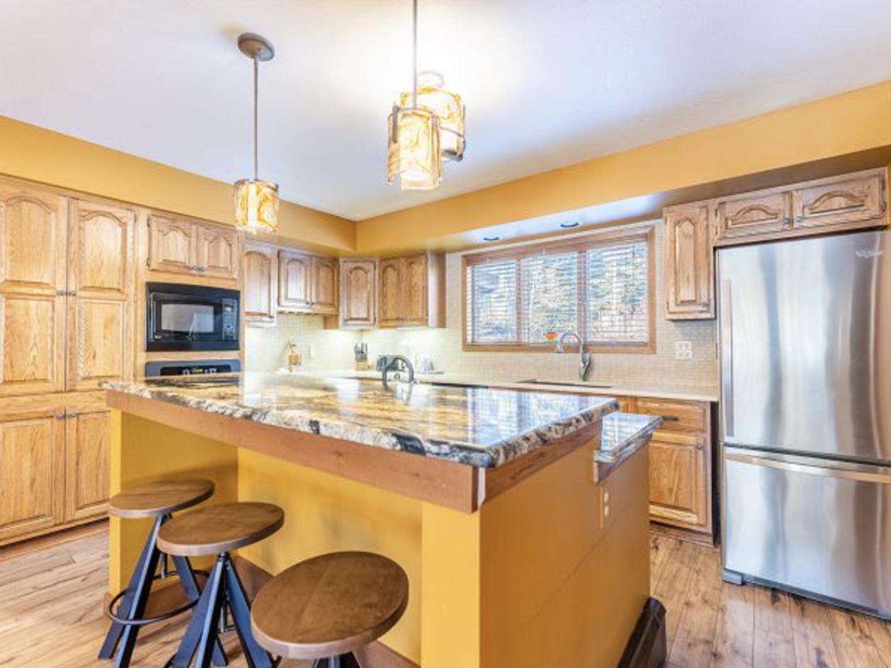 Living rooms are spacious and open, featuring comfortable sofas and chairs, massive floor-to-ceiling wood-burning fireplaces, and large flat screen televisions. Just outside the sliding glass door, a charming balcony showcases varying alpine views and offers seating to enjoy your morning cup of coffee or an apres ski beverage among nature. Each Enclave kitchen is fully equipped with all the culinary essentials and features a breakfast bar with assorted seating. In the neighboring dining areas, guests can gather around the tables large enough for your whole crew, and enjoy home cooked meals, take out or engage in a friendly board game. Guest bedrooms are all decorated with plush bedding and quality furnishings, designed to provide a good nights’ rest. There are three bathrooms in both the three and four bedroom townhomes, some feature a jetted tub in the master, while all offer quality fixtures and finishes. As an added perk, each lovely rental boasts a private hot tub and sauna located on the lower level, perfect for pampering yourself after playing in the powder, or exploring Keystone.