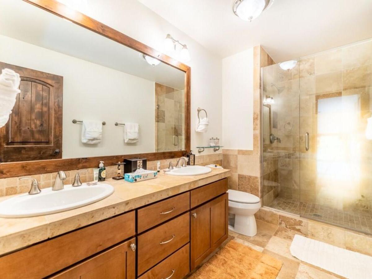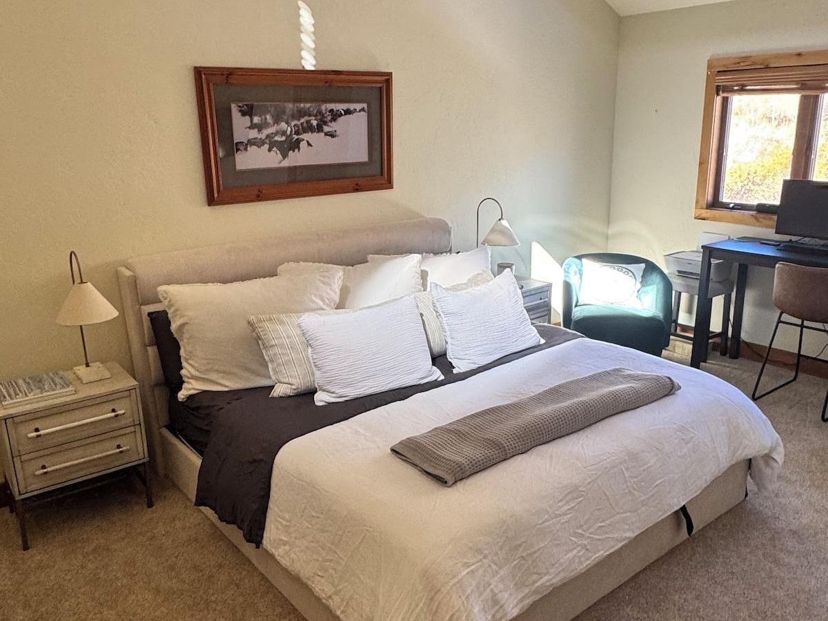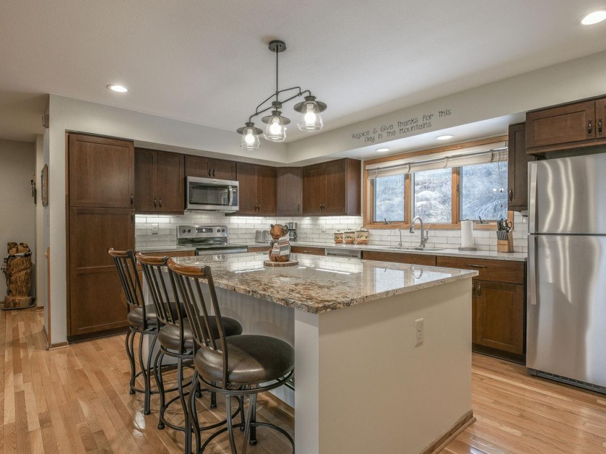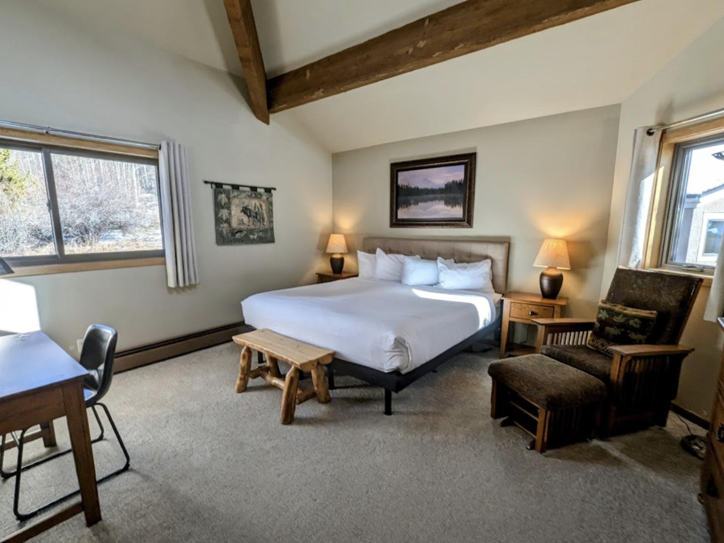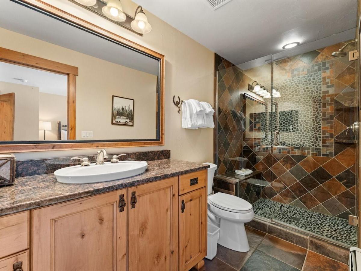 Living rooms are spacious and open, featuring comfortable sofas and chairs, massive floor-to-ceiling wood-burning fireplaces, and large flat screen televisions. Just outside the sliding glass door, a charming balcony showcases varying alpine views and offers seating to enjoy your morning cup of coffee or an apres ski beverage among nature. Each Enclave kitchen is fully equipped with all the culinary essentials and features a breakfast bar with assorted seating. In the neighboring dining areas, guests can gather around the tables large enough for your whole crew, and enjoy home cooked meals, take out or engage in a friendly board game. Guest bedrooms are all decorated with plush bedding and quality furnishings, designed to provide a good nights’ rest. There are three bathrooms in both the three and four bedroom townhomes, some feature a jetted tub in the master, while all offer quality fixtures and finishes. As an added perk, each lovely rental boasts a private hot tub and sauna located on the lower level, perfect for pampering yourself after playing in the powder, or exploring Keystone.