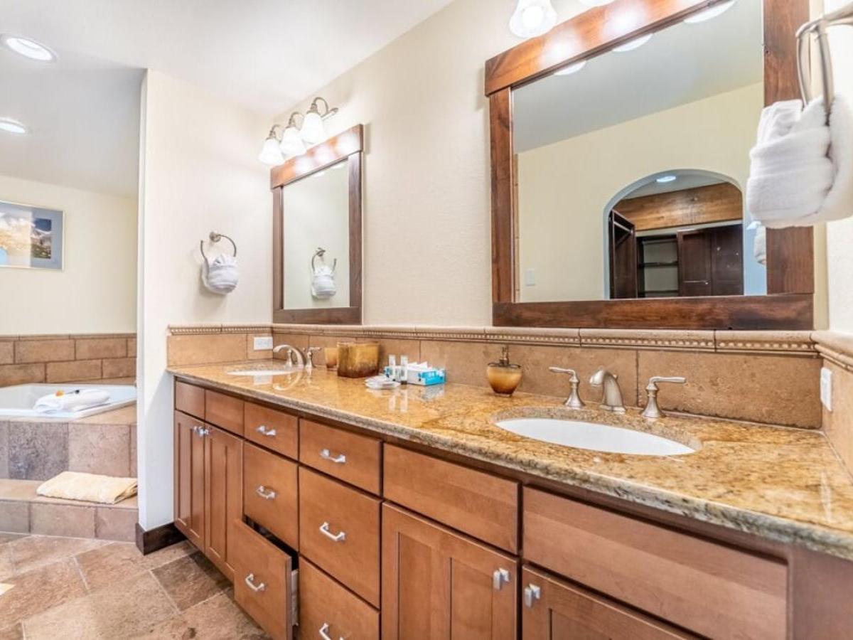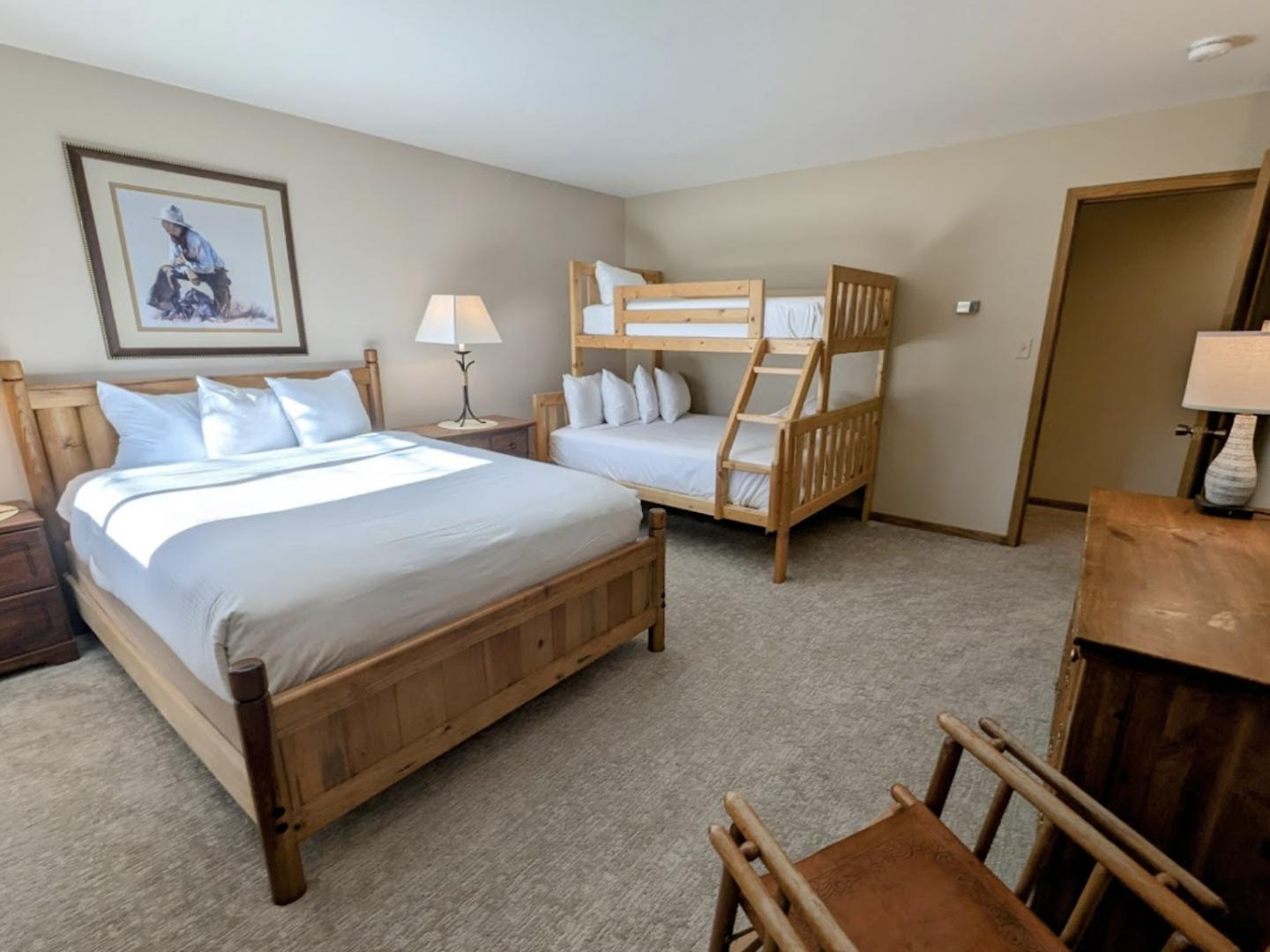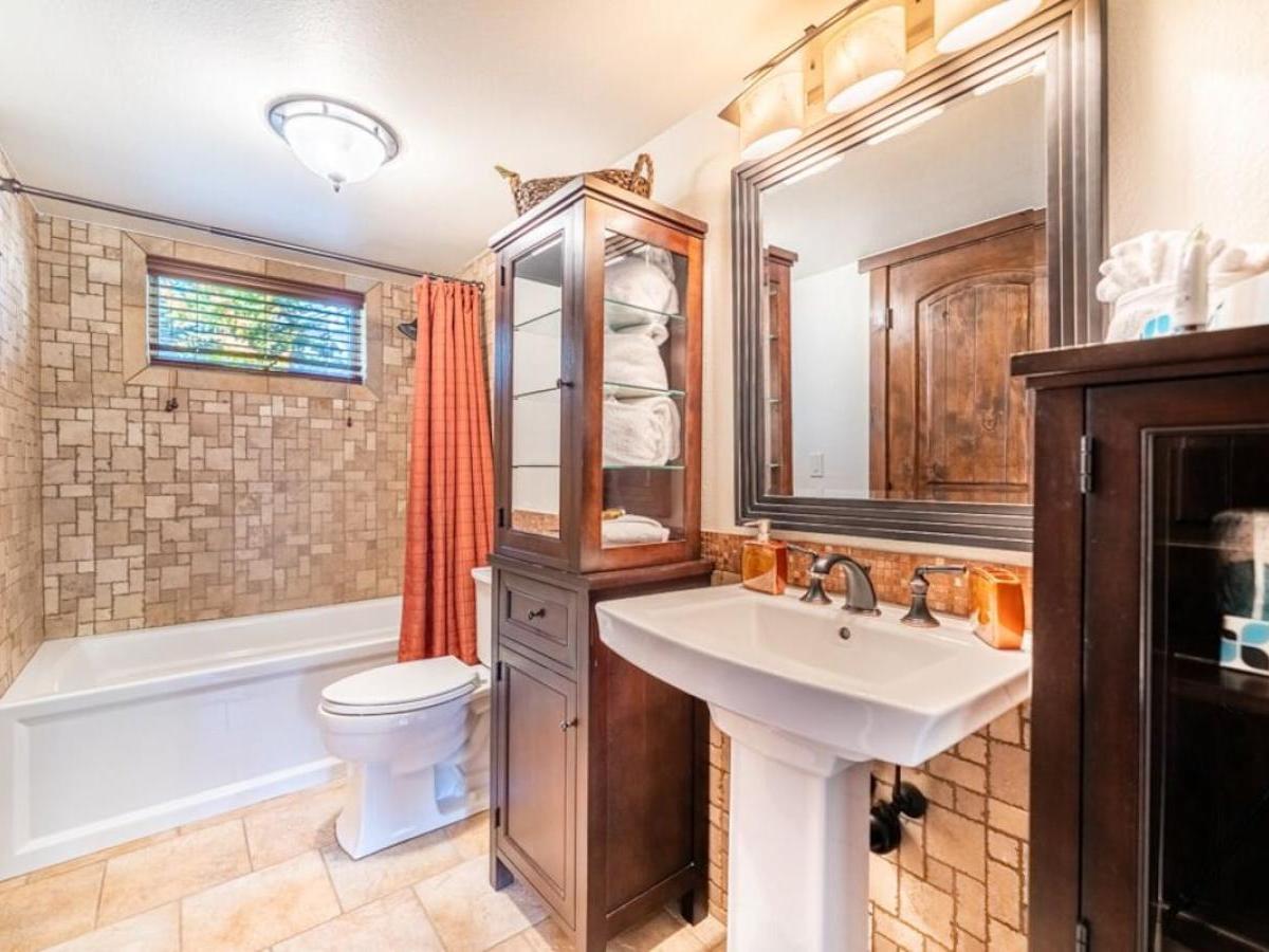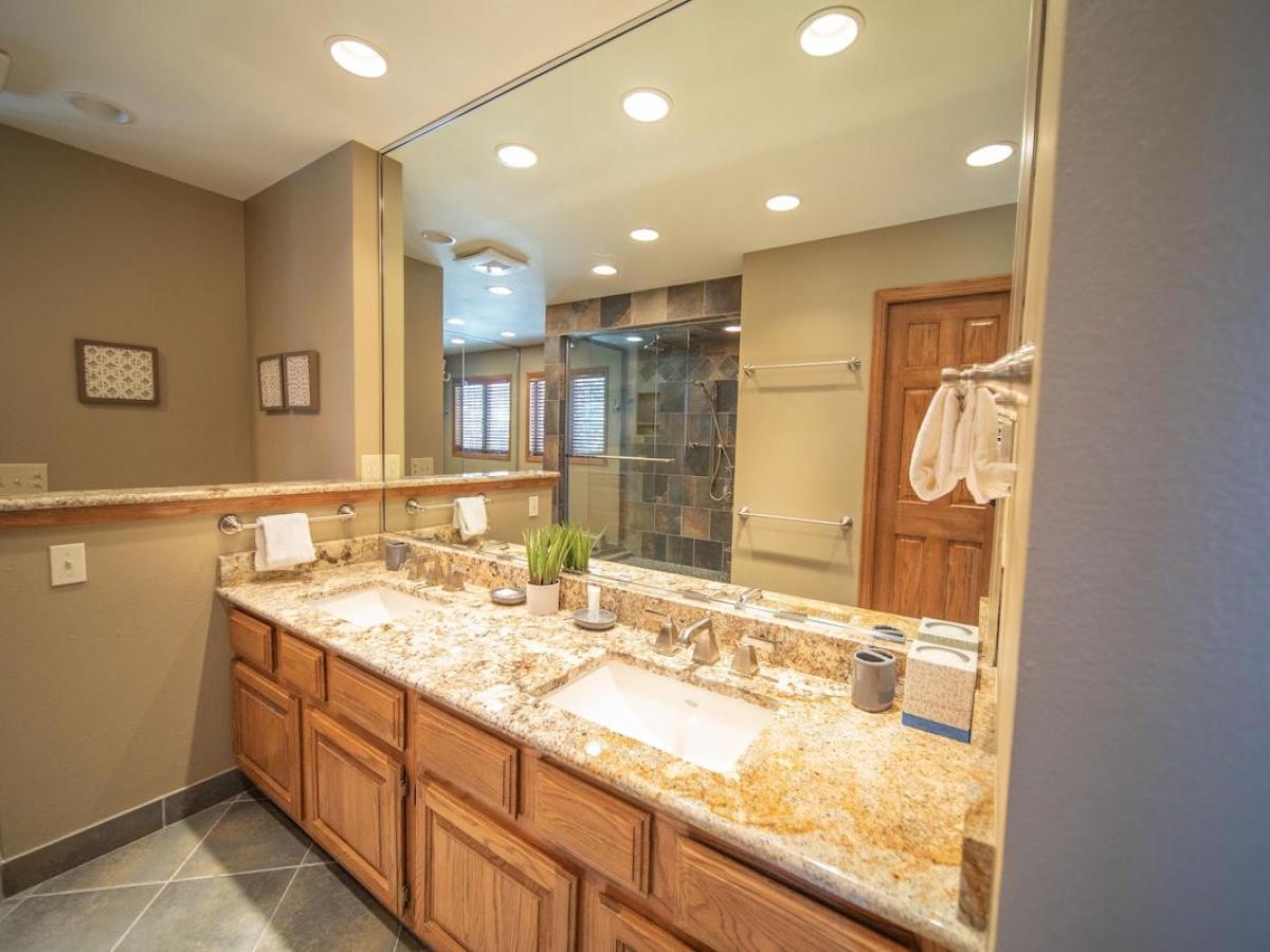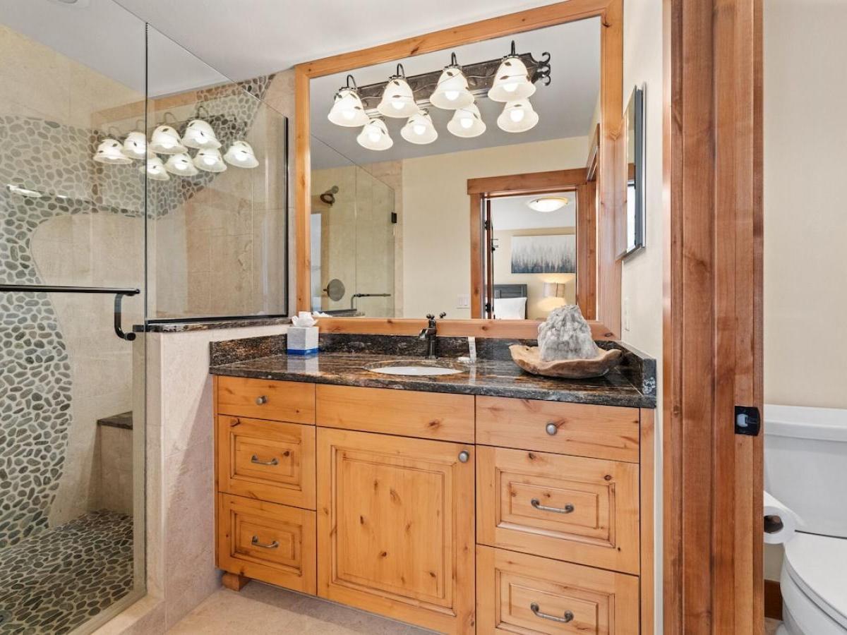 Living rooms are spacious and open, featuring comfortable sofas and chairs, massive floor-to-ceiling wood-burning fireplaces, and large flat screen televisions. Just outside the sliding glass door, a charming balcony showcases varying alpine views and offers seating to enjoy your morning cup of coffee or an apres ski beverage among nature. Each Enclave kitchen is fully equipped with all the culinary essentials and features a breakfast bar with assorted seating. In the neighboring dining areas, guests can gather around the tables large enough for your whole crew, and enjoy home cooked meals, take out or engage in a friendly board game. Guest bedrooms are all decorated with plush bedding and quality furnishings, designed to provide a good nights’ rest. There are three bathrooms in both the three and four bedroom townhomes, some feature a jetted tub in the master, while all offer quality fixtures and finishes. As an added perk, each lovely rental boasts a private hot tub and sauna located on the lower level, perfect for pampering yourself after playing in the powder, or exploring Keystone.
