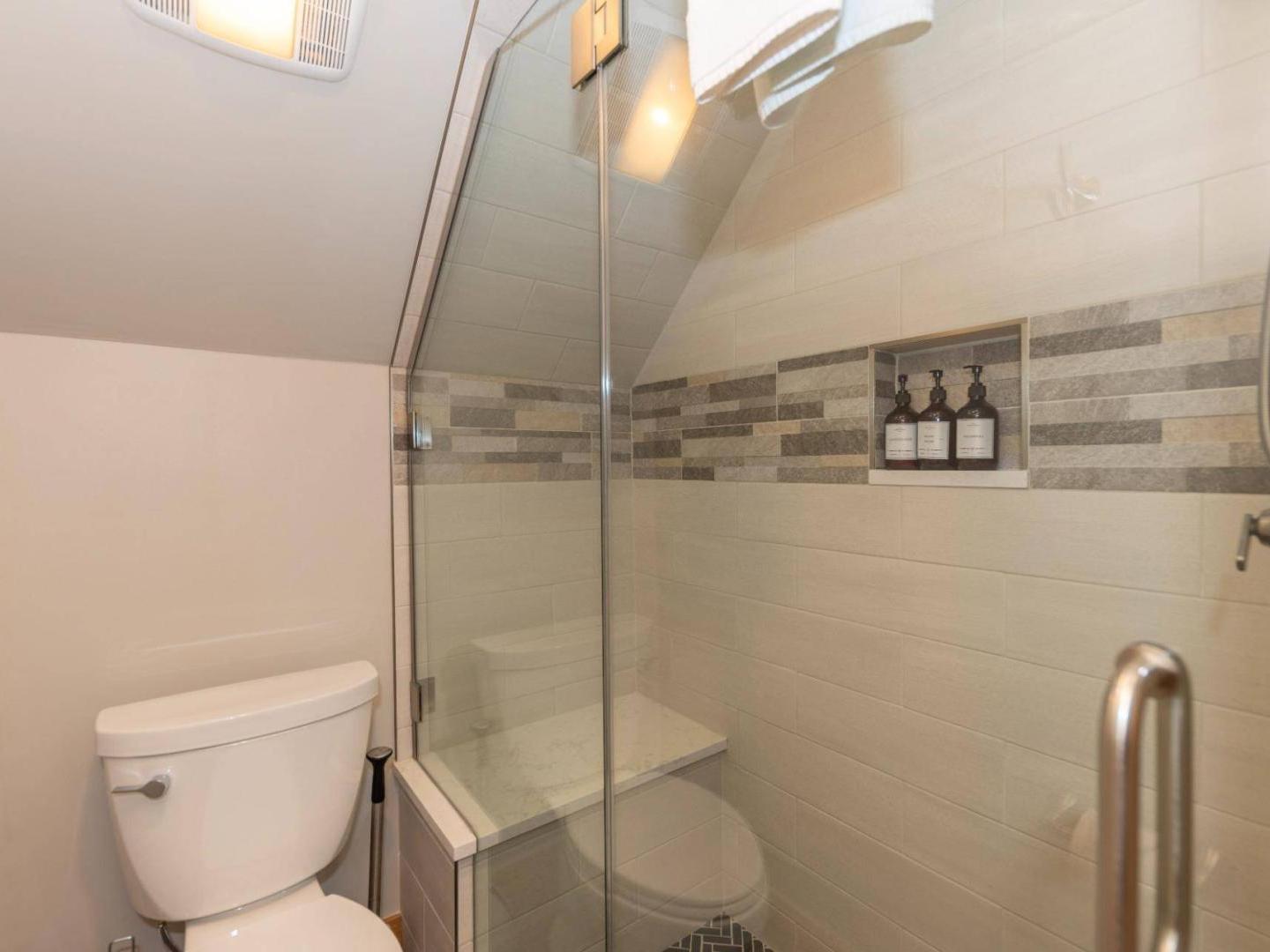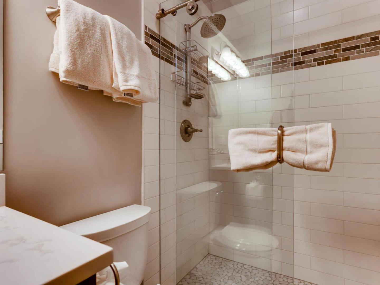 Primary Bedroom 1 (Upper Level): King bed, flat-screen TV, private bathroom with steam shower