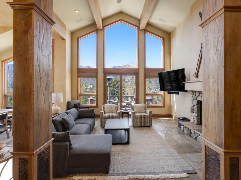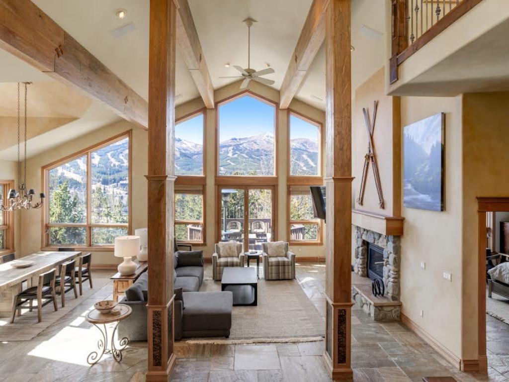 Captivating views of the Breckenridge ski slopes spill into the expansive living space of Gold Flake Chalet, a 5 bedroom luxury vacation home with 3.5 bathrooms perched just above the action on Main Street and minutes from the lifts accessing the Breckenridge Ski Resort. Ideally appointed for multiple families or large groups with couples, your retreat in the mountains offers a variety of bedding to comfortably accommodate up to 12 guests who will enjoy the home's preferred vacation amenities designed for the most entertaining Breckenridge vacation experience.