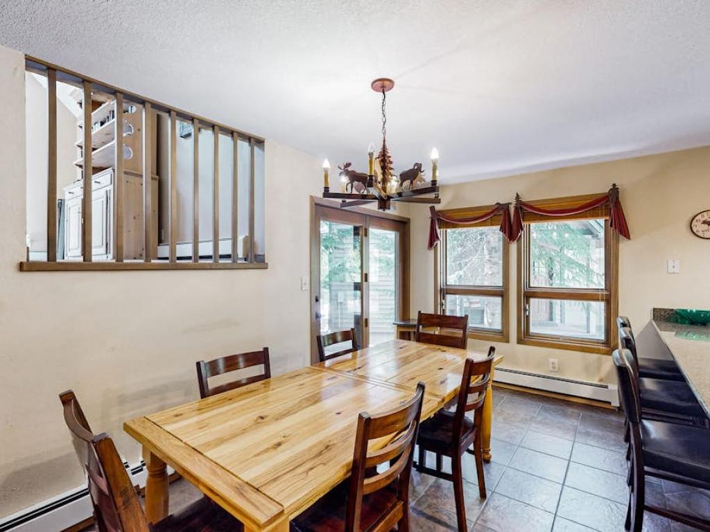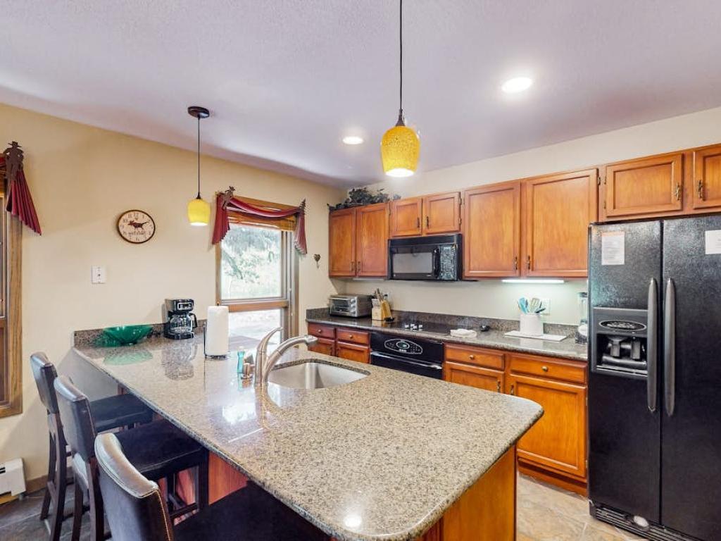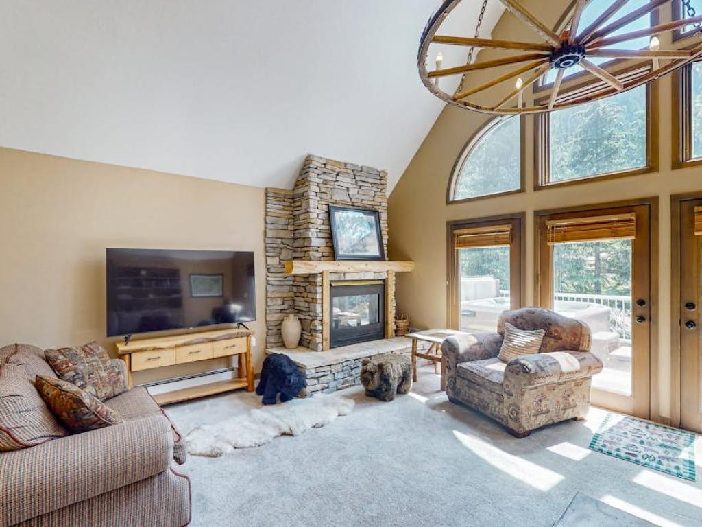 Conveniently situated within a short walk of the free bus line, Gore Valley Getaway is close to the Vail Ski Resort, epic hiking trails, and all of the action in Vail Village. Take in mountain views from your private hot tub in this 4 bedroom vacation hoe with 3.5 bathrooms, located just steps from Gore Creek. With over 2,000 square feet of living space, it’s easy to unwind into vacation mode in the comfy common areas and serene bedrooms. Highlights include a cozy gas fireplace in the living room and a primary suite with its own private balcony in the trees. Professional-grade Viking appliances beckon in the chef’s kitchen.