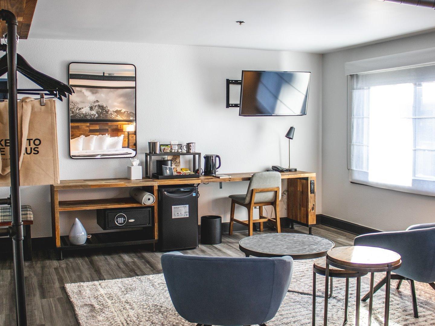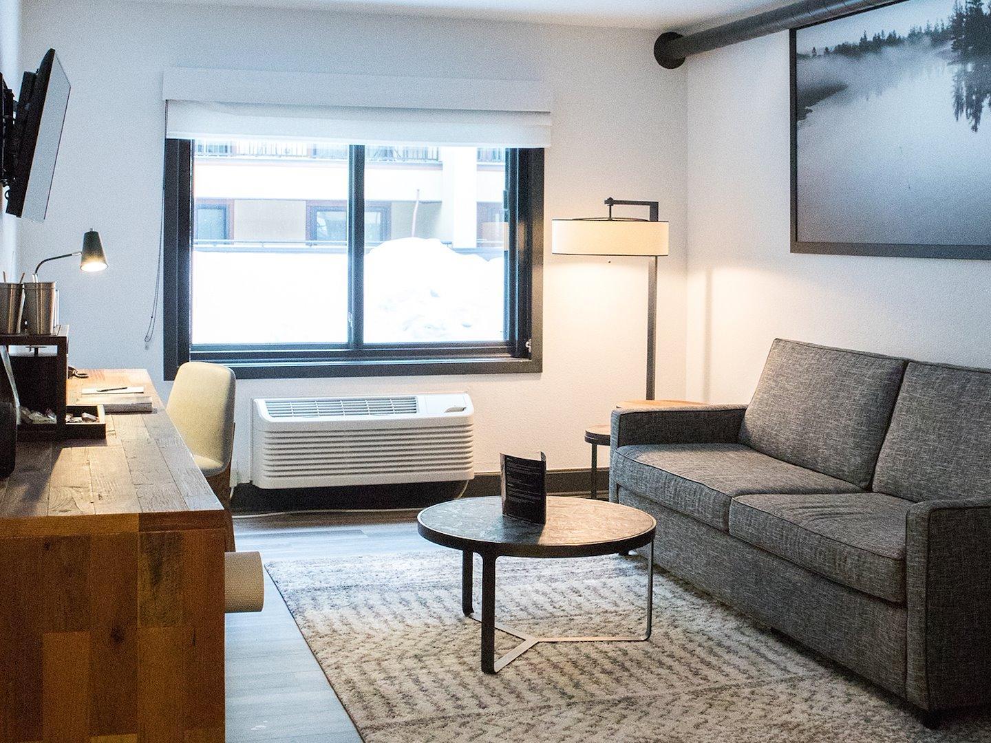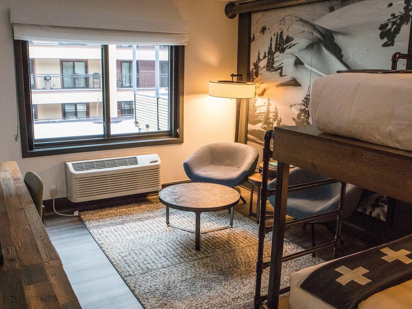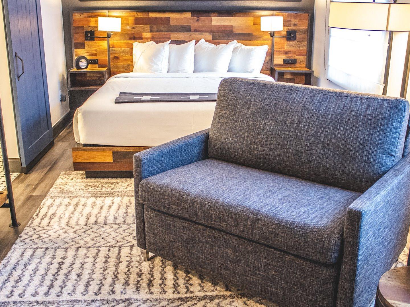 The Powder Hound | King Room: A king bed with a comfy lounge and twin sleeper.