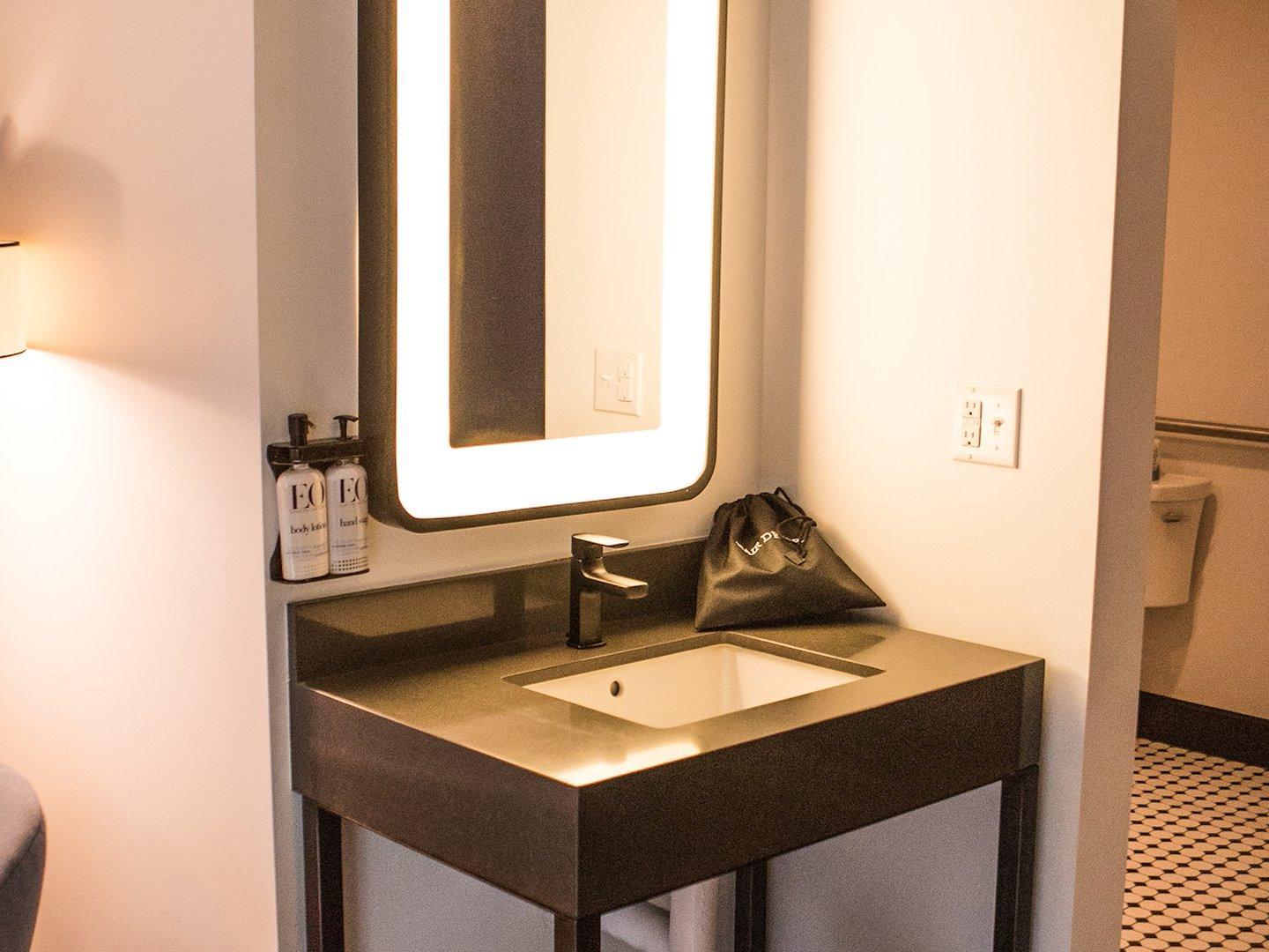 - The finer details: This is an ADA accessible guestroom. Coffee service featuring freshly ground Unravel coffee, an accessible shower, bathroom stocked with EO Essential Oils Bath Amenities, tech desk, electronic room safe, mini-fridge, lounge chair & DirecTV.