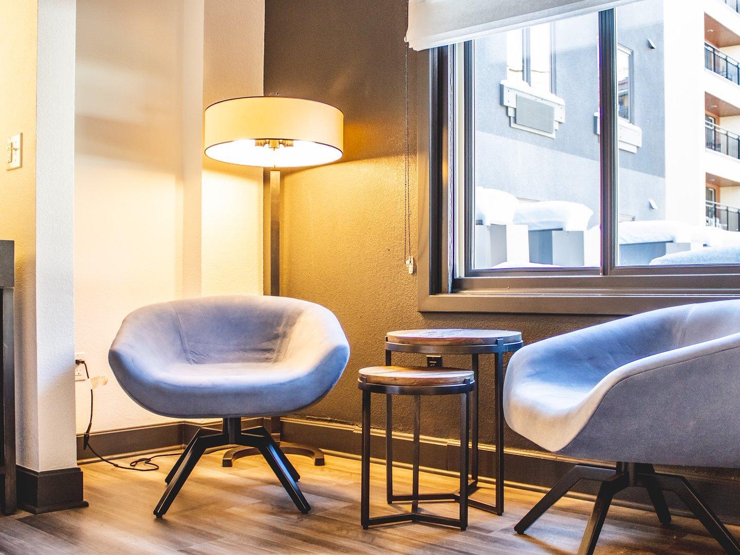 - The finer details: Coffee service featuring freshly ground Unravel coffee, bathroom stocked with EO Essential Oils Bath Amenities, mini-fridge & DirecTV.