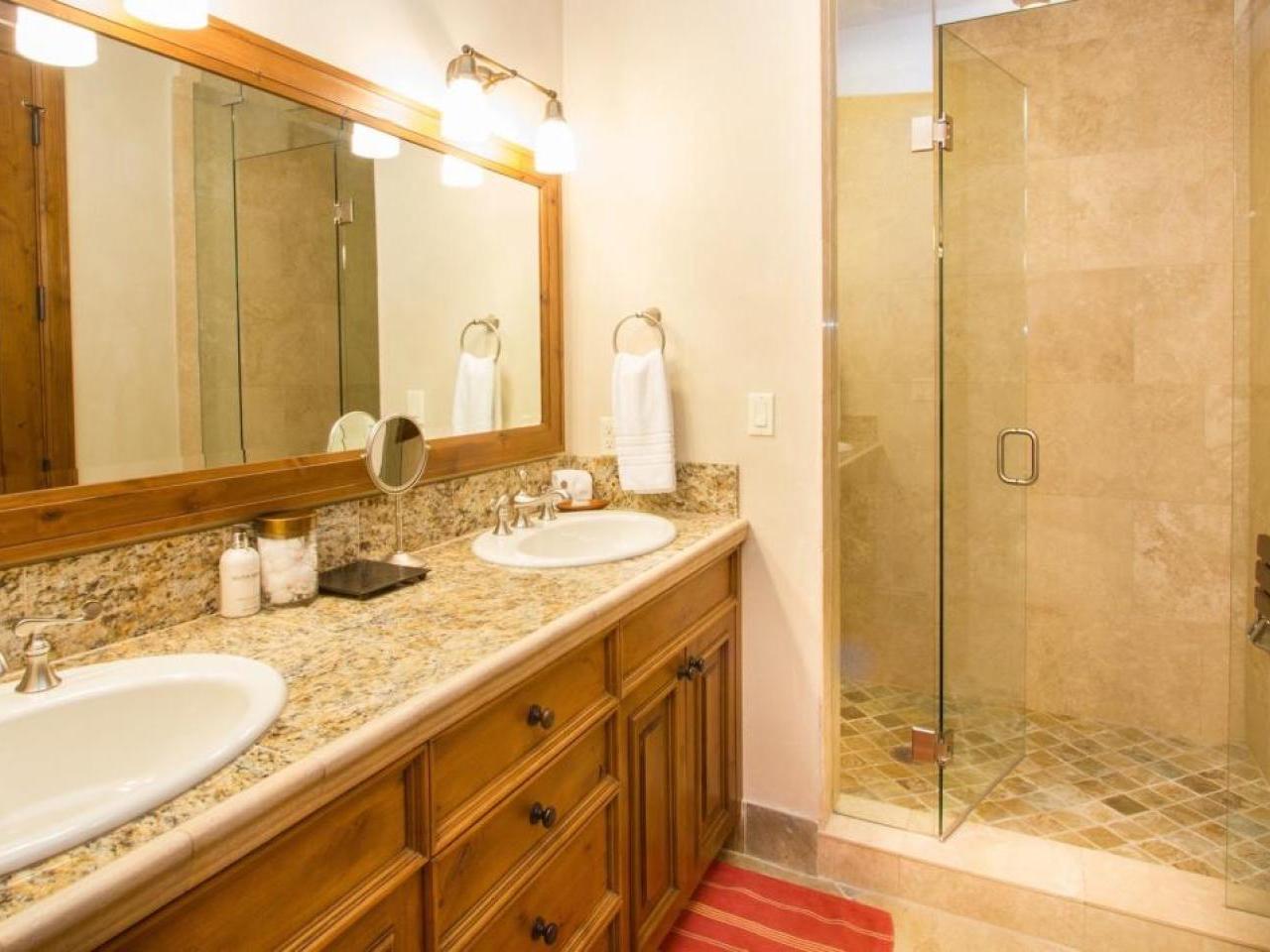 Four bedrooms are tastefully appointed and furnished to comfortably accommodate up to 10 guests. Outfitted with a King bed and private bathroom with a dual-sink vanity, soaking tub, and walk-in shower, the primary suite provides direct access to the hot tub on the deck. Two guest bedrooms are equipped with Queen beds, the third offers two Queen beds, and all include private bathrooms.