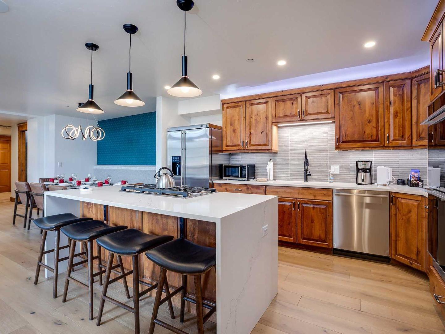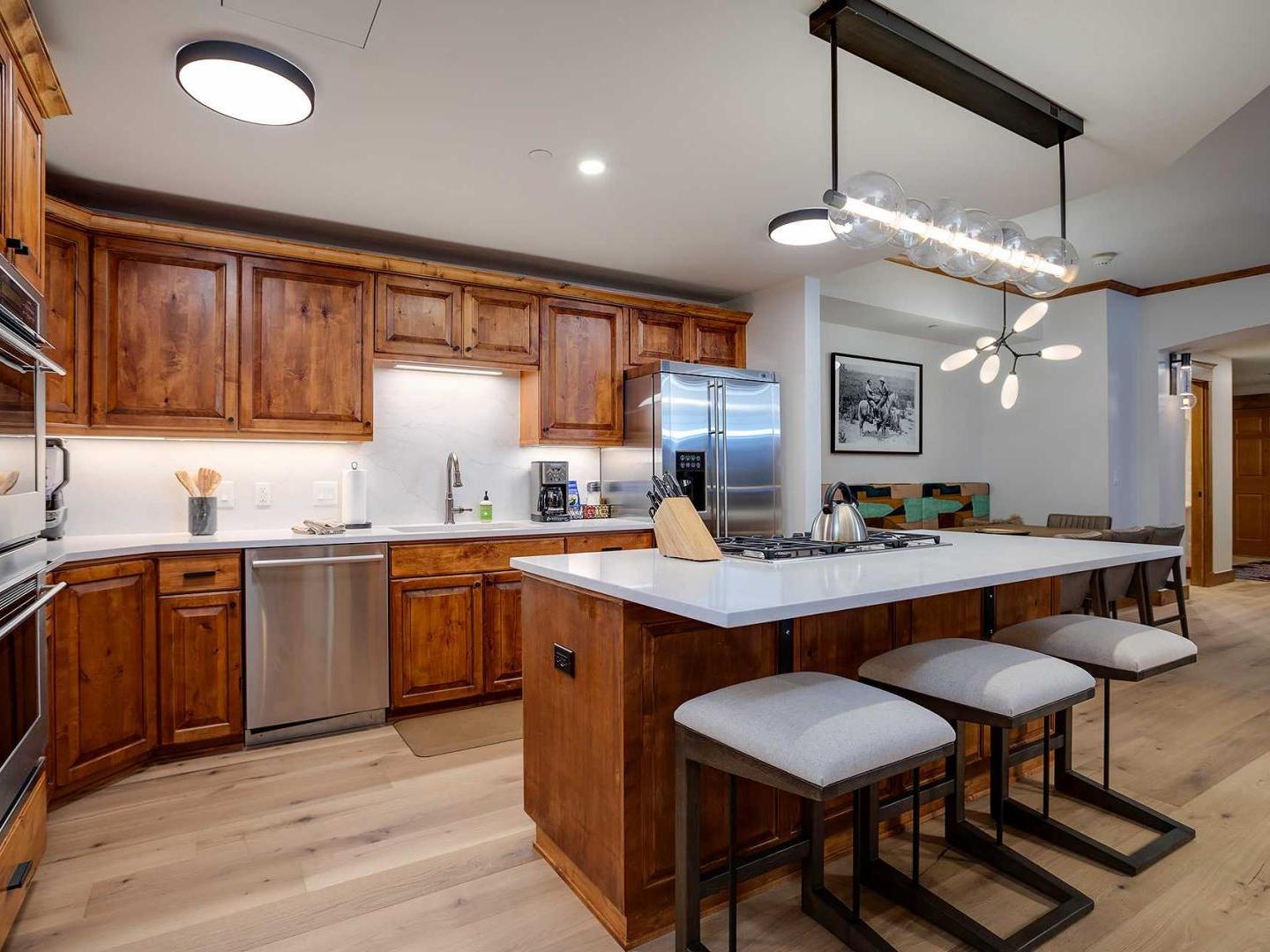 Ranging in size from two to four bedrooms, the condominiums at the Highmark Steamboat Springs are elegantly appointed to please the most discriminating tastes. Rich finishes, quality appointments and designer furnishings fill the spacious vacation rentals which span in size from 1,600 to 2,400 square feet. Centered on a stone fireplace, the living room features comfortable furnishings and access to a private balcony where breathtaking views can be enjoyed. An open layout features a gourmet kitchen with granite countertops and upscale appliances with adjacent dining area. High quality bedding with luxurious appointments are offered in the spacious bedrooms with private bathrooms in the master suites that feature jetted tubs and stall showers.