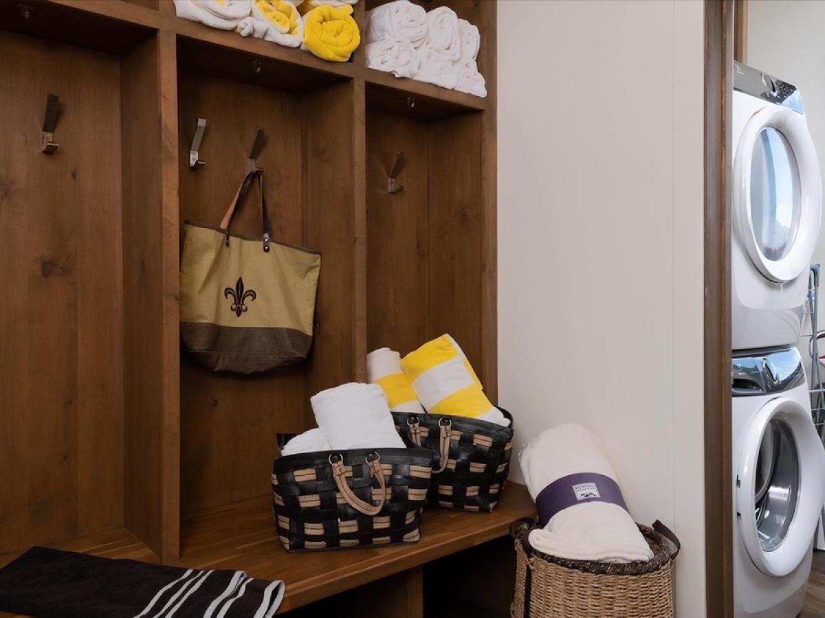 Step down to the cozy family room on the lower level outfitted with a comfortable sofa, wall-mounted television, desk area and access to the back patio. Additional amenities include a laundry room, mudroom with plenty of gear storage, one car garage and parking for 1-2 extra vehicles in the driveway. Complimentary shuttle service is provided mid-November through mid-April, using the convenient shuttle app to schedule pickups.