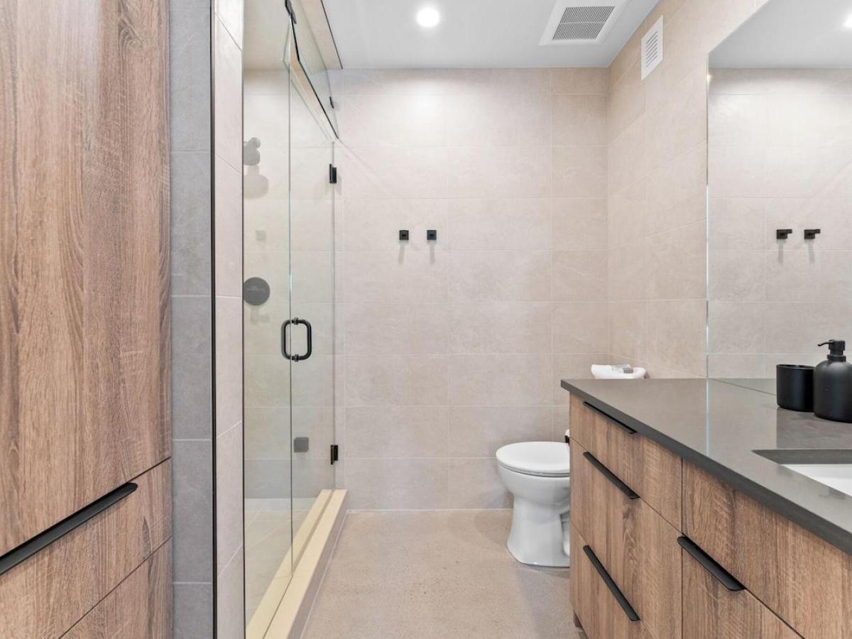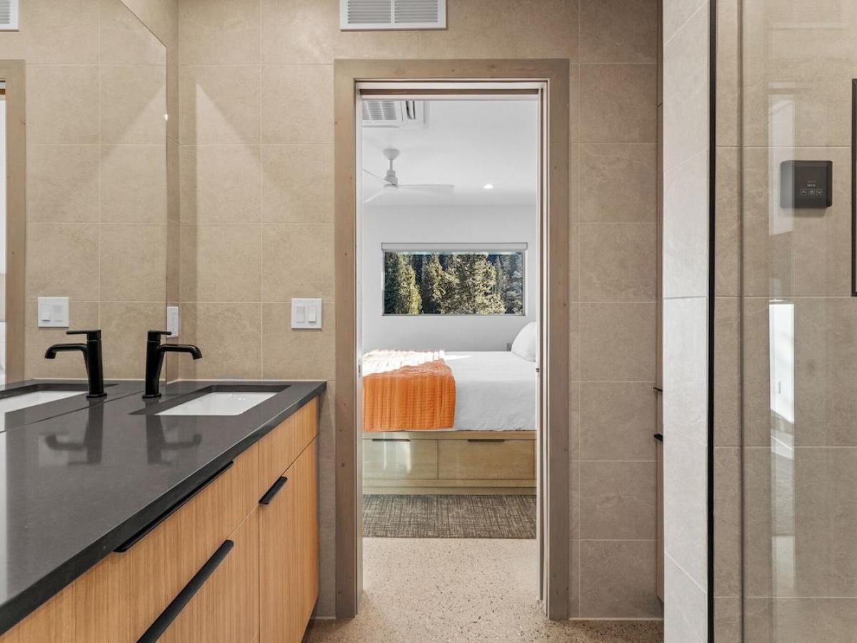 On the first floor, you will find one of the bedrooms featuring a queen-size bed, flat-screen TV, and outdoor access to easily reach the hot tub. Next to the queen bedroom is the guest bathroom with a walk-in shower. Three bedrooms are located on the second floor, including the primary, furnished with a king-size bed and including a private bathroom with a walk-in steam shower and gorgeous views. Down the hall is a second primary bedroom, which features a king-size bed, en-suite bathroom with a combination shower and tub, and balcony access. Neighboring this room is a guest bedroom equipped with two twin-over-twin bunk beds and a private balcony.