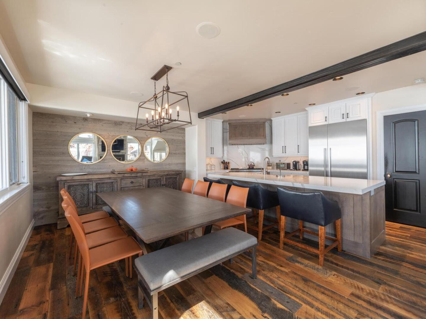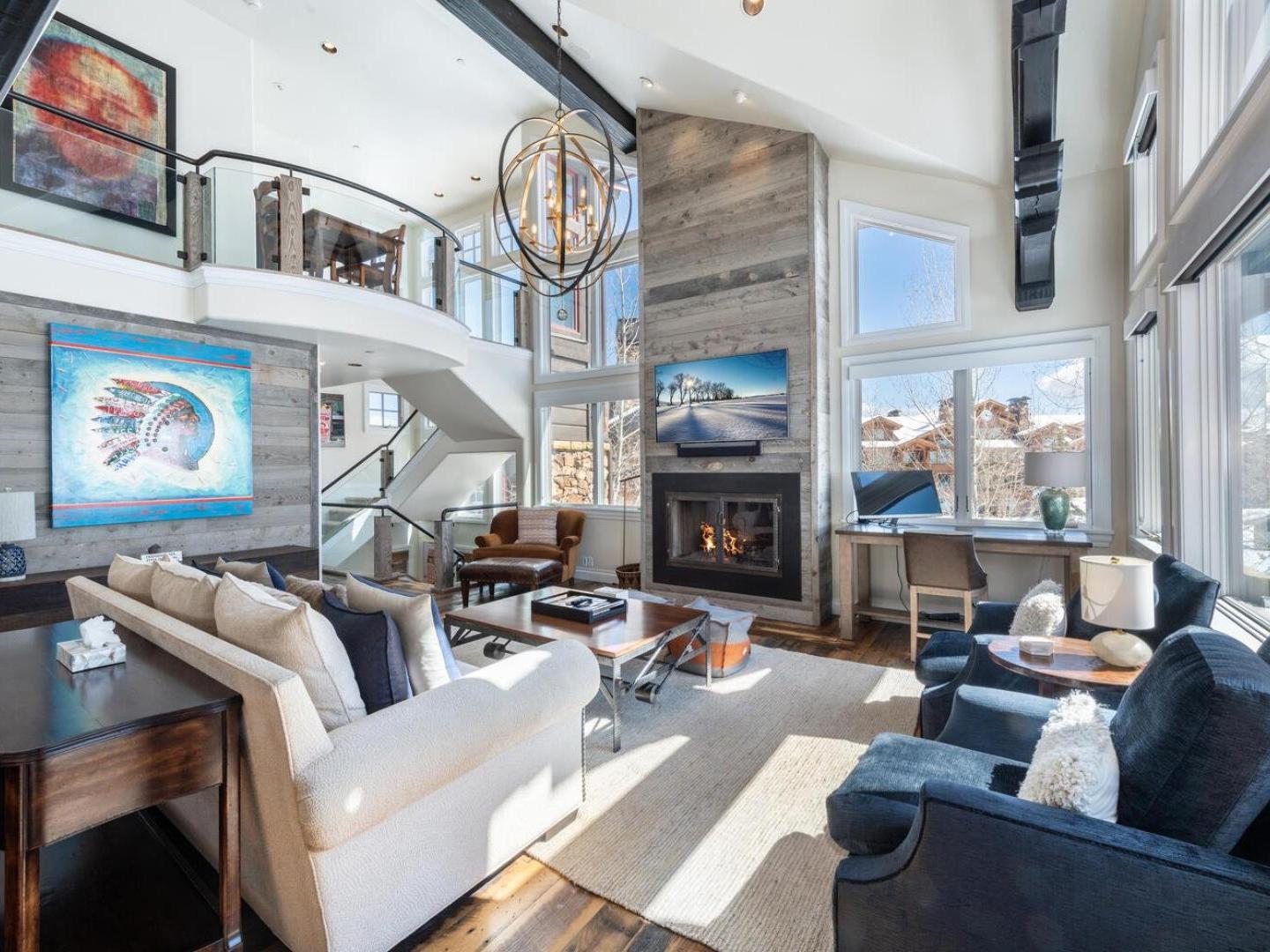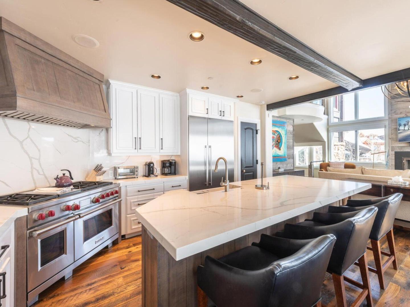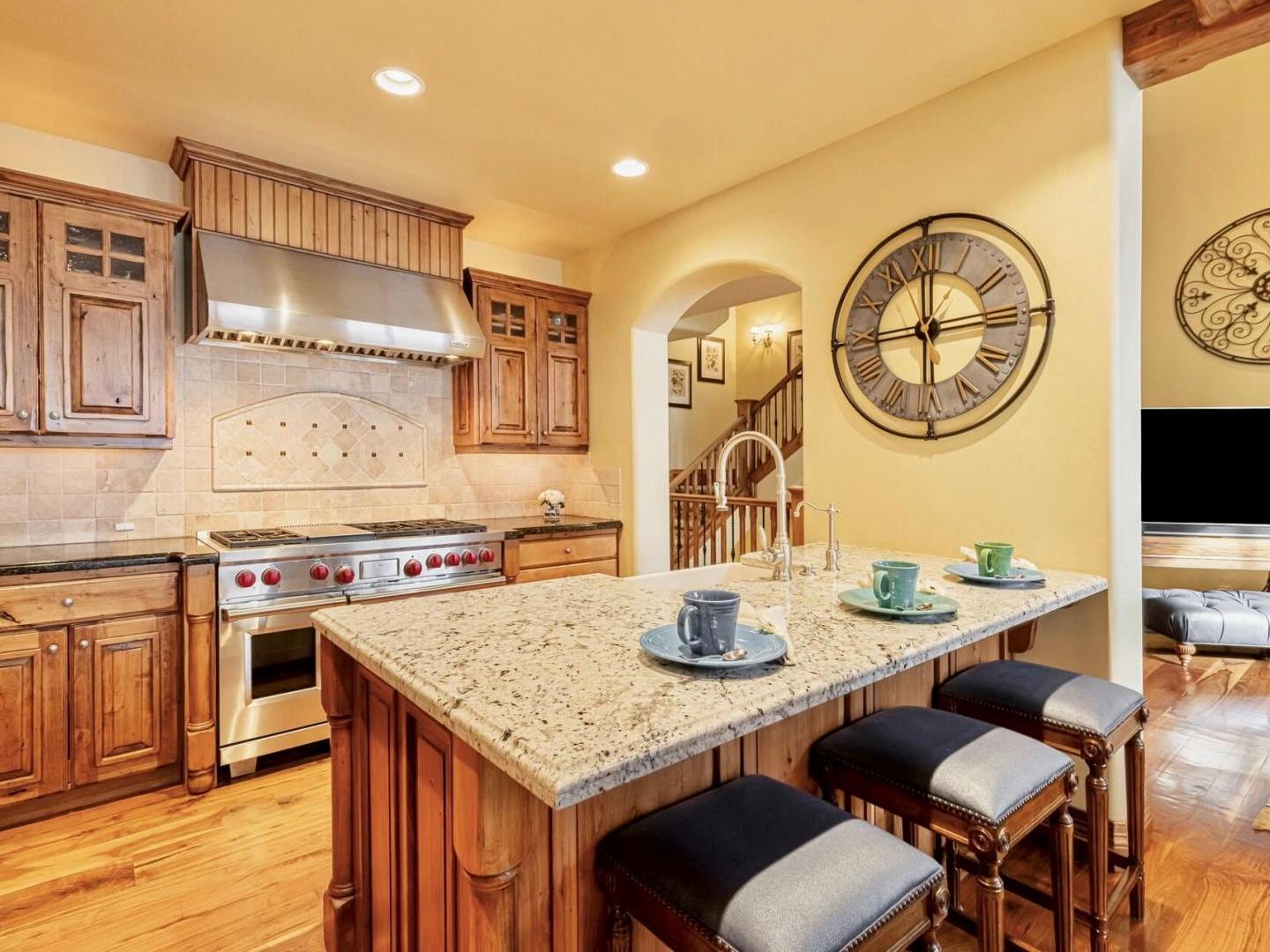 Spacious and open layouts provide an inviting are for multiple families nad large groups of friends to entertain. Designer furnishings surround a magnificent stone fireplace in the main living area which opens to the dining area and kitchen. Featuring upscale appliances, custom cabinetry, and granite countertops, the gourmet kitchen is designed to please the most discerning of chefs. A multi-level floorplan with bedrooms distributed throughout the residence allows for added privacy. Multiple living spaces make it convenient for the group to spread out an relax in the over 2,900 square feet of space that the Ironwood Townhomes encompass. Relaxing in the outdoor private hot tub while enjoying the spectacular sunset is certain to be a popular activity after guests ski back to their luxury vacation home on the slopes of Deer Valley.