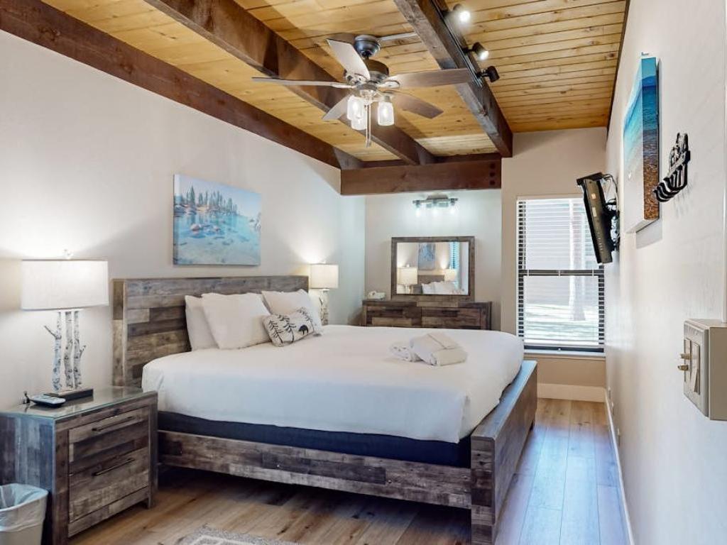 Accommodations at the Lakeland Village consist of fully equipped townhomes ranging in size from one to five bedroom as well as studio, studio plus loft, one bedroom, and one bedroom plus condominiums in the main lodge building. Townhomes are divided into three categories that include Lakefront Townhomes & Lakeview Townhomes nestled along the shores of Lake Tahoe and just off of the coastline, and Pinegrove Townhomes which do not offer a lake view but are a short walk from the beachfront.