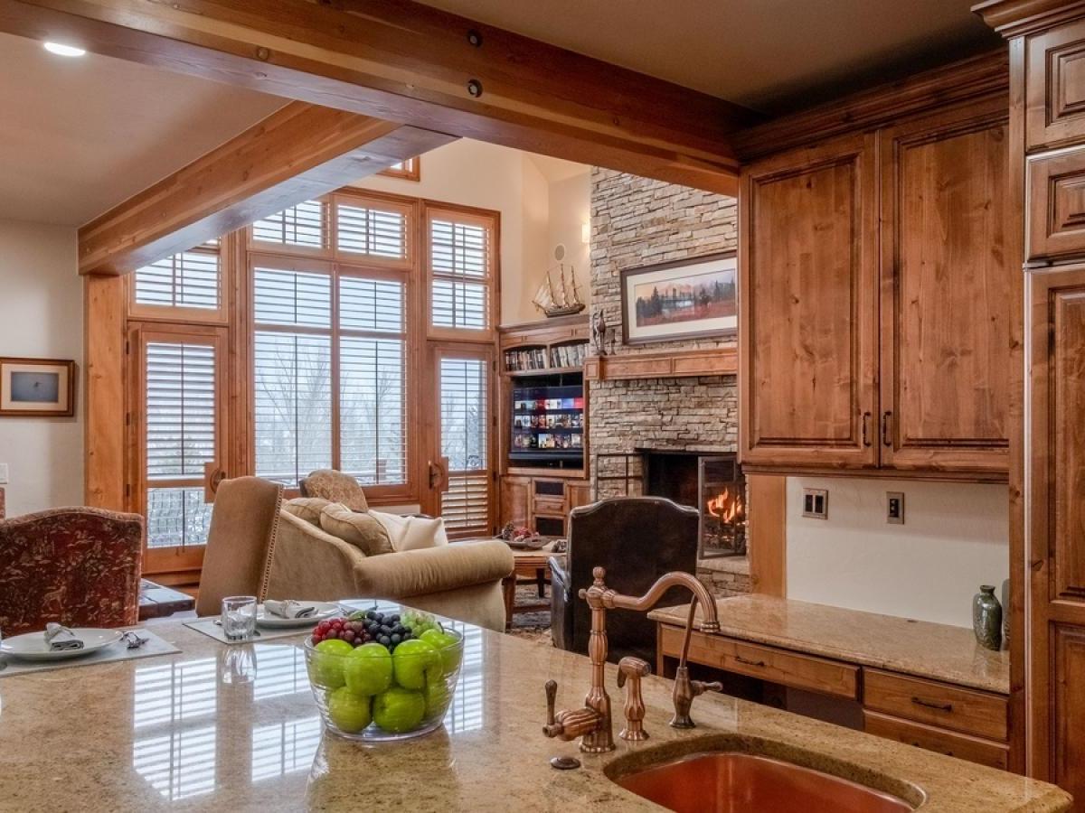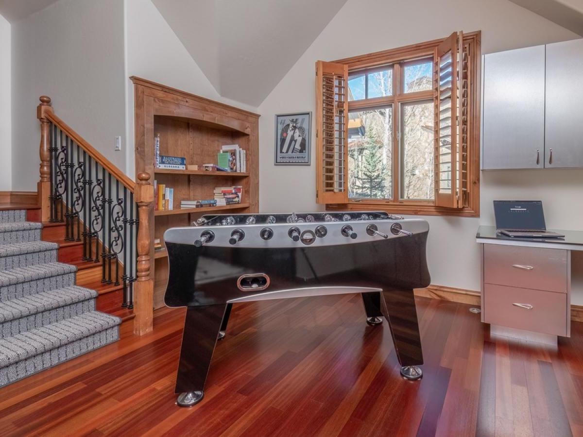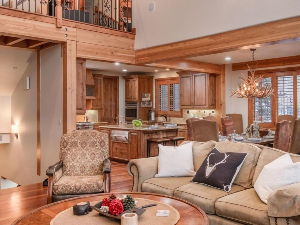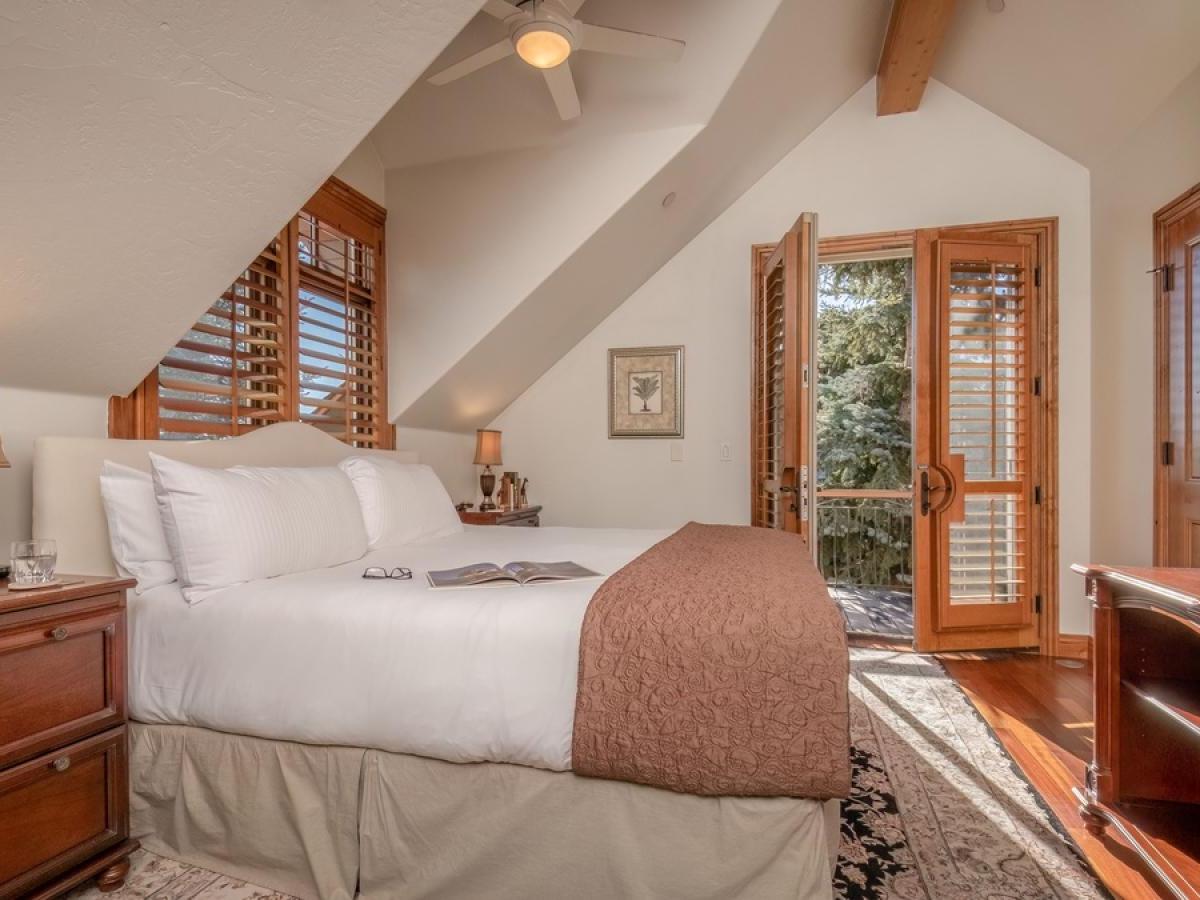 Other highlights you’ll appreciate: elevator access, two garages (parking for up to four vehicles plus driveway space), air-conditioning, a dedicated work nook, and private balconies off the upstairs bedrooms for moments of quiet and alpine views. Complimentary shuttle service is provided on a first-come-first-served basis, mid-November through mid-April, using the convenient shuttle app to schedule pickups.