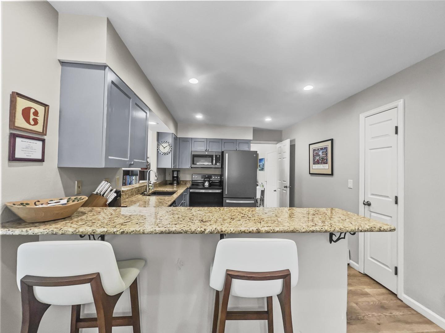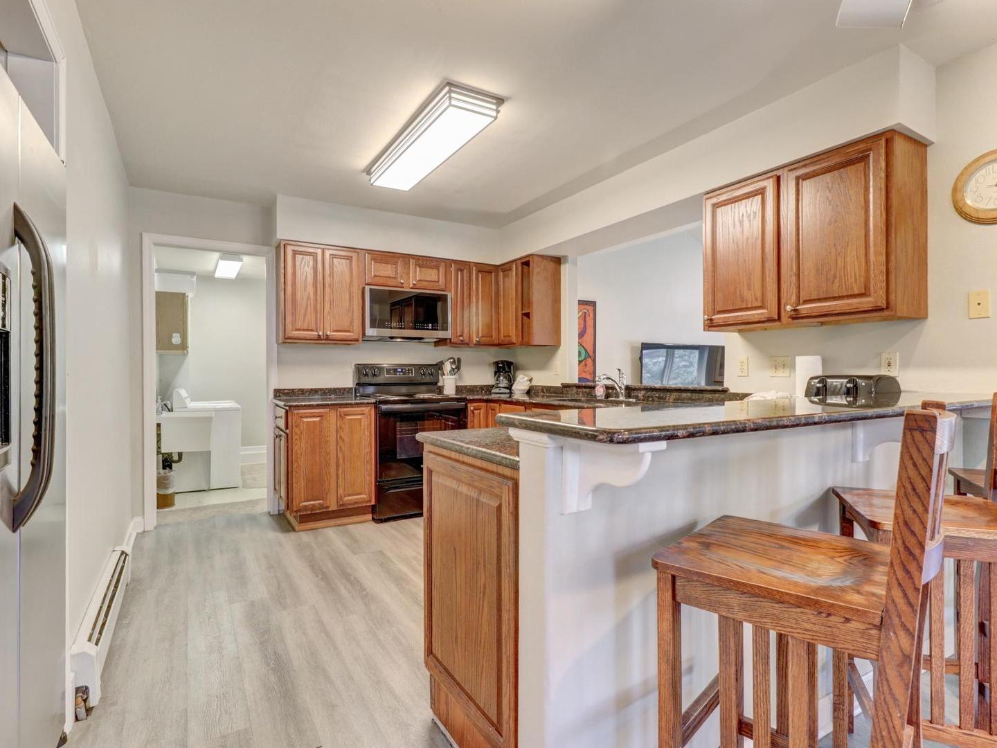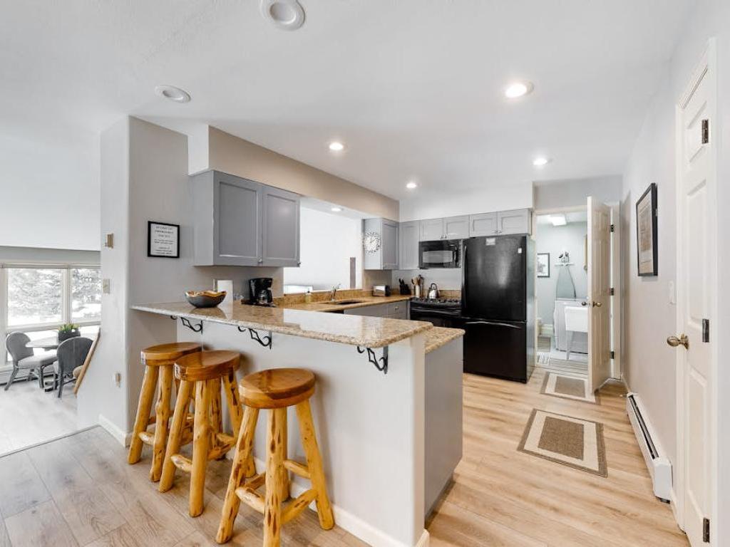 Inside these spacious townhome rentals guests are greeted by inviting living spaces centered around a cozy gas fireplace—perfect for unwinding after a day outdoors or gathering together in the evenings. The fully equipped kitchens, paired with open dining areas and breakfast bars, make it easy to prepare meals, share stories, and enjoy time together. Functional layouts often include convenient features such as mudrooms for storing seasonal gear, private laundry areas, and attached garages with additional driveway parking, helping keep your stay organized and stress-free.