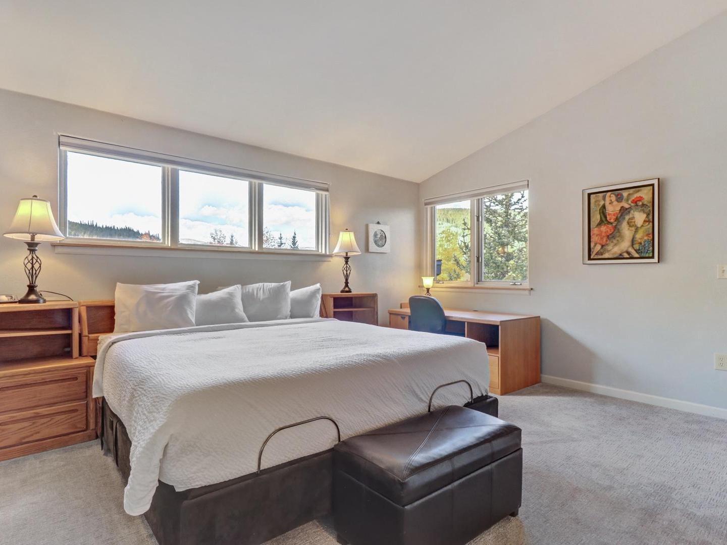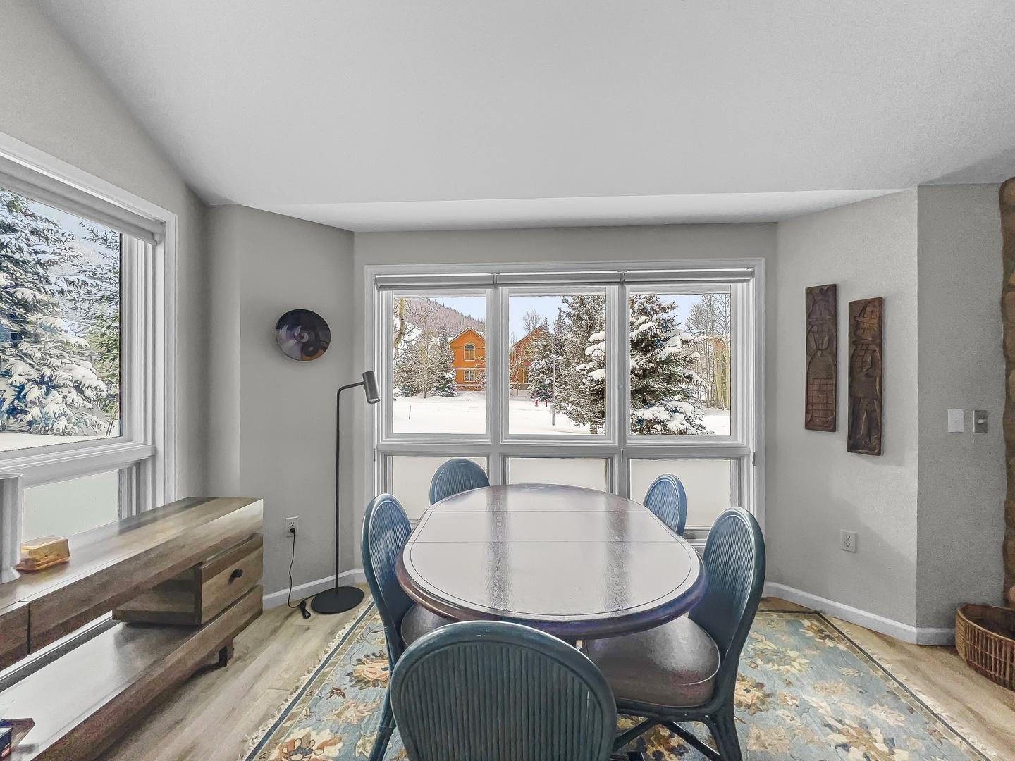 With a location that allows for easy walking access to ski lifts in winter and close proximity to the golf course and outdoor activities in summer, these Copper Mountain townhomes offer the flexibility and setting needed for a well-rounded mountain vacation. Guests have access to all of the resort's amenities including the Olympic Pool, hot tubs, fitness facilities, ball courts, and other service available at the Athletic Center. The Fast Pass express lane lift tickets are also available to guests that purchase their tickets in advance.